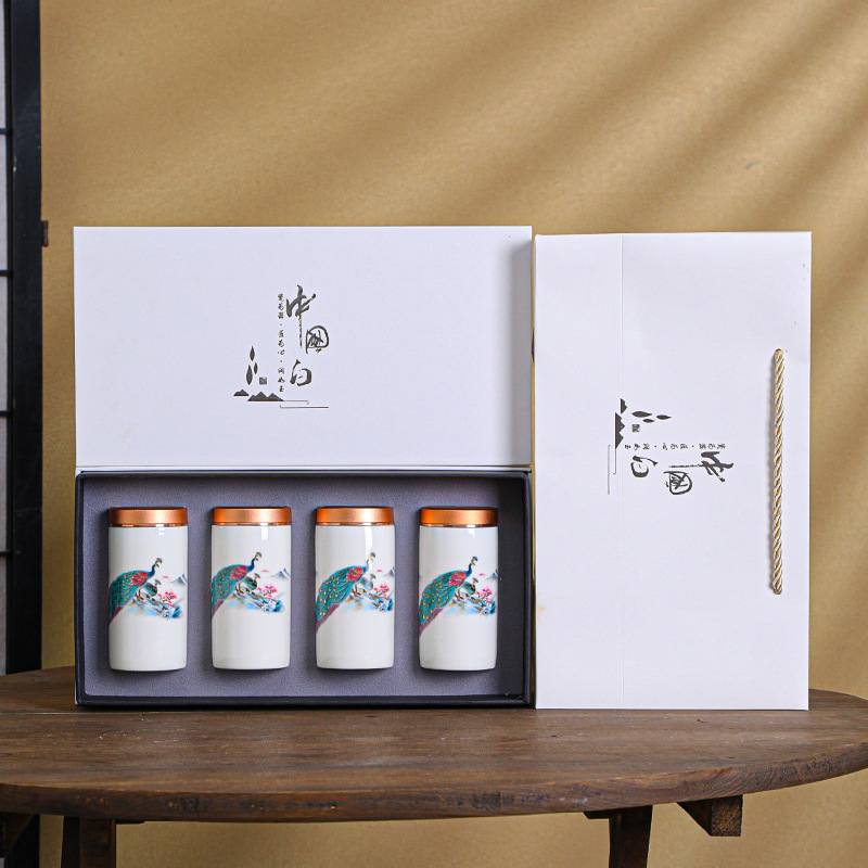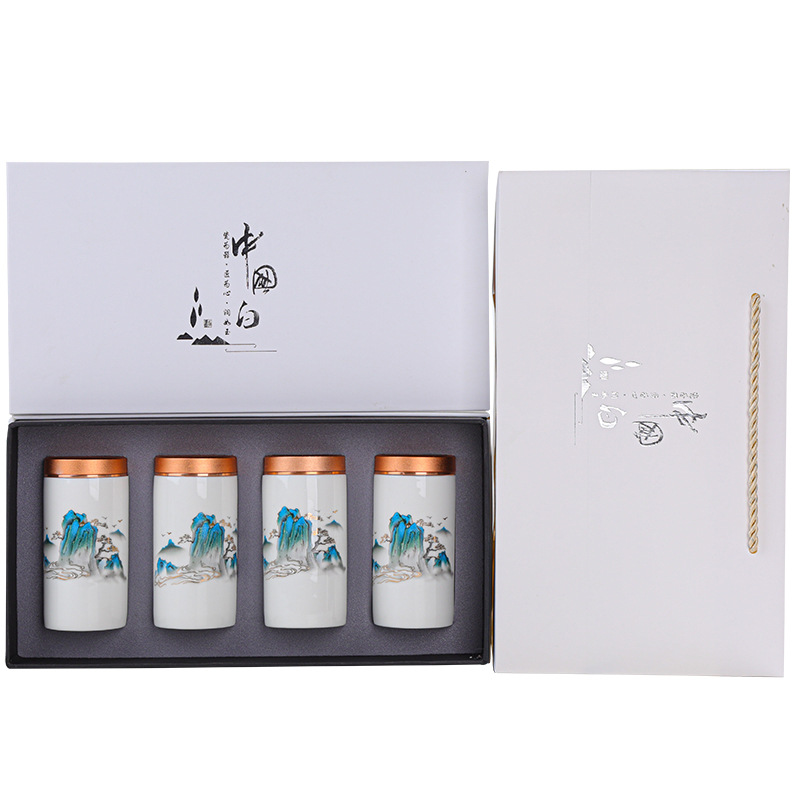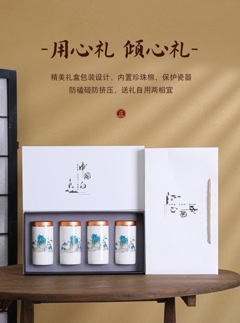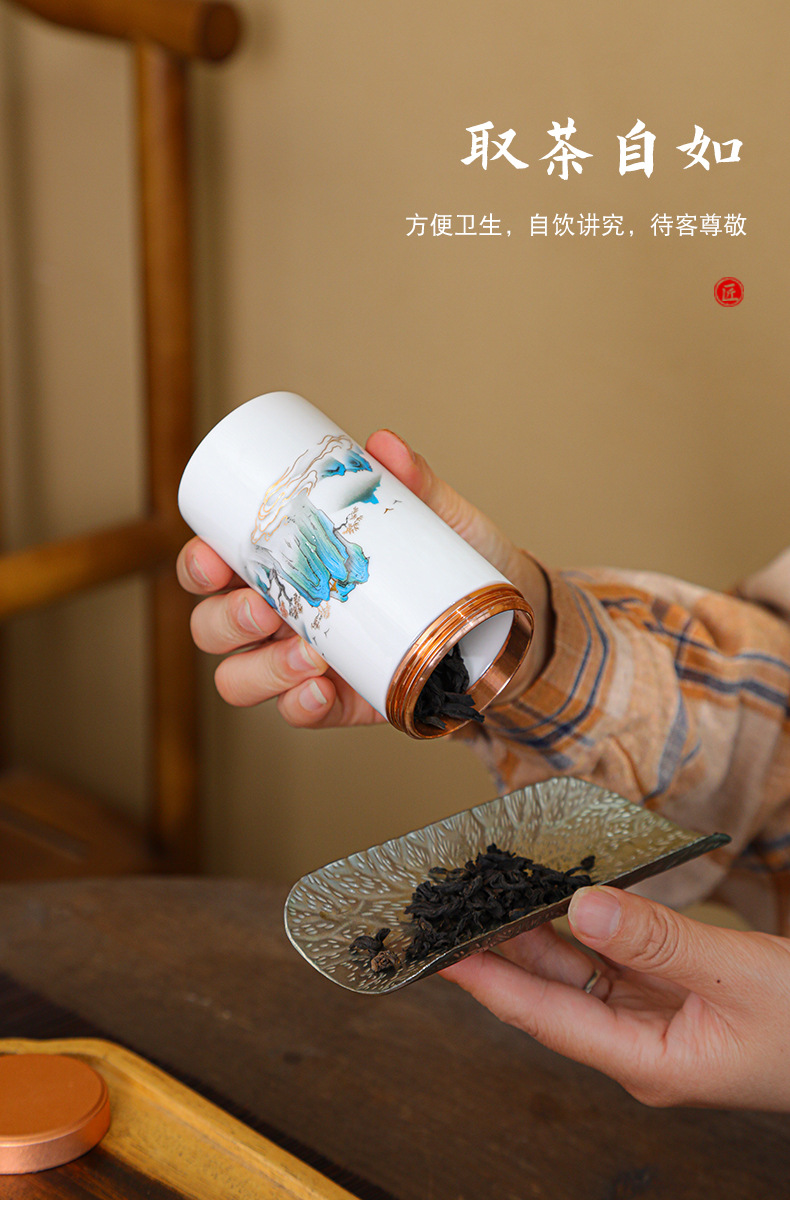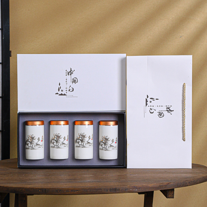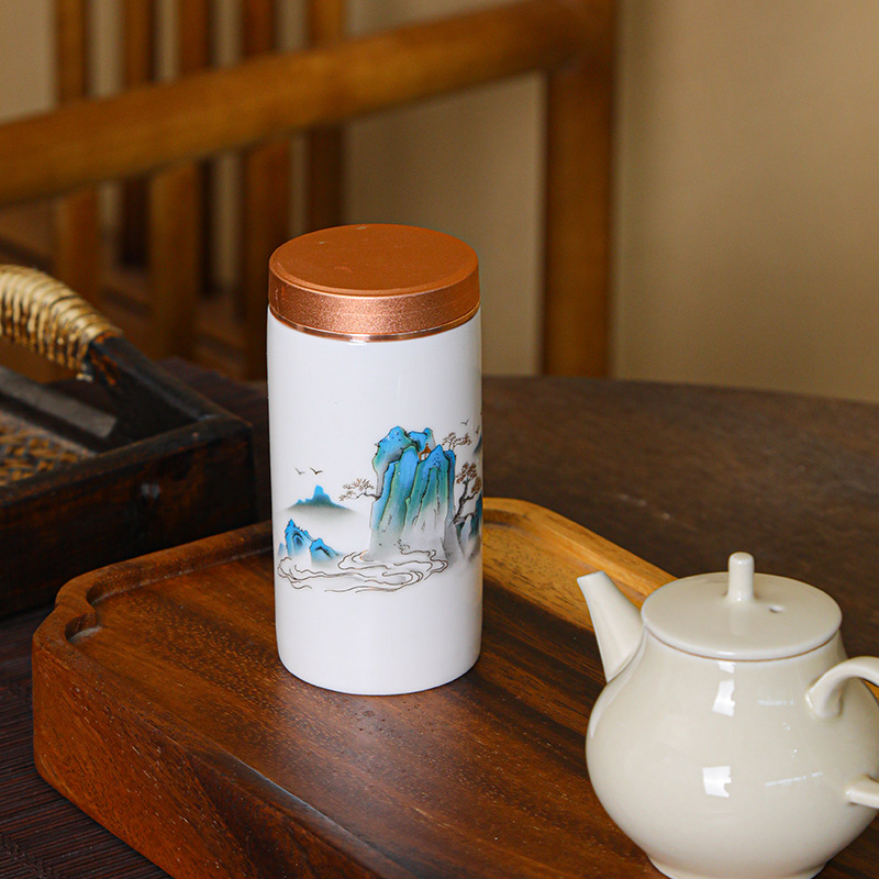 批发陶瓷茶叶罐金属盖羊脂玉密封罐茶叶礼盒包装小号旅行便携茶罐