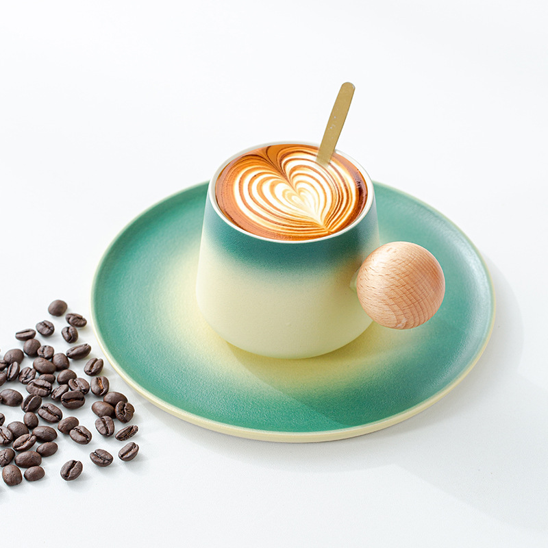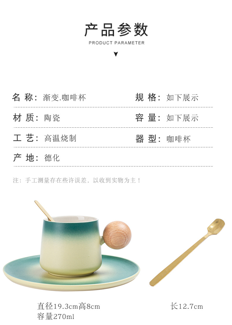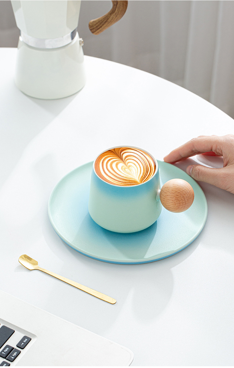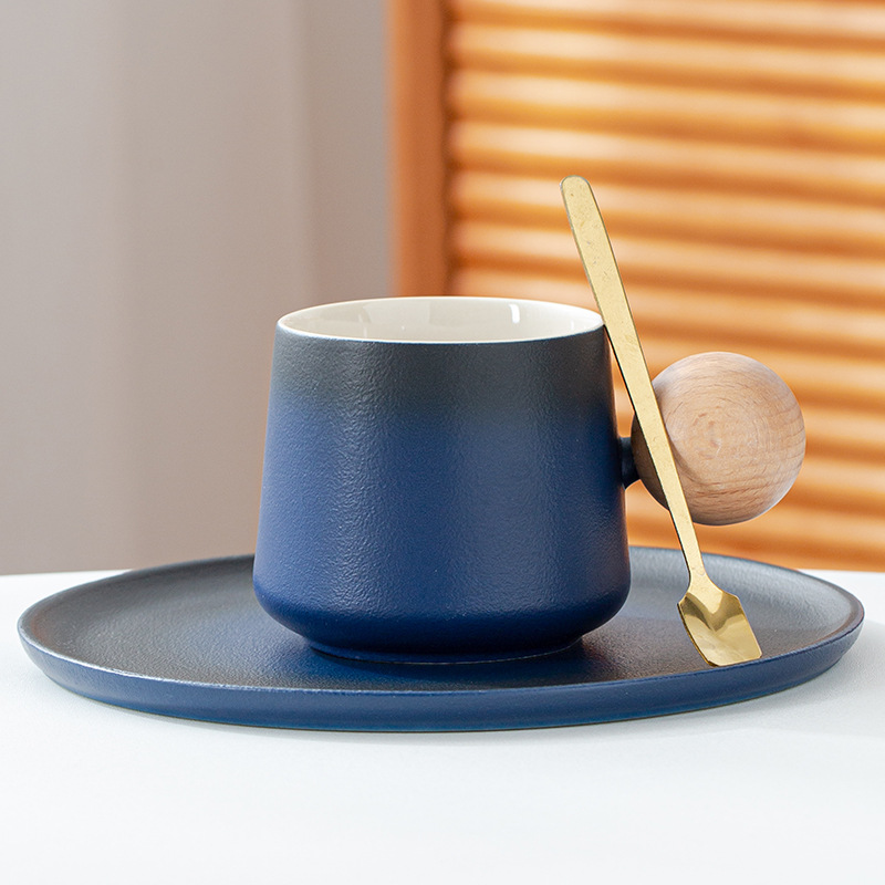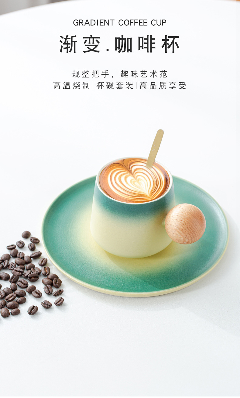 简约咖啡杯碟套装高颜值办公室杯子个性球柄下午茶陶瓷杯带勺子