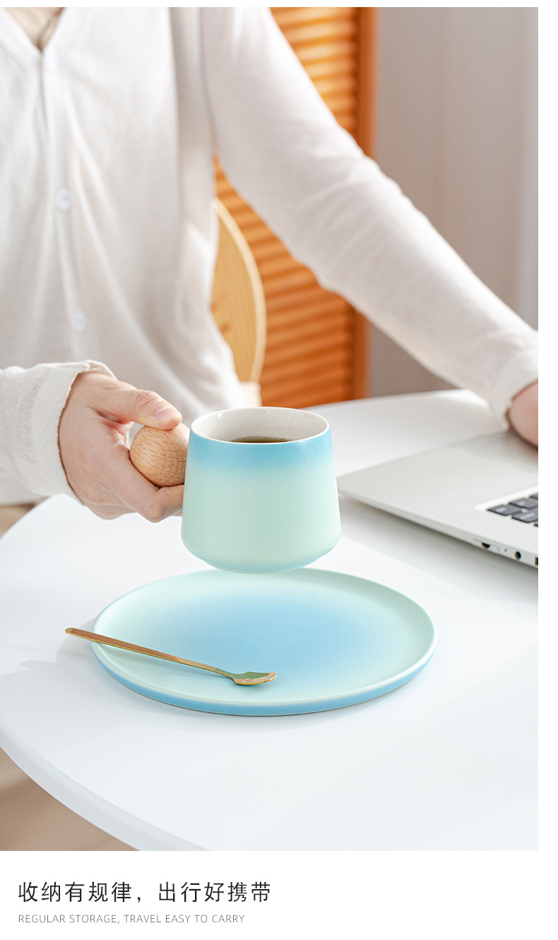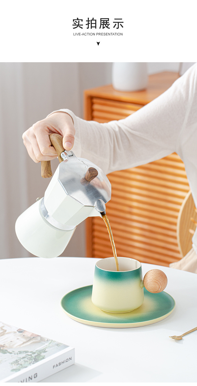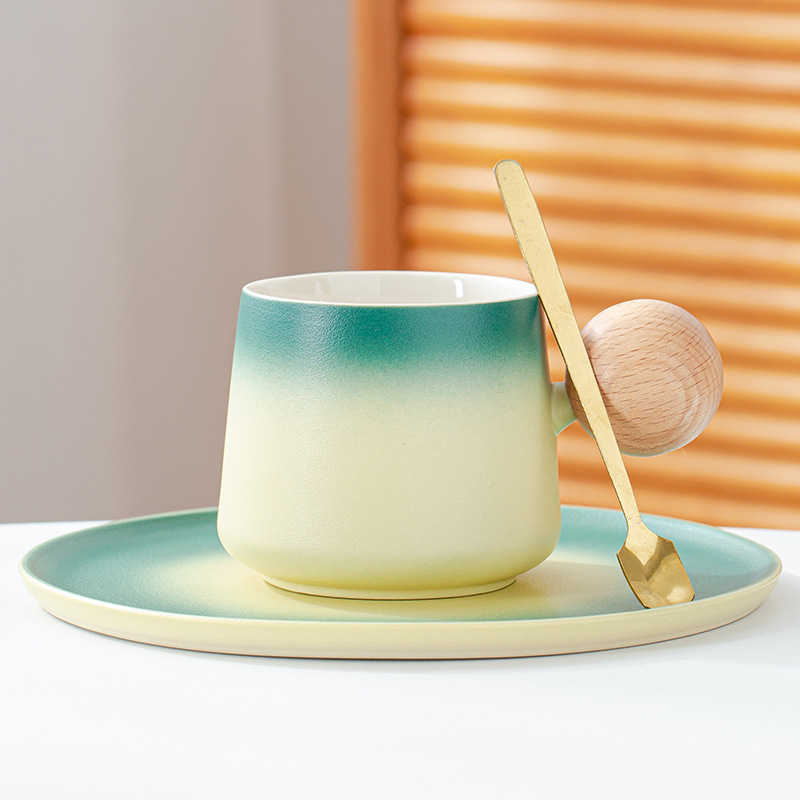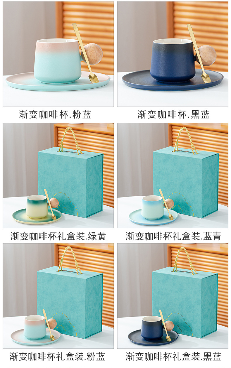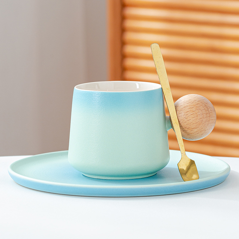 简约咖啡杯碟套装高颜值办公室杯子个性球柄下午茶陶瓷杯带勺子