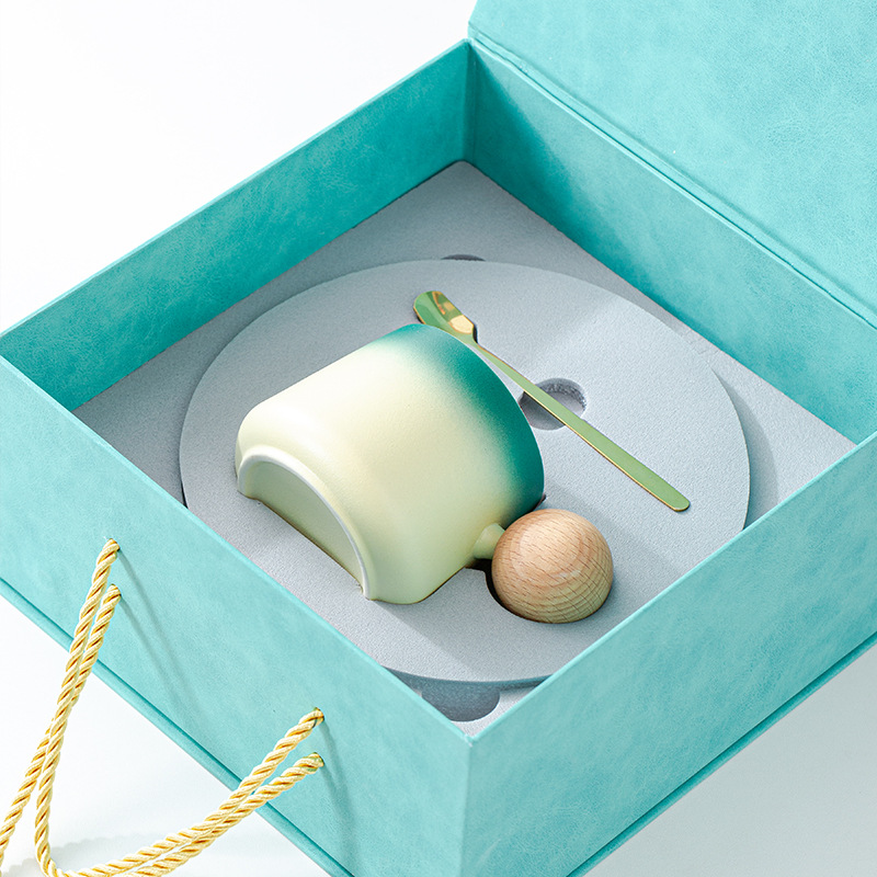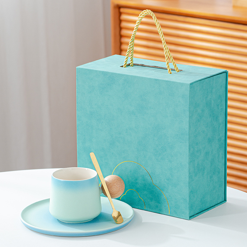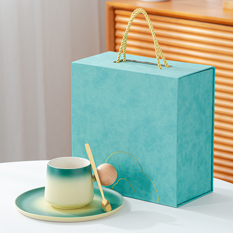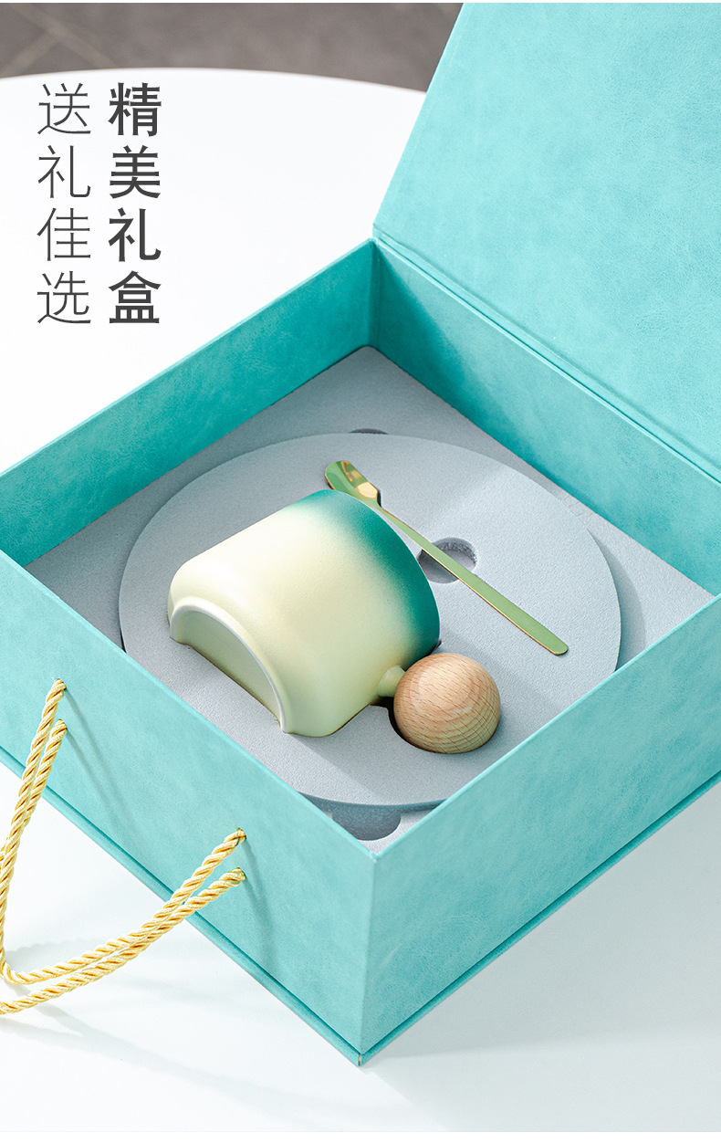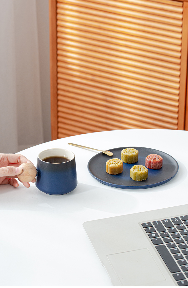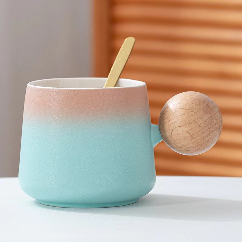 简约咖啡杯碟套装高颜值办公室杯子个性球柄下午茶陶瓷杯带勺子