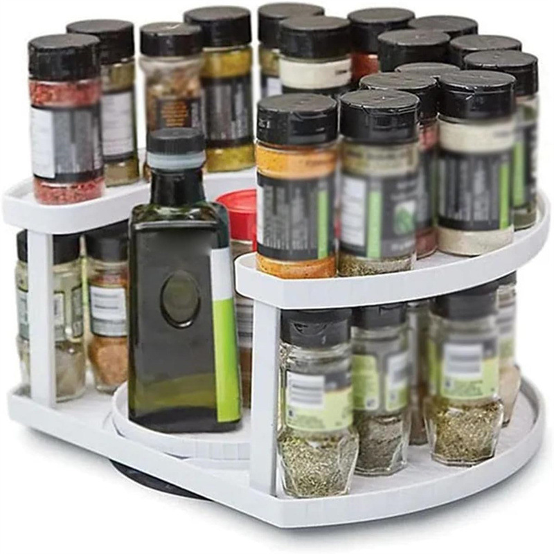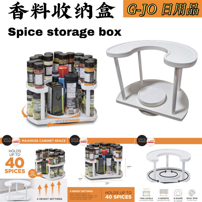 跨境现货家用SPICE SPINNER 厨房置地可旋转双层调料调味瓶收纳架