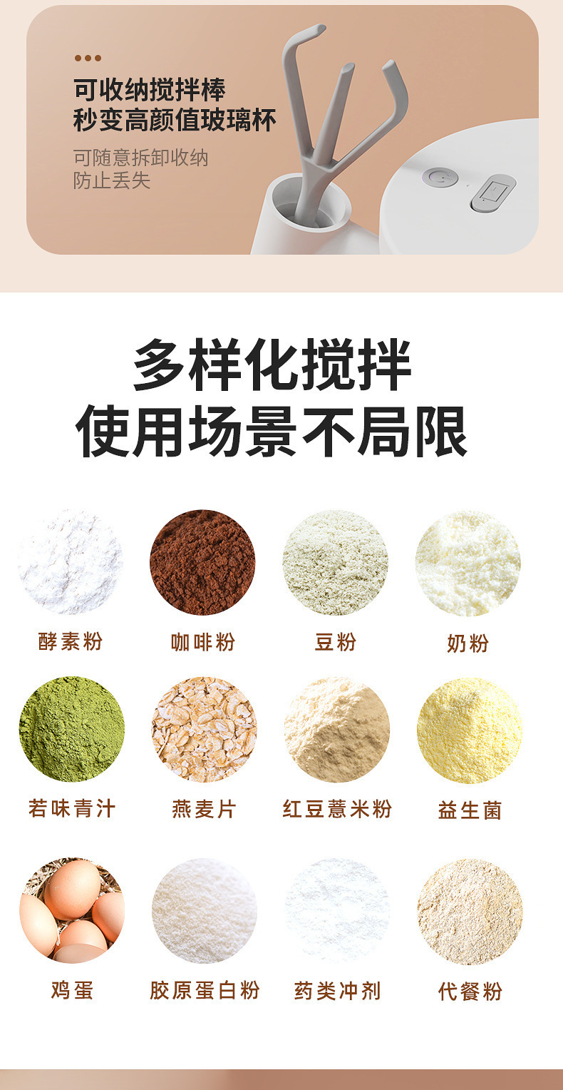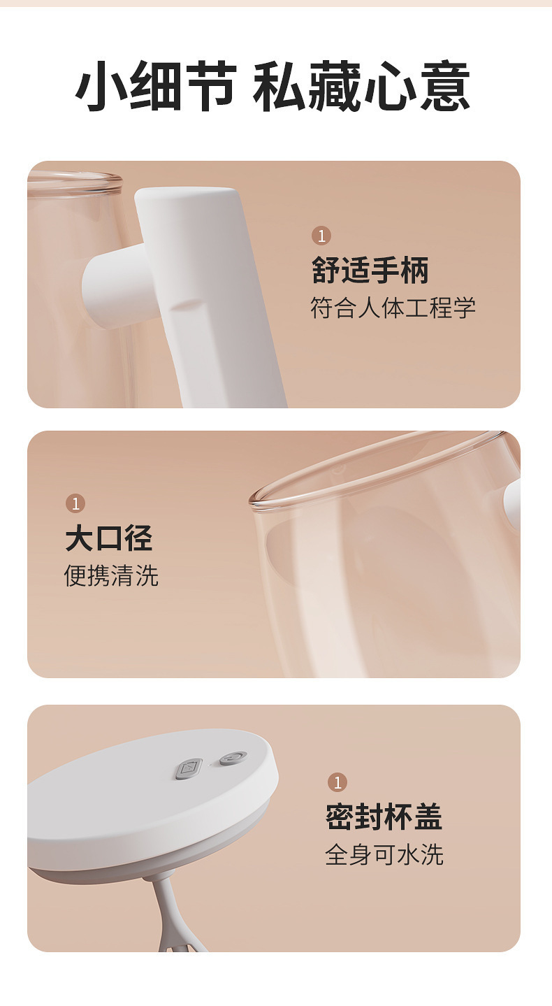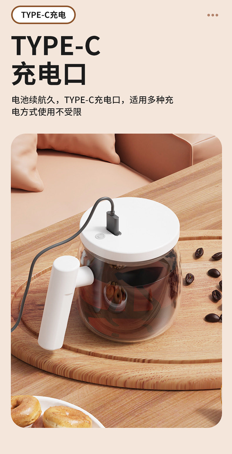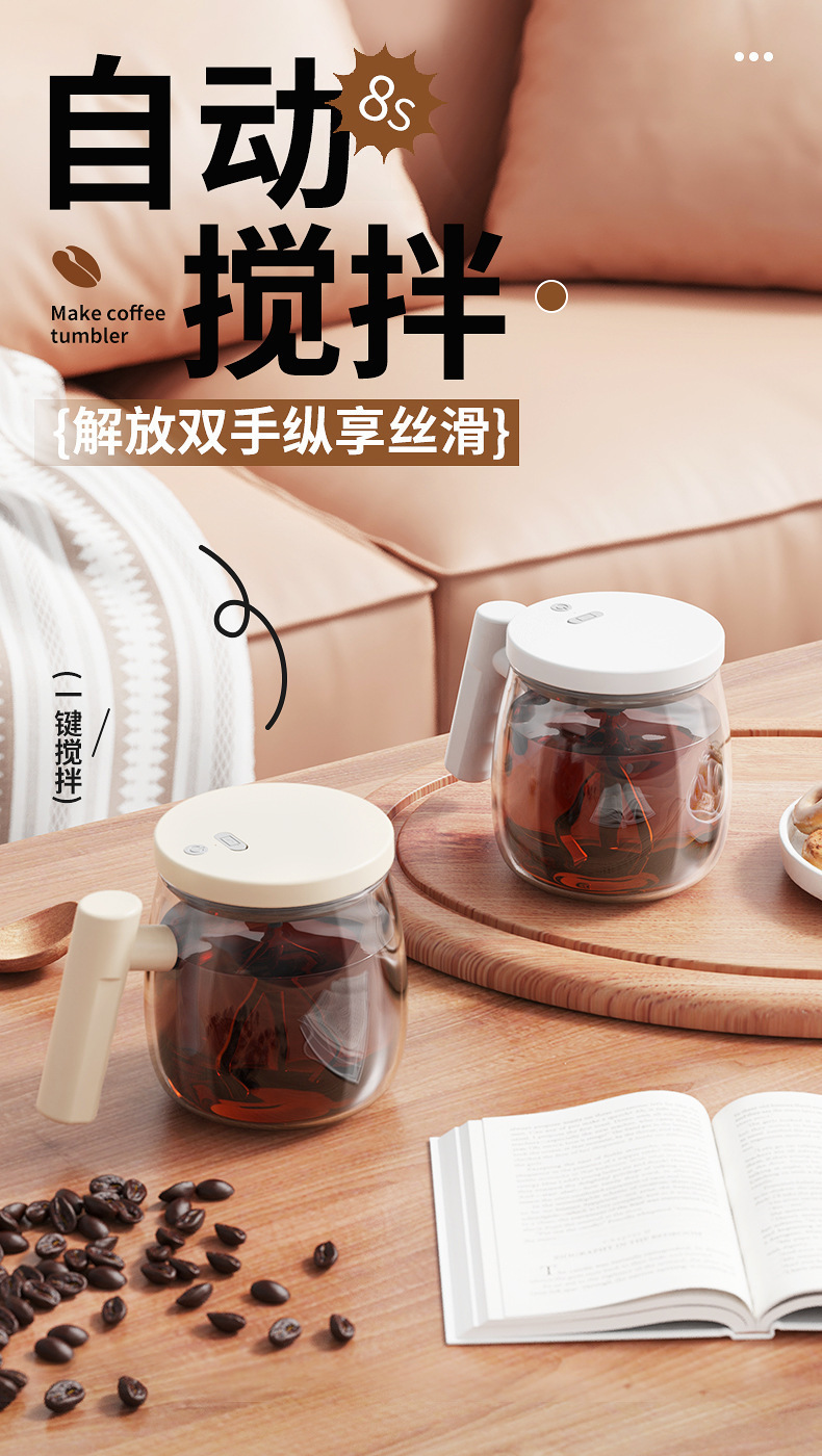 跨境新款电动玻璃自动搅拌杯便携式咖啡杯办公室玻璃内胆马克杯