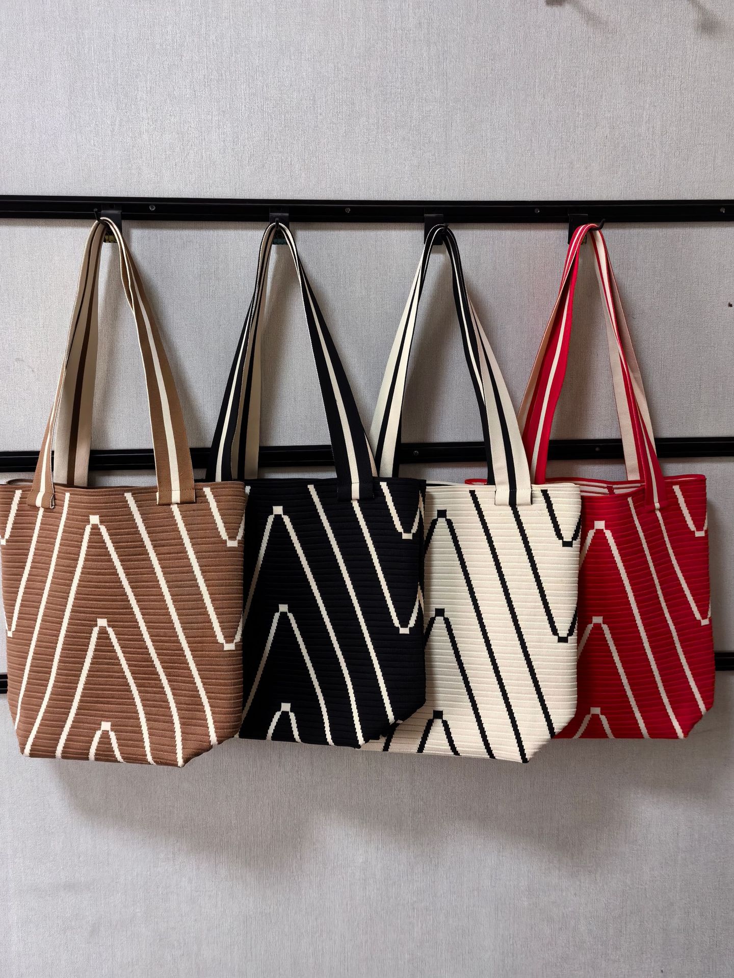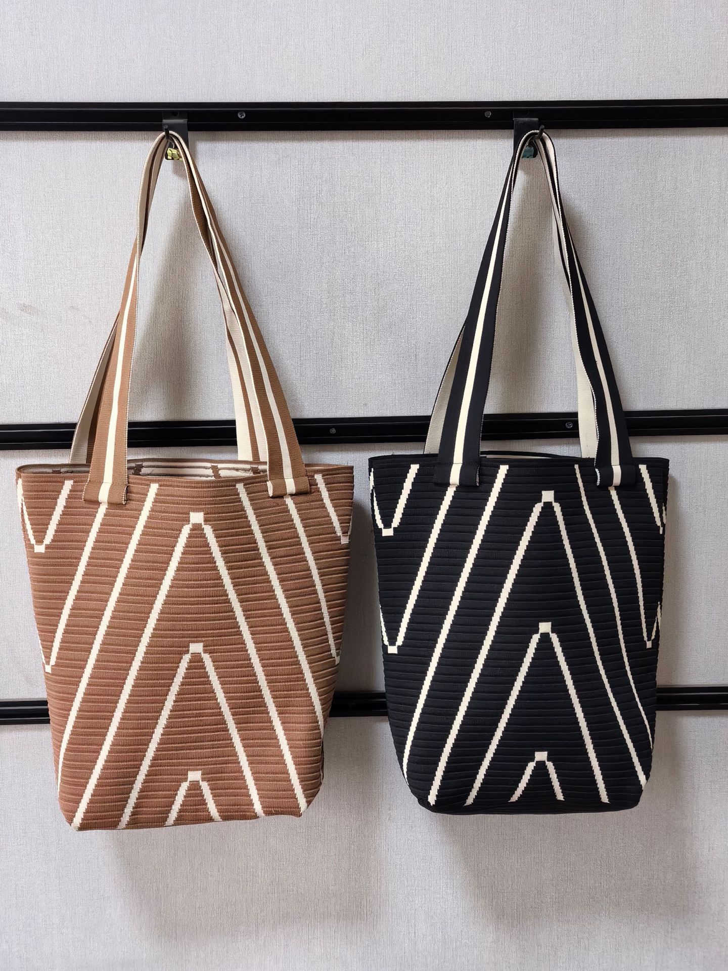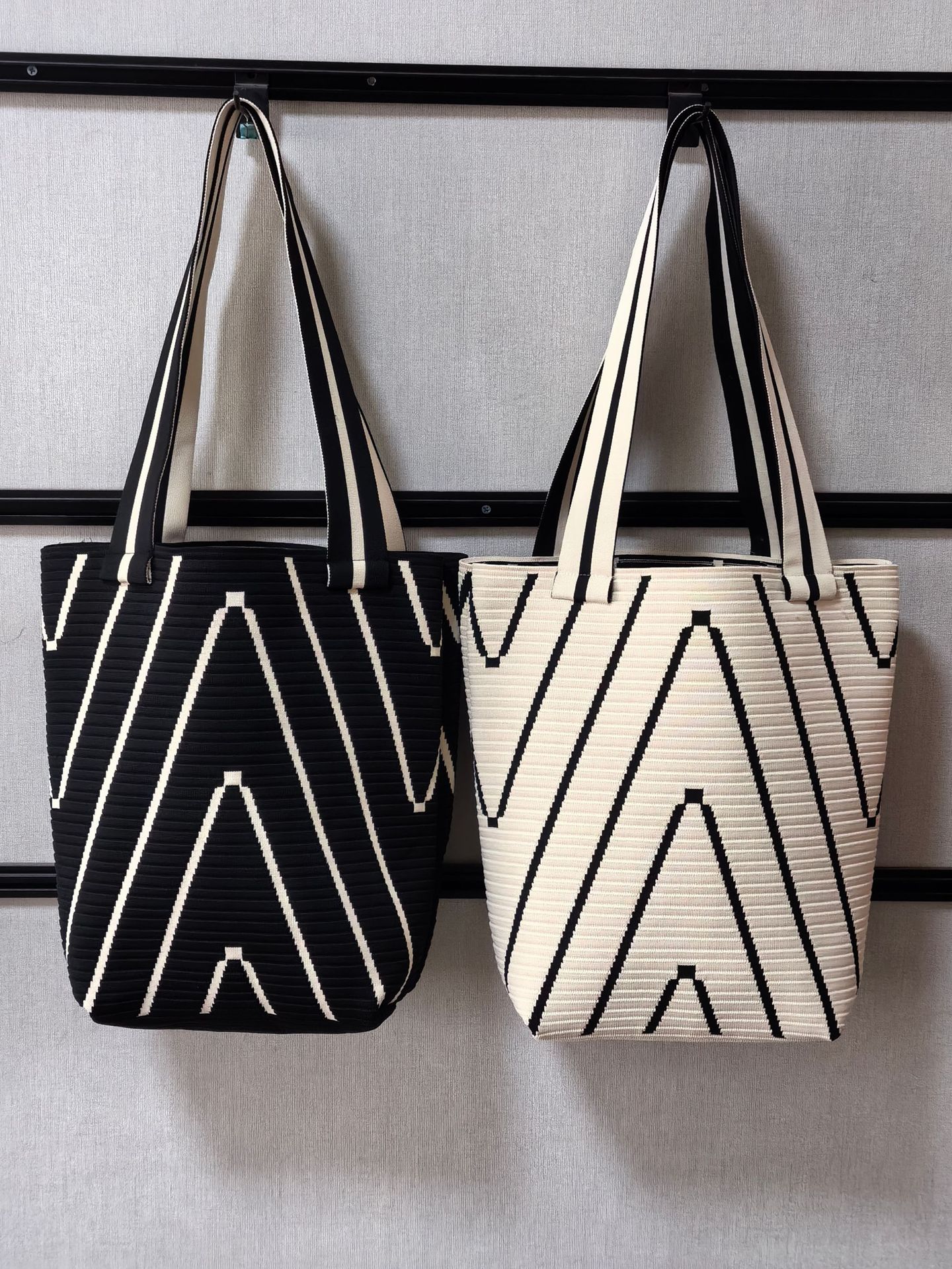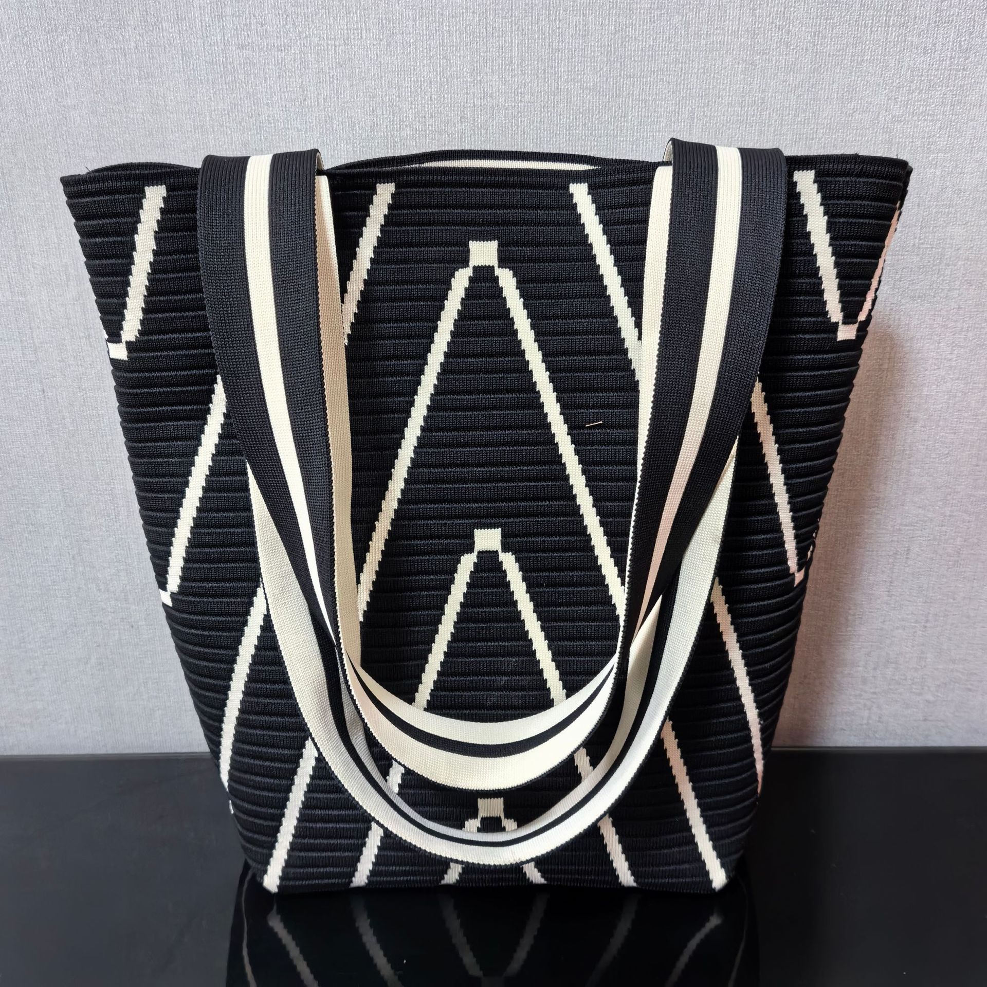 北欧小众波浪纹单肩包大容量托特包细密编织敞口挎包通勤水桶包女