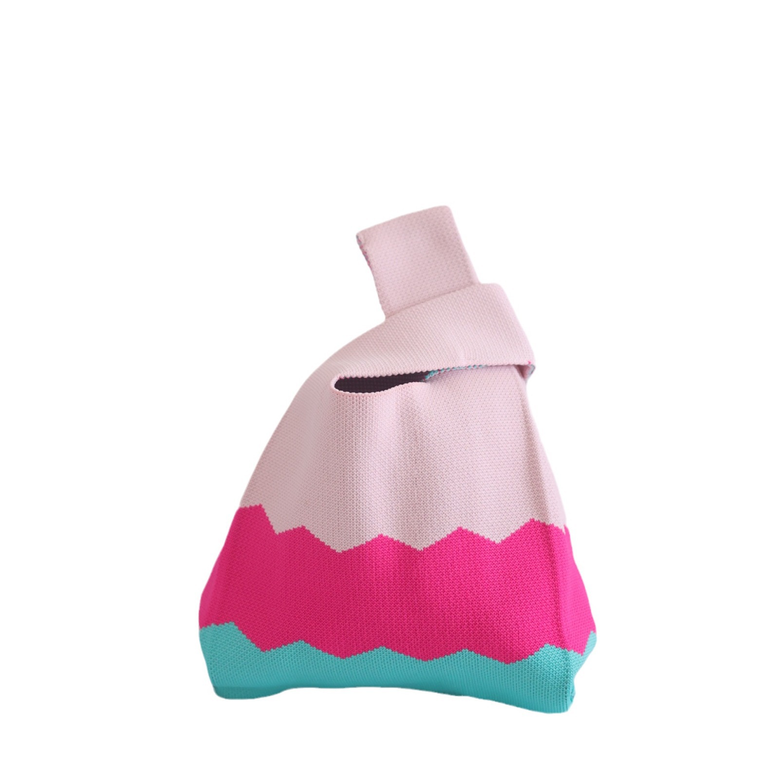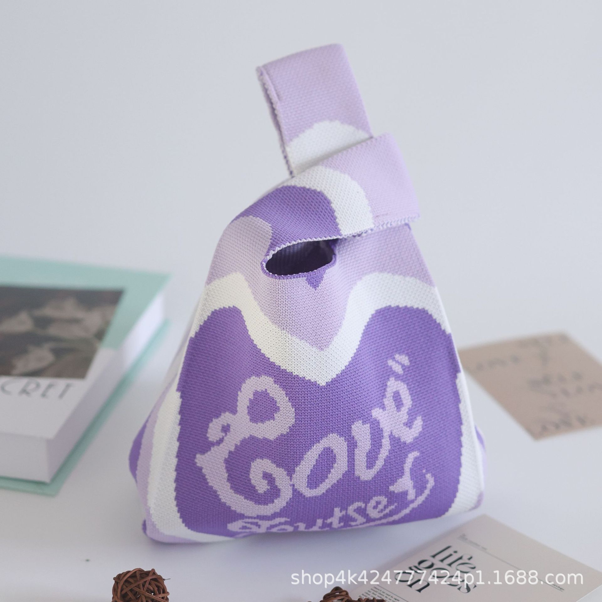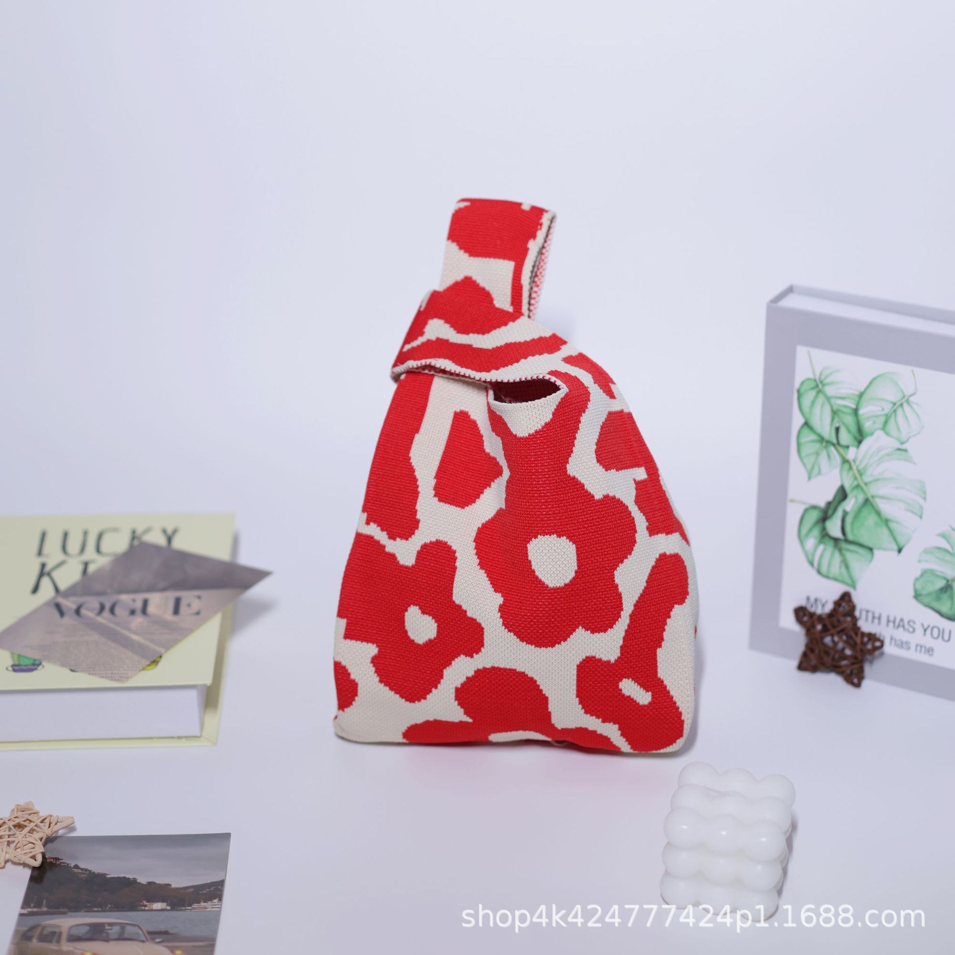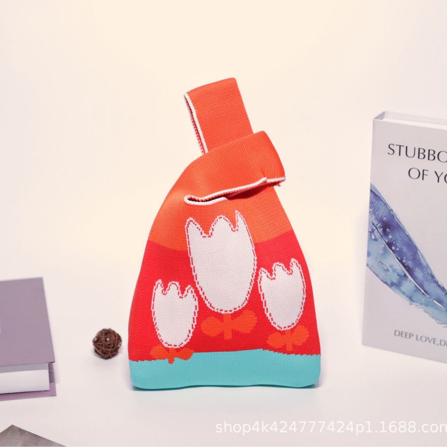 可爱熊猫手提包女针织毛线水桶包日韩版百搭手拎休闲托特包盒饭袋