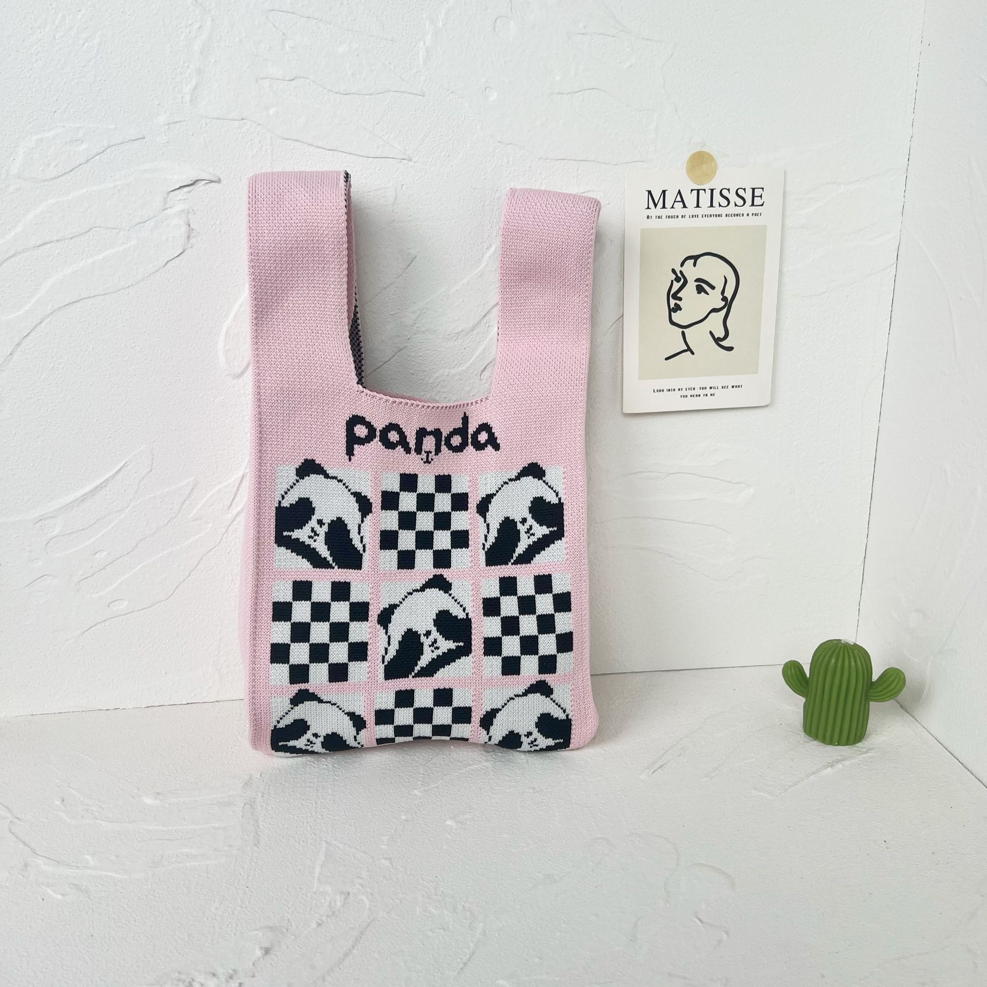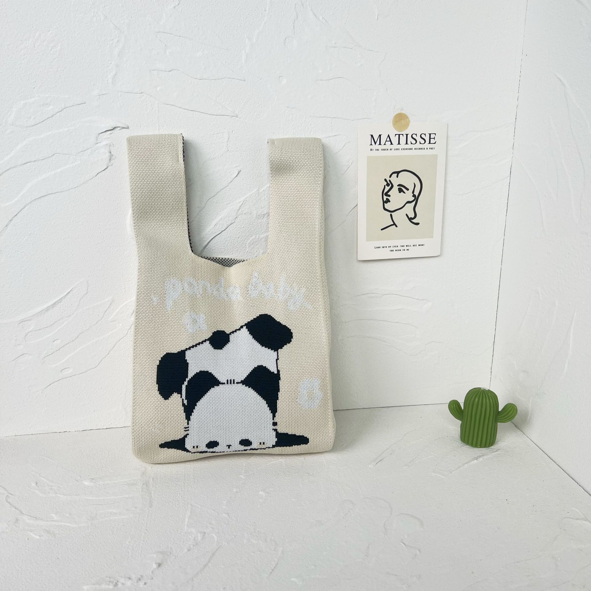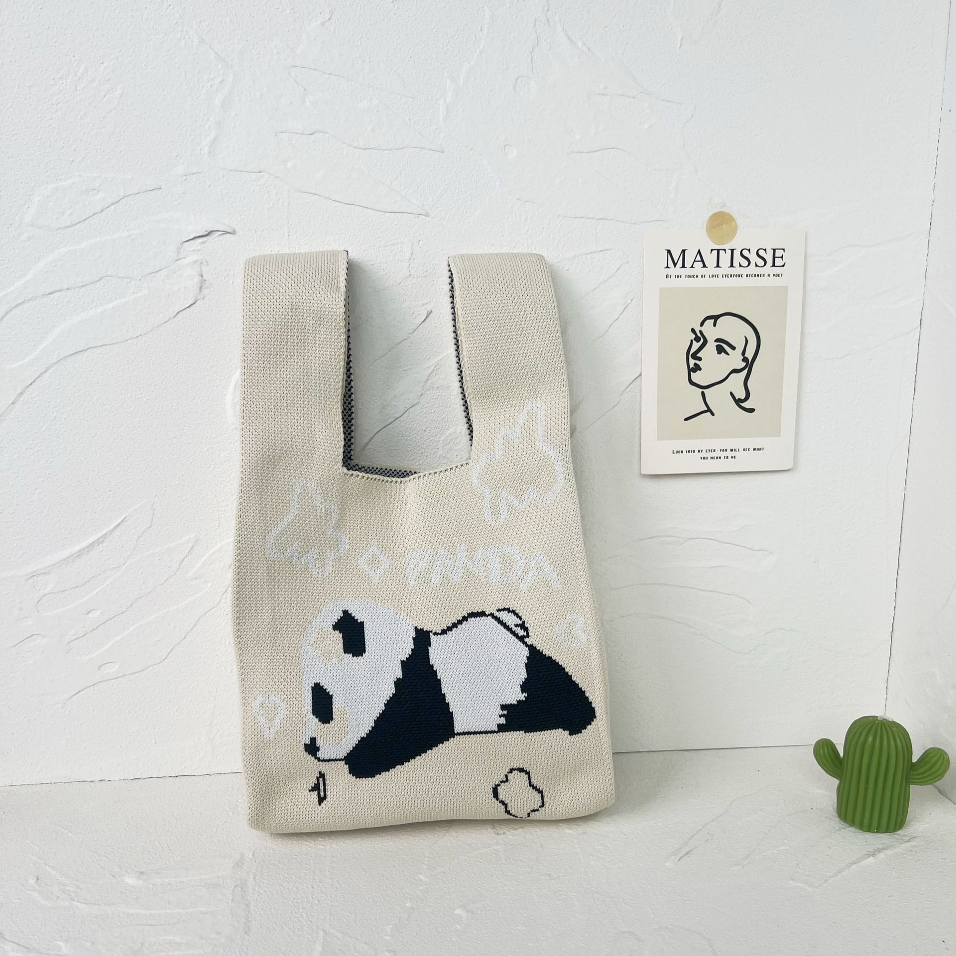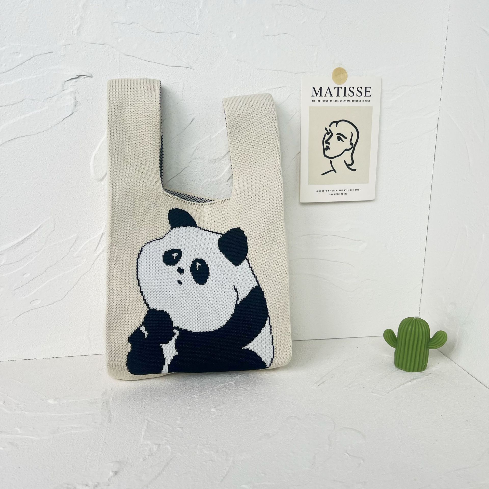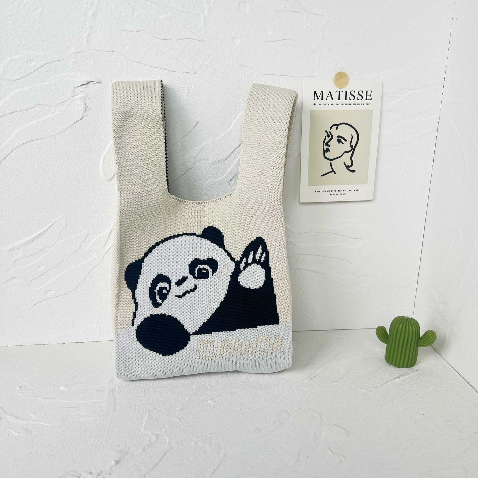 高级感ins熊猫针织包女士手提包小方包外出百搭涤纶针织手拎包包