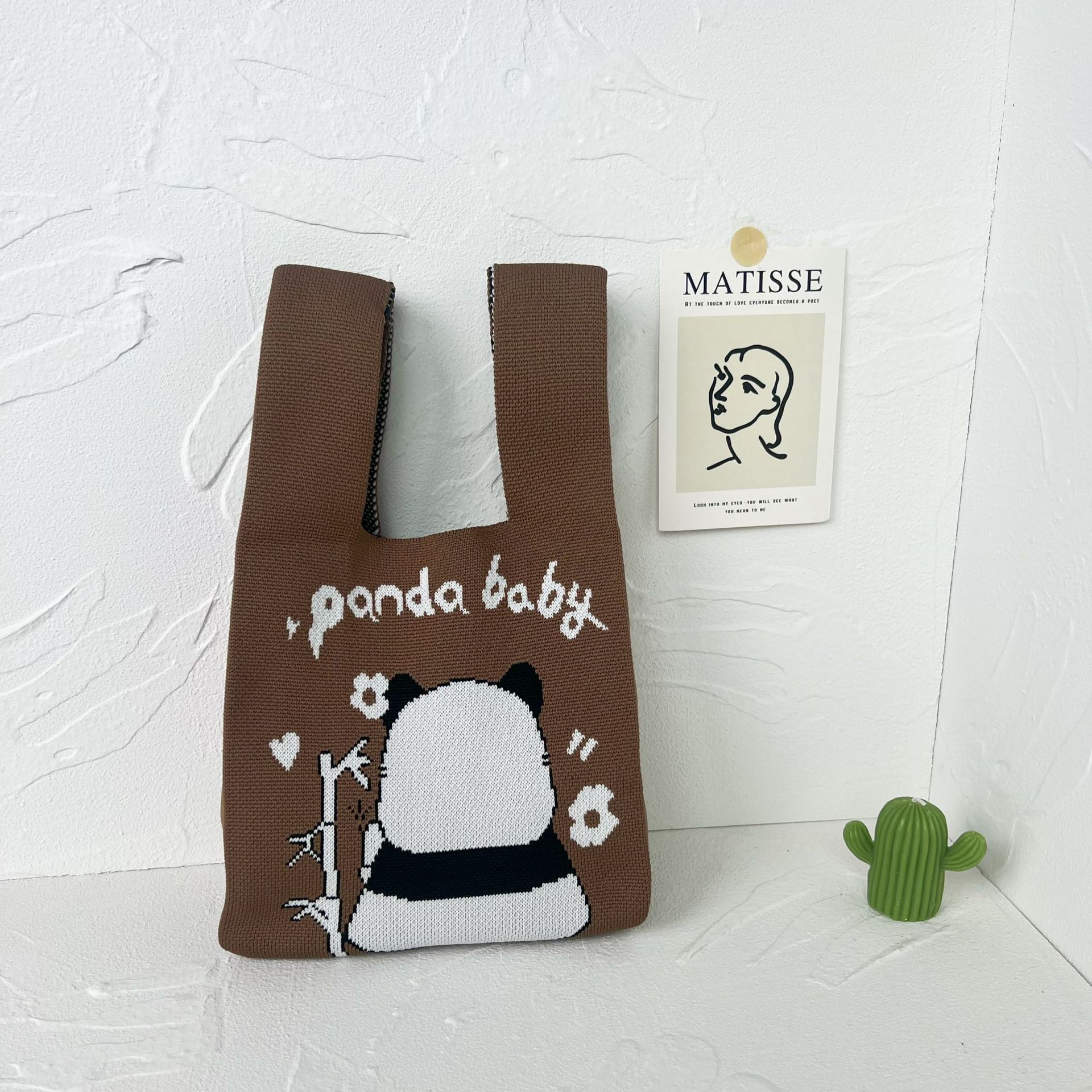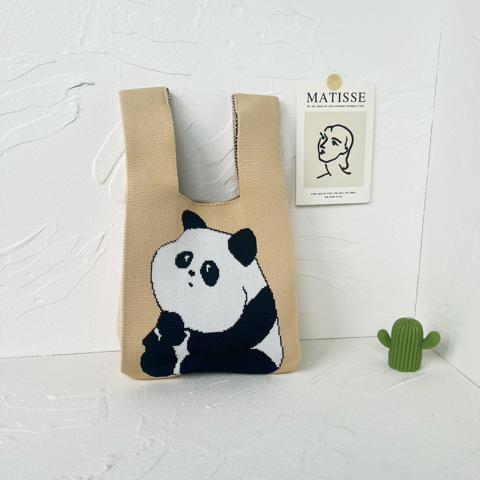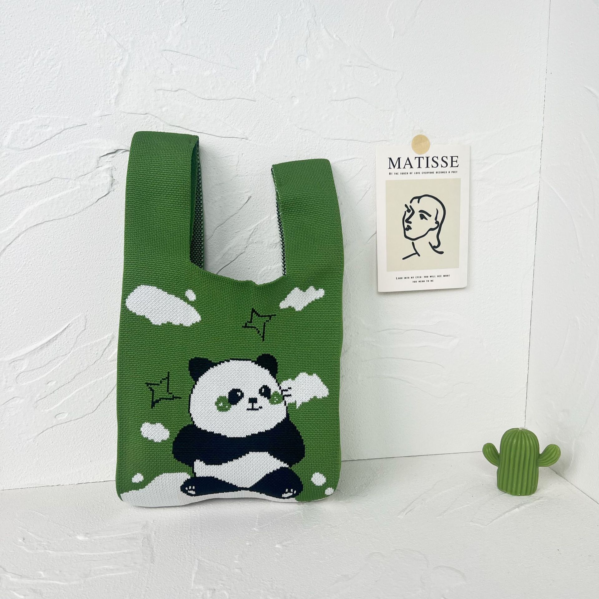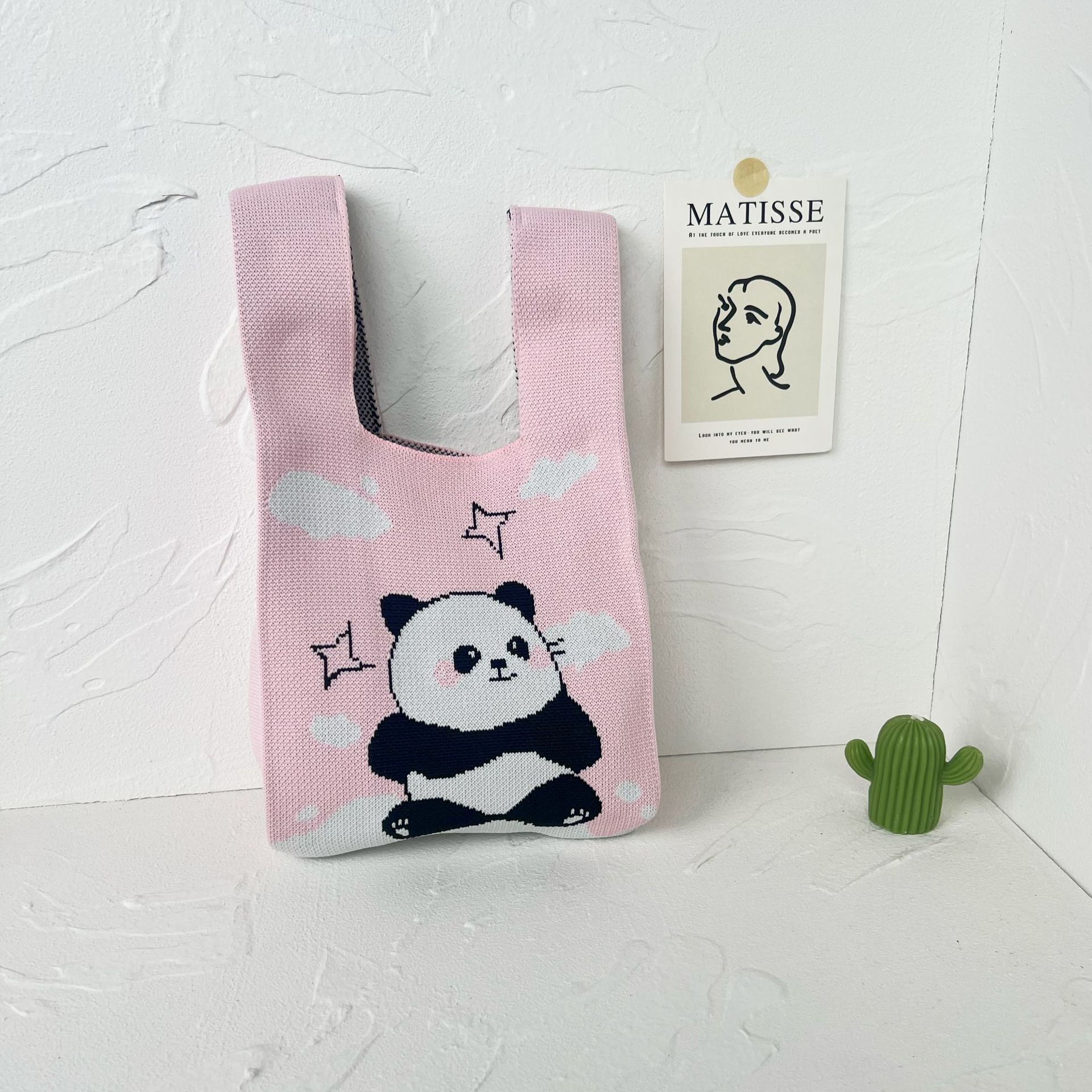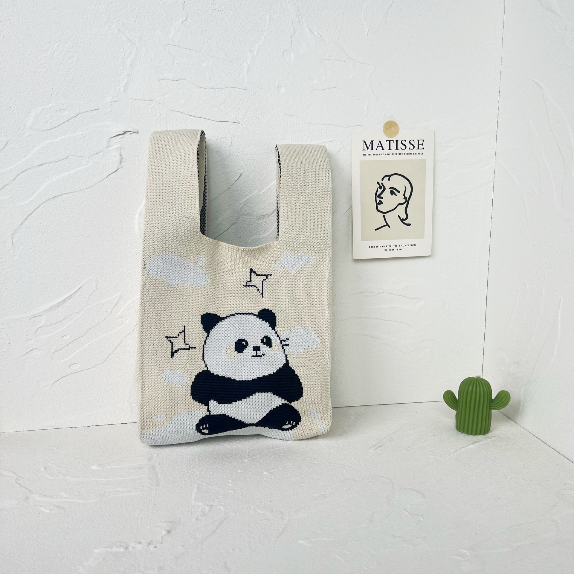 高级感ins熊猫针织包女士手提包小方包外出百搭涤纶针织手拎包包