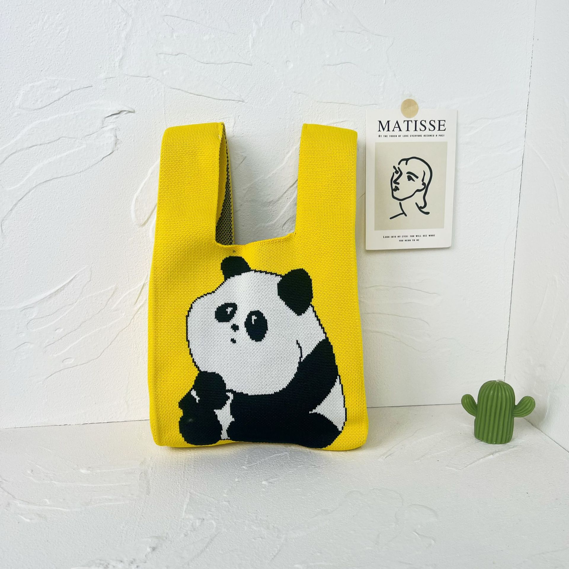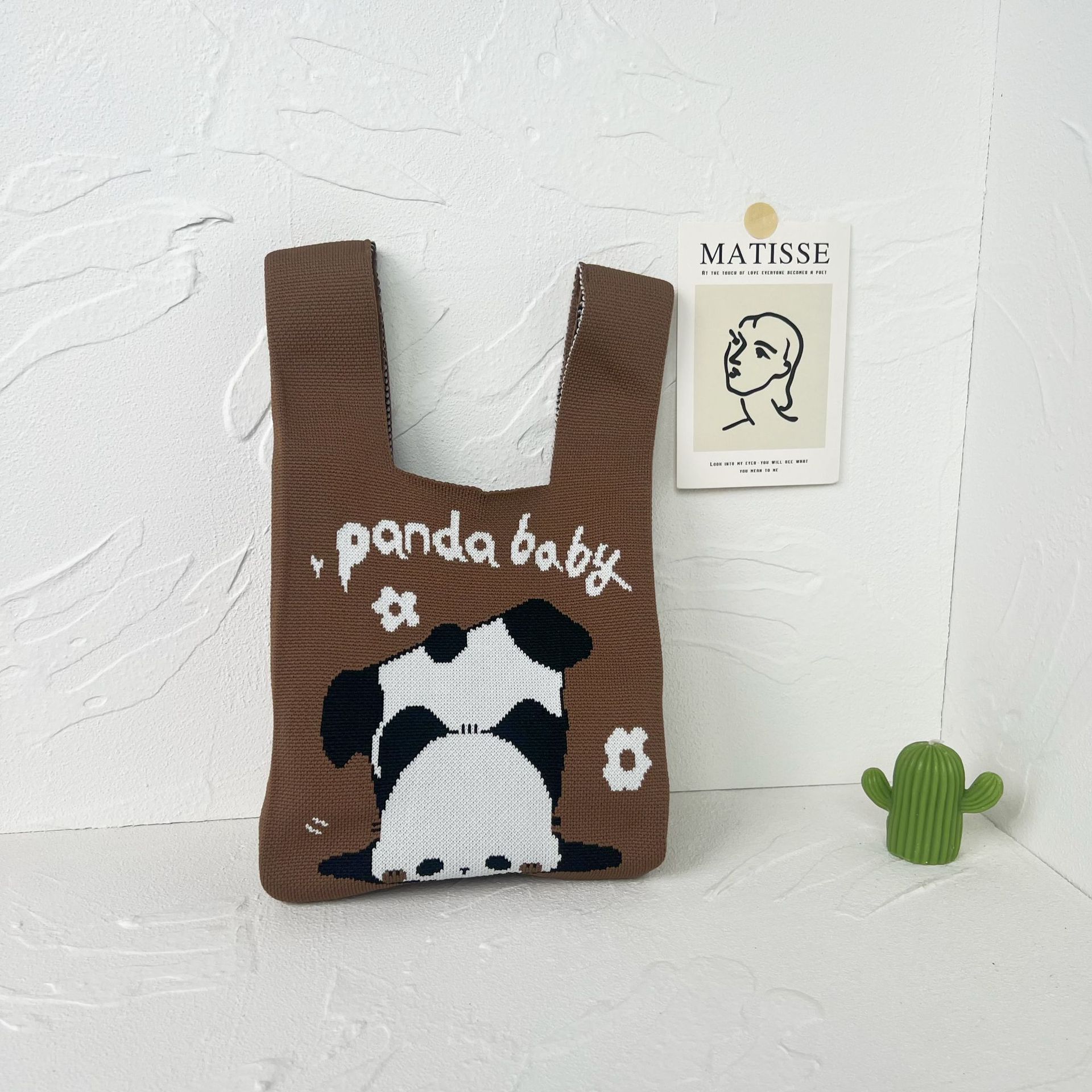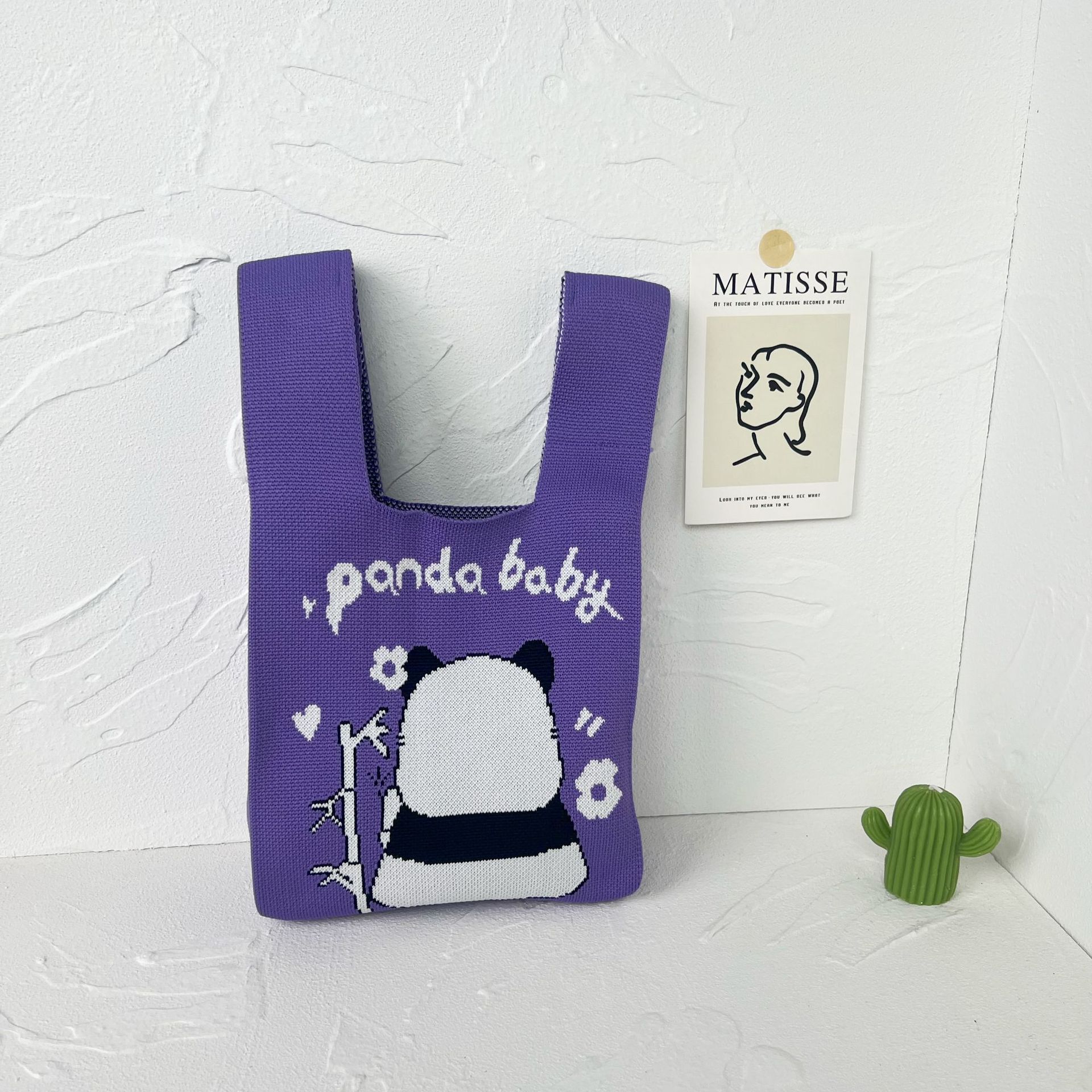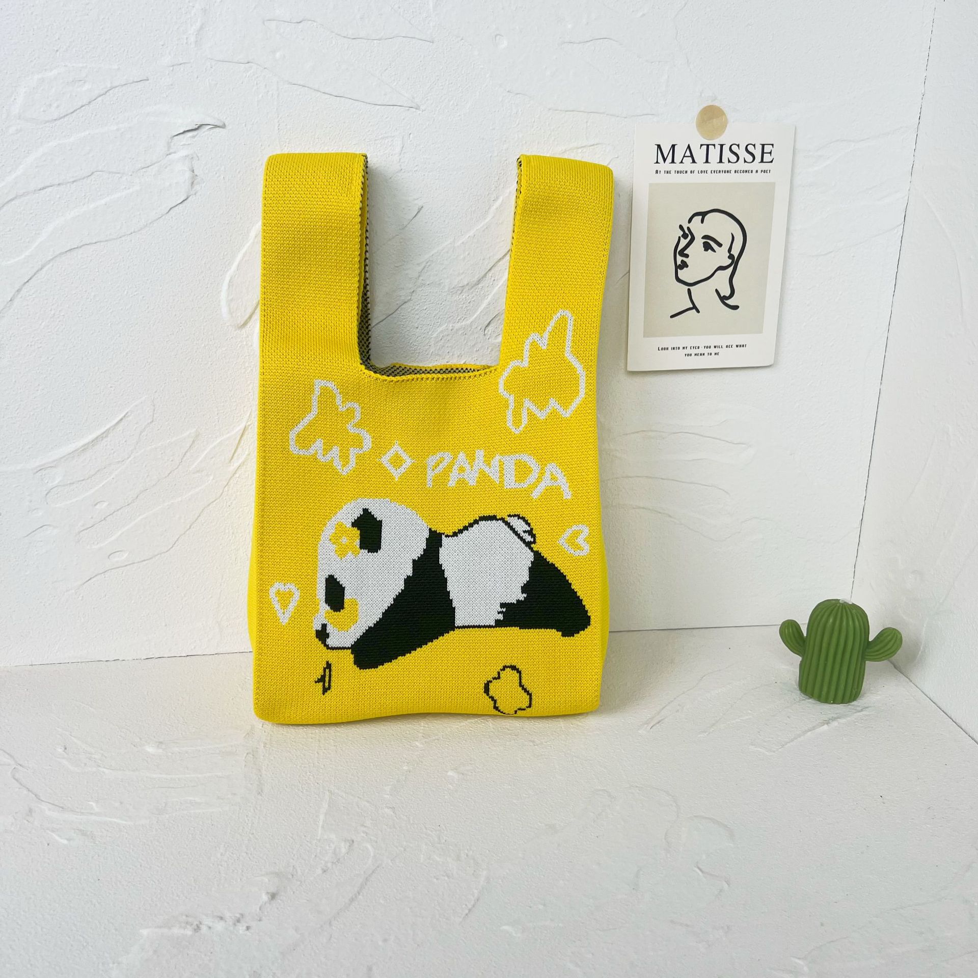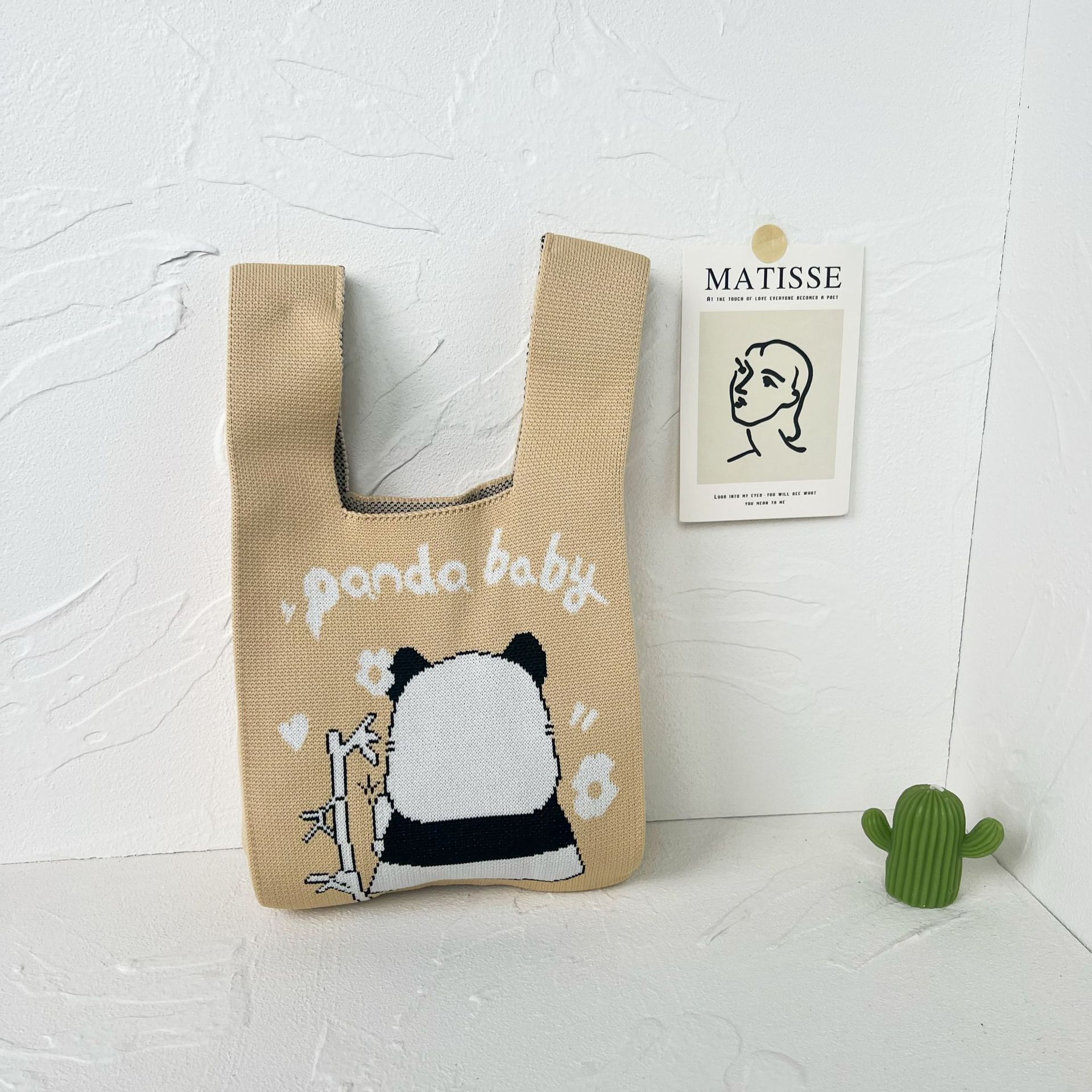 高级感ins熊猫针织包女士手提包小方包外出百搭涤纶针织手拎包包