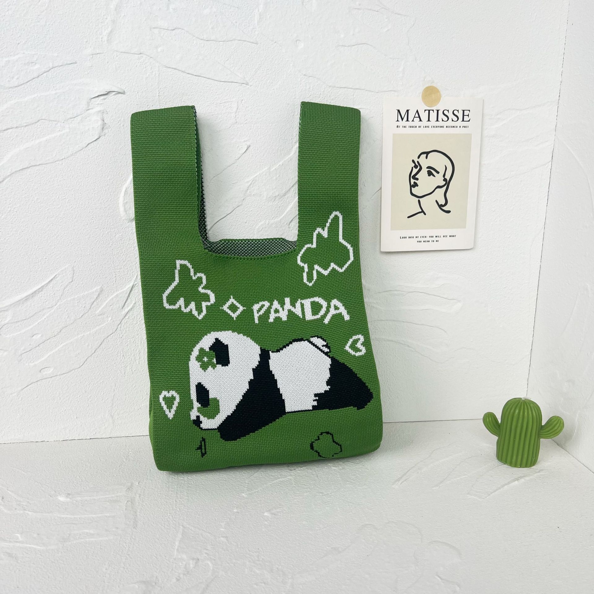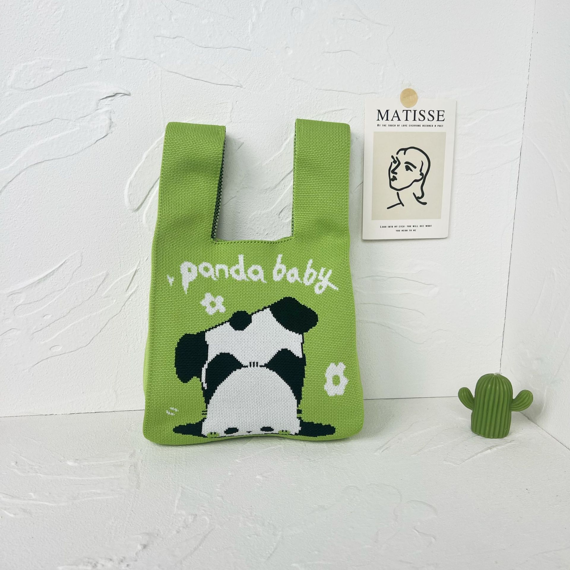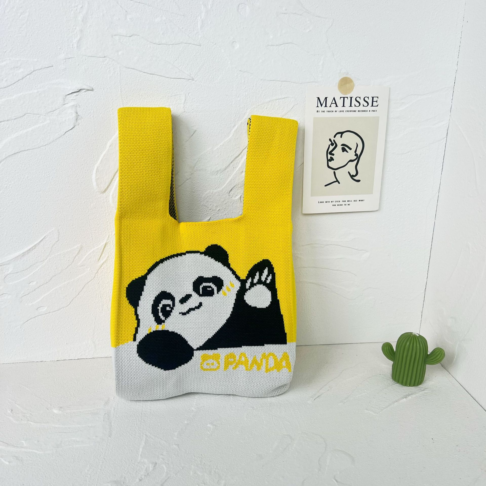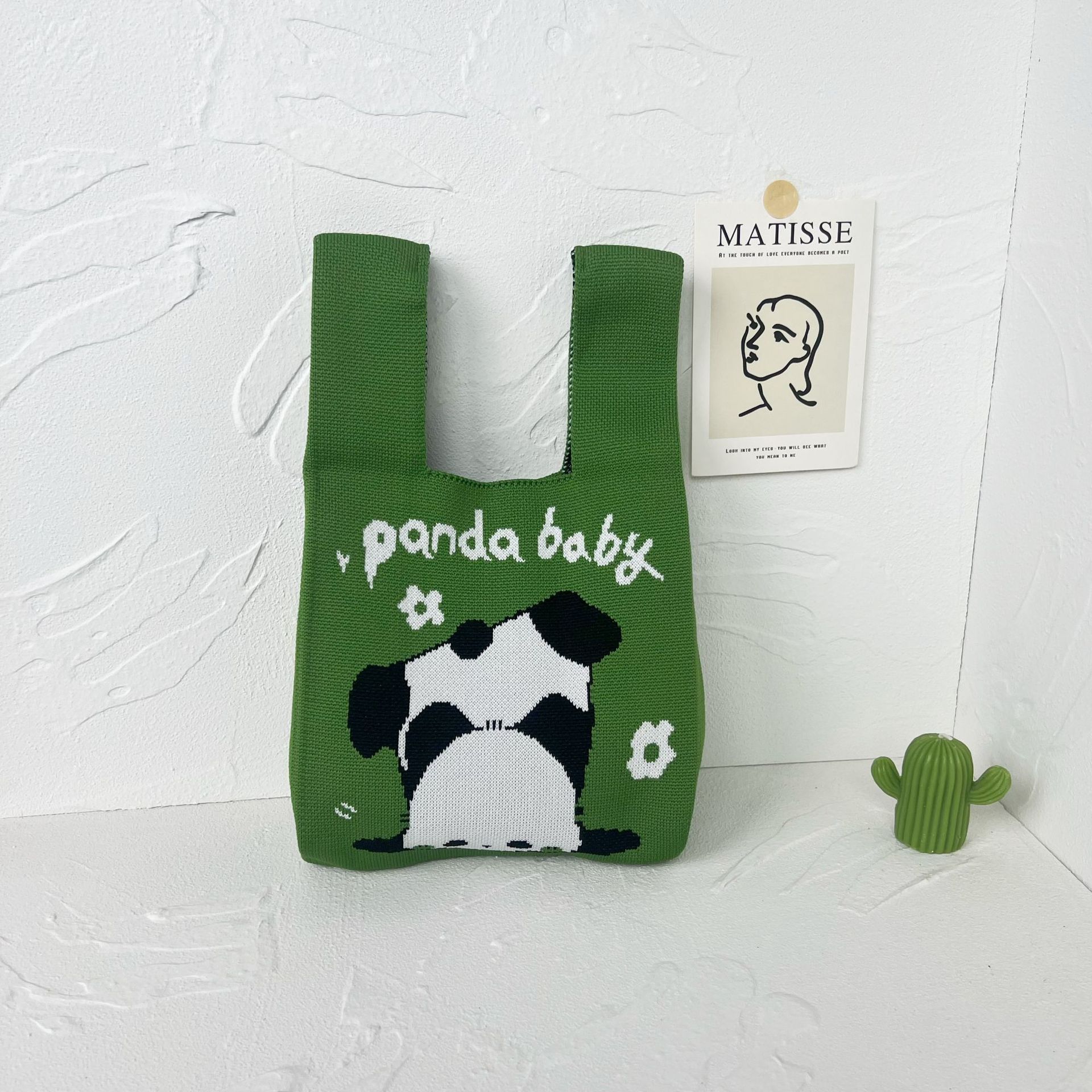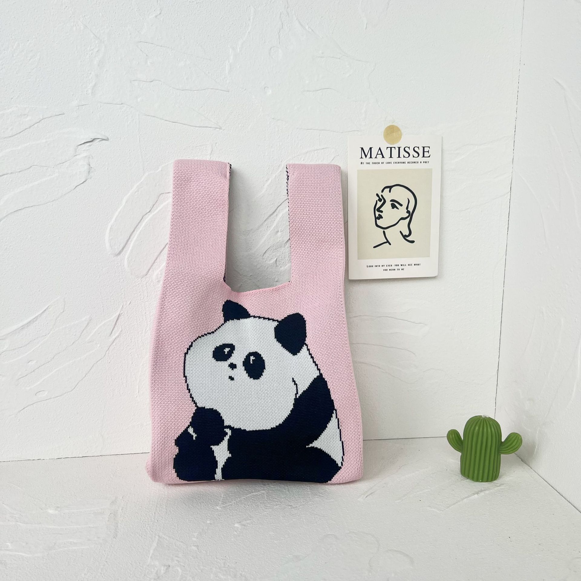 高级感ins熊猫针织包女士手提包小方包外出百搭涤纶针织手拎包包