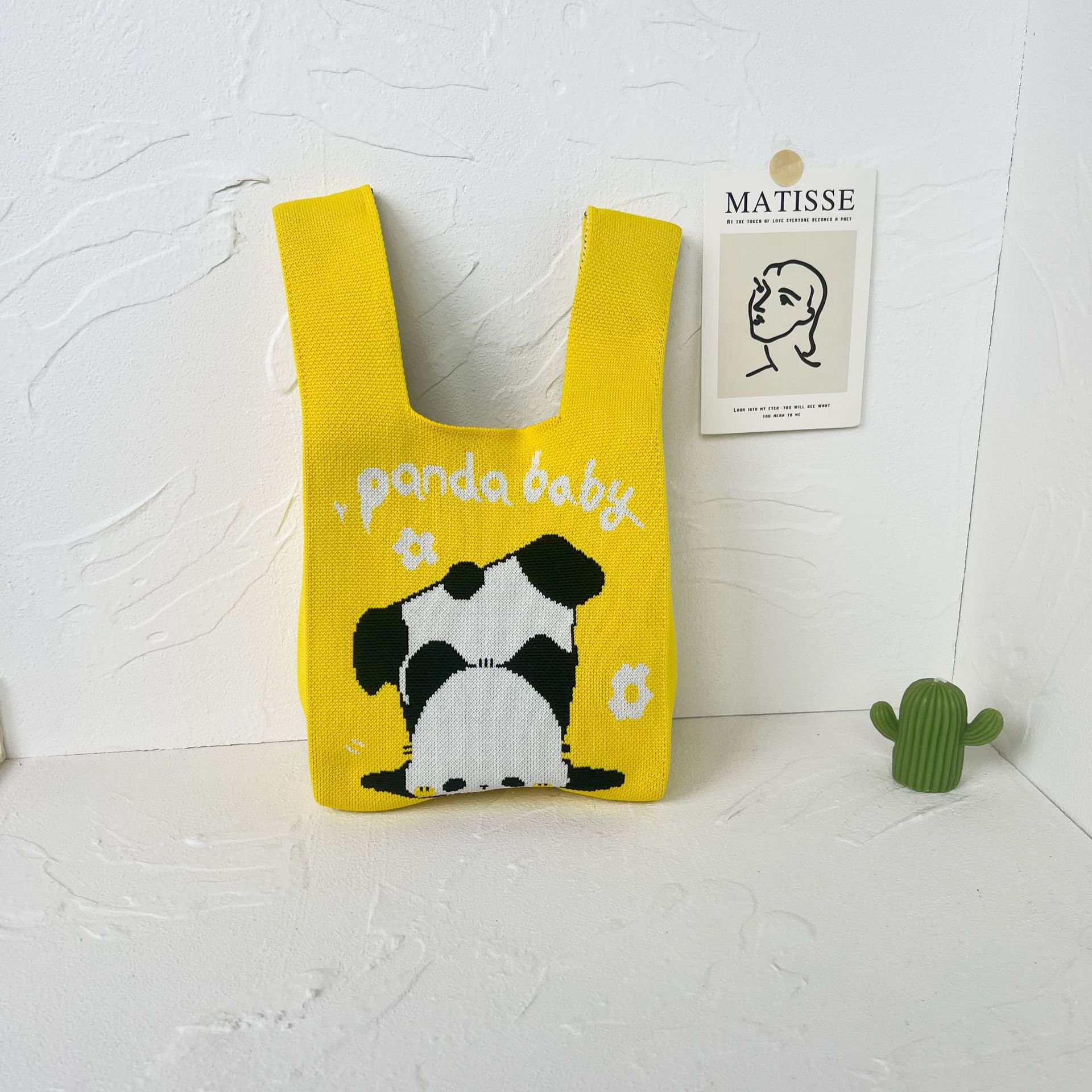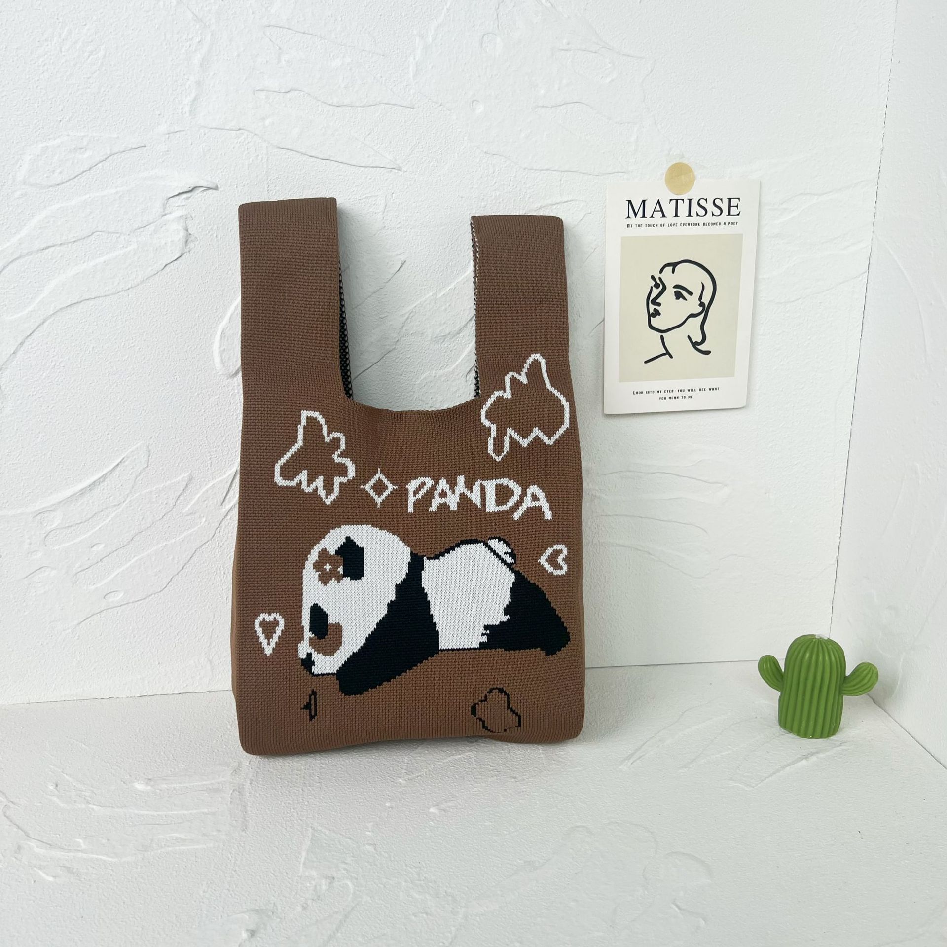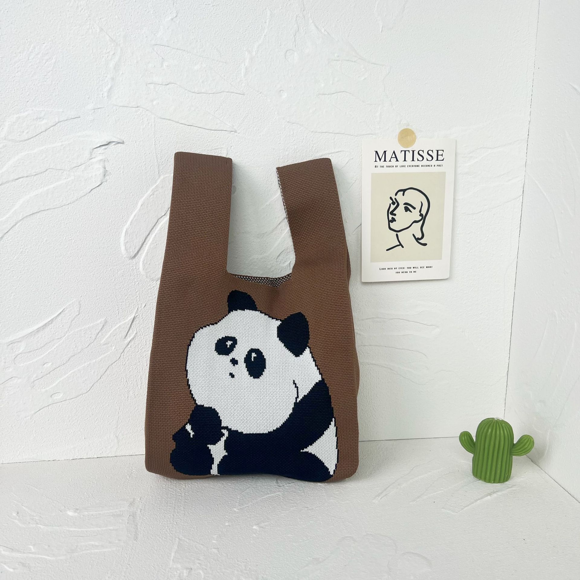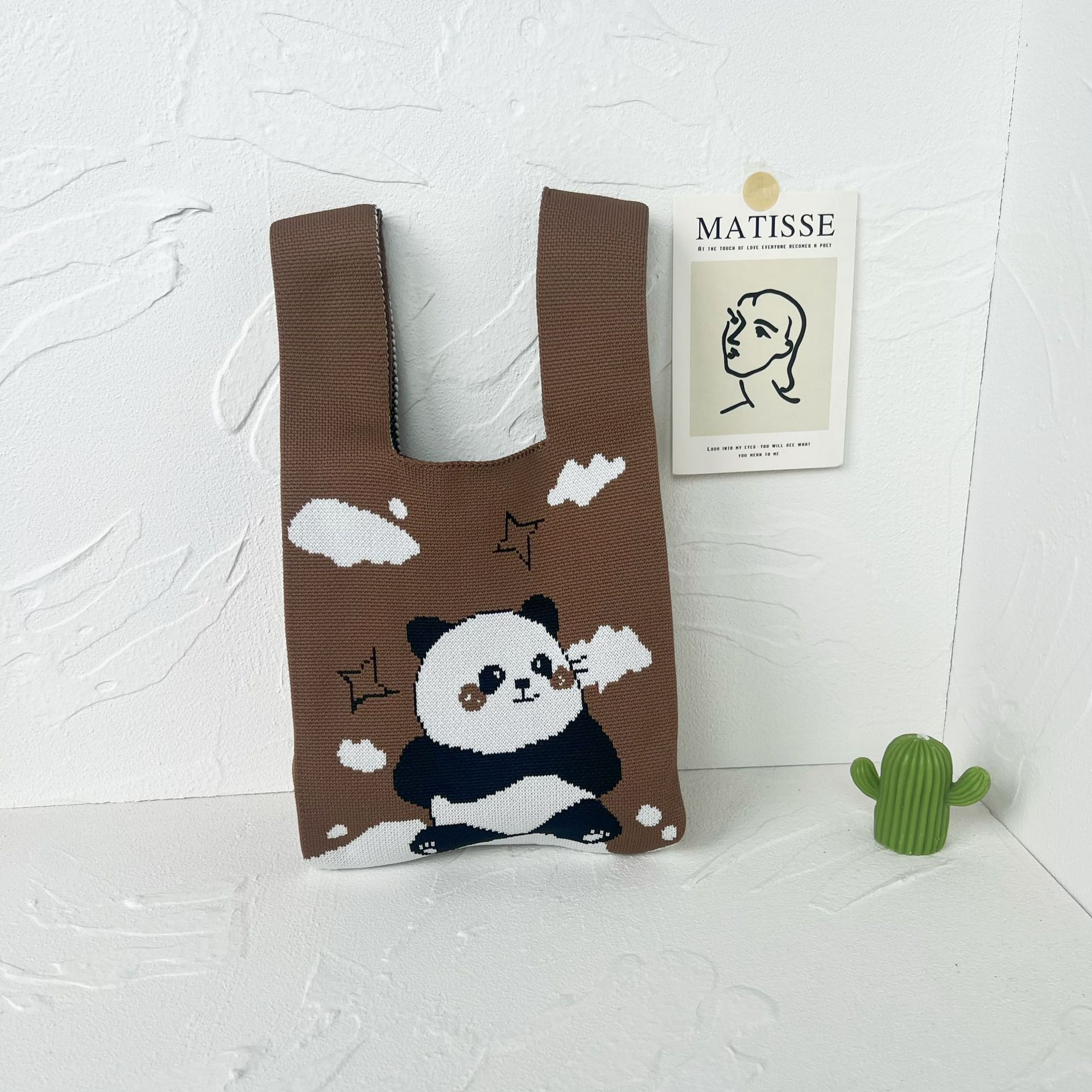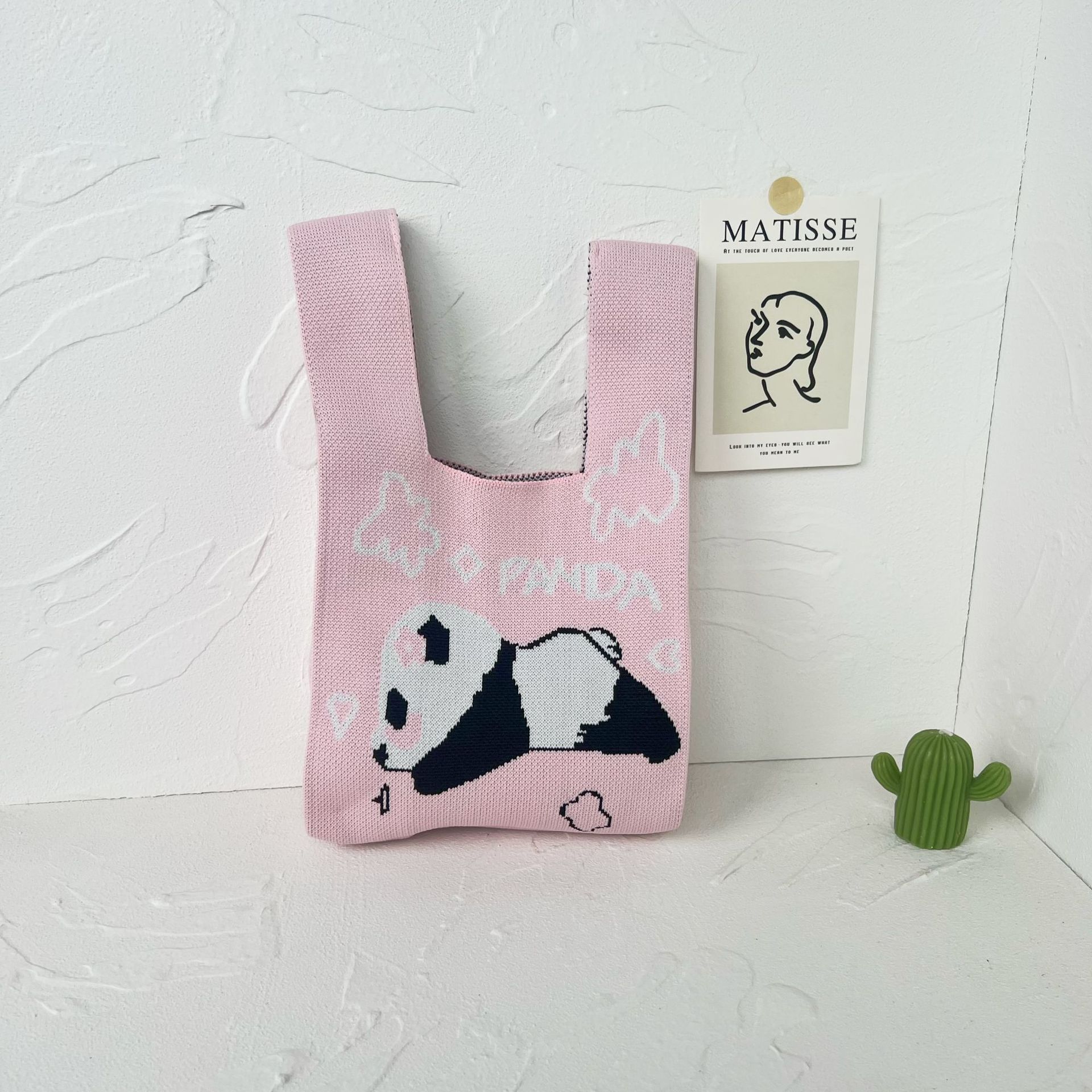 高级感ins熊猫针织包女士手提包小方包外出百搭涤纶针织手拎包包
