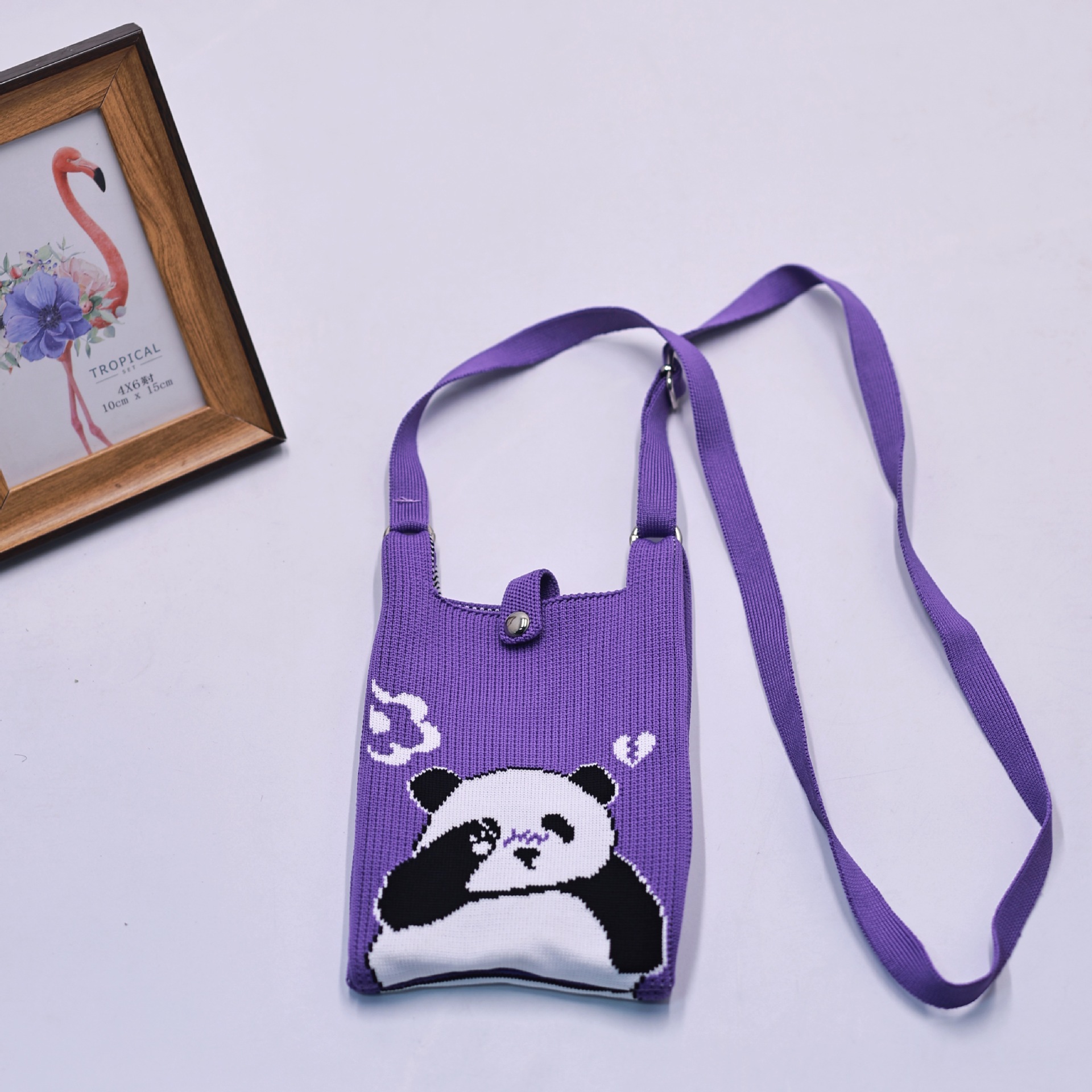 2024新款熊猫mini针织手提包国风潮流手机包单肩包百搭休闲手提包