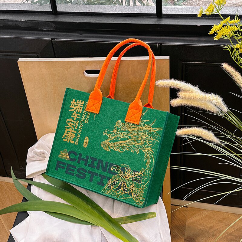 龙年新款端午粽子毛毡包礼袋礼品包装袋毛毡手提伴手礼手提收纳袋