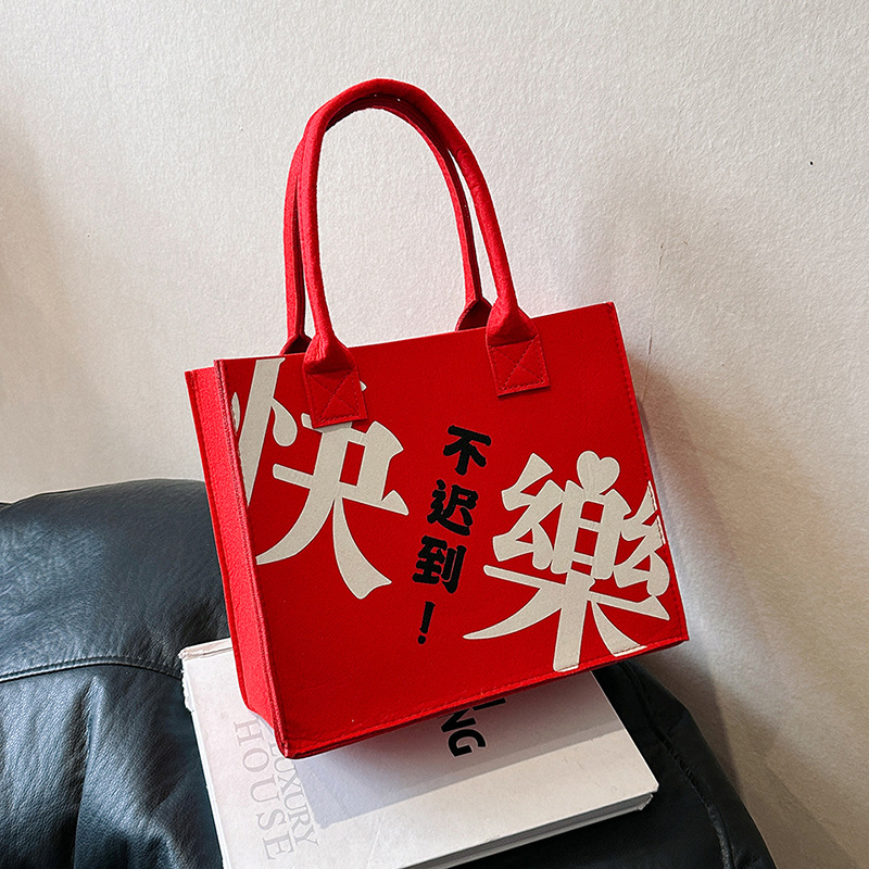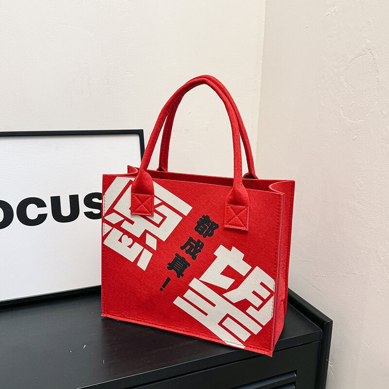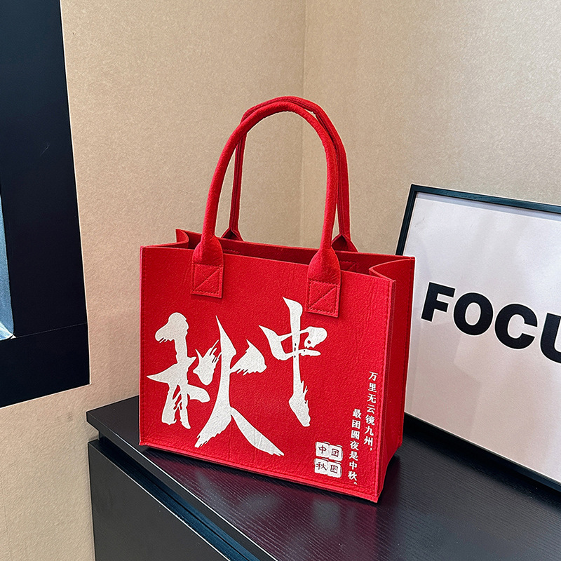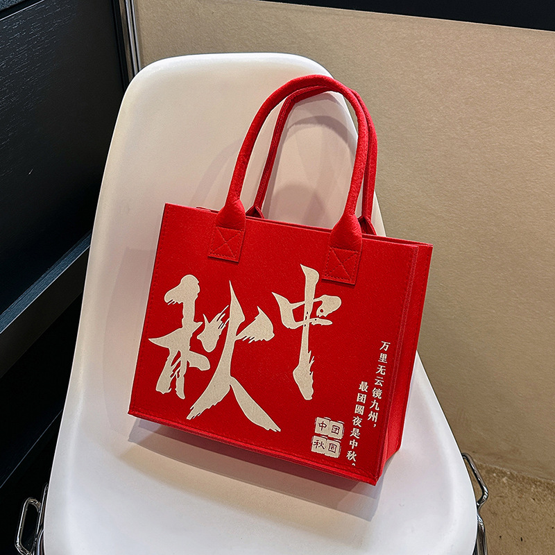 红色中秋毛毡包定制毛毡手提袋婚庆伴手礼礼品袋手提包托特收纳包
