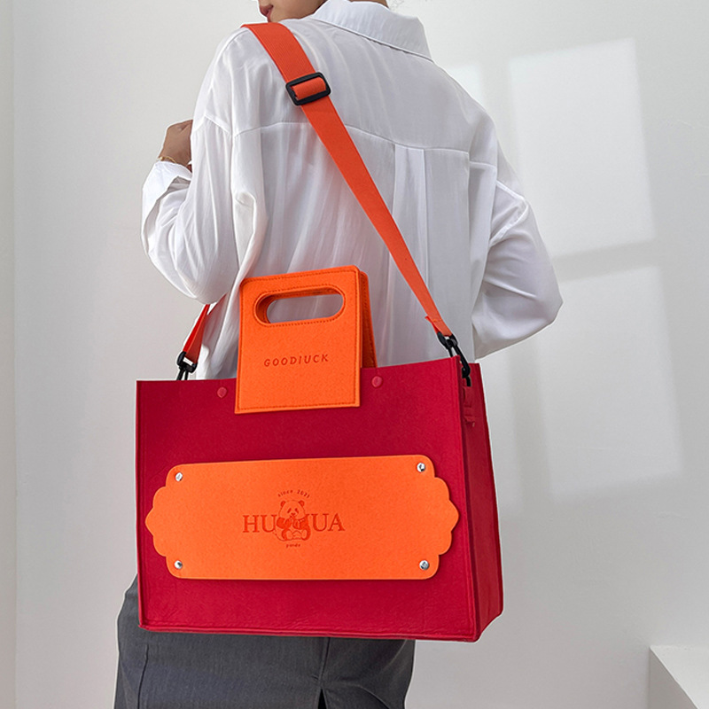 定制新款毛毡手提袋单肩斜挎毛毡包大容量托特包手提包广告礼品袋