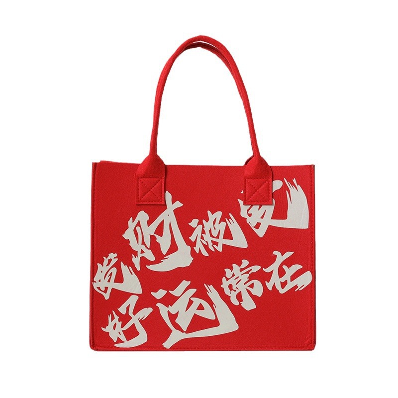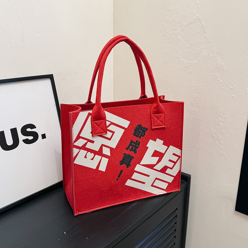 中秋毛毡包手提袋圆形月饼伴手礼礼品收纳袋中秋印花毛毡手提包