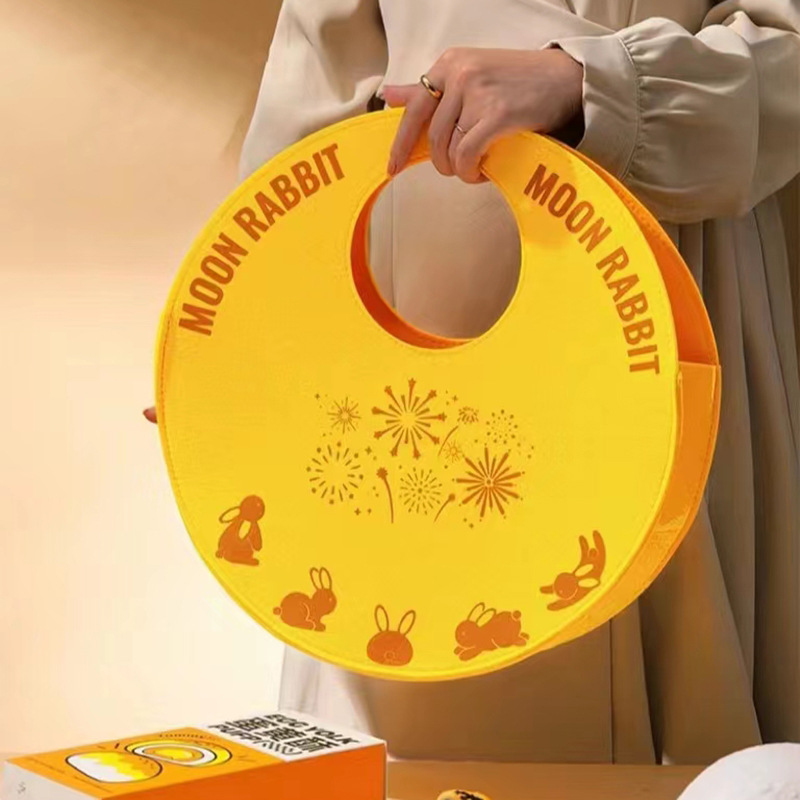 小红书同款圆形中秋毛毡包大容量毛毡手提袋礼品袋月饼礼盒伴手礼