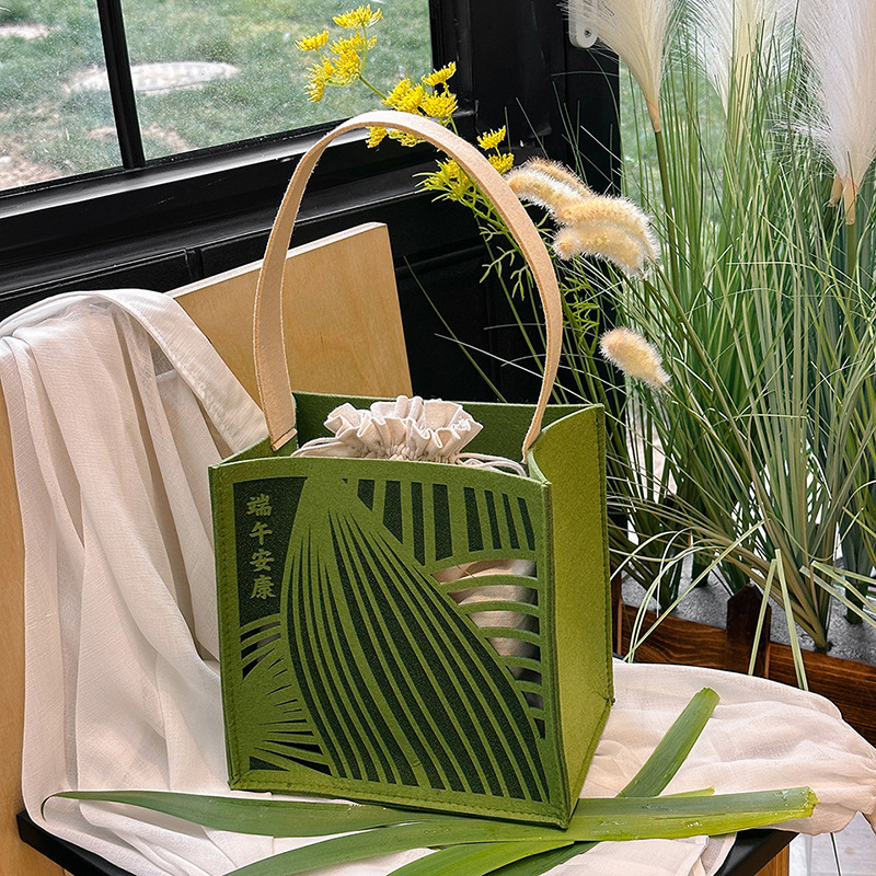 2024新款端午粽子毛毡包伴手礼手提礼品袋礼盒粽子包装毛毡手提袋