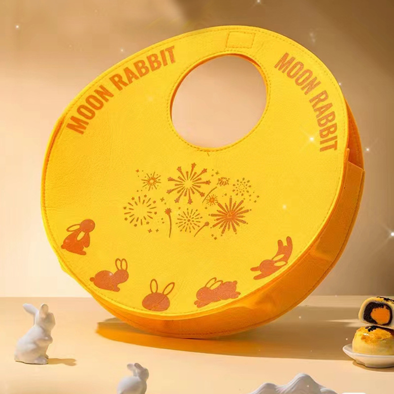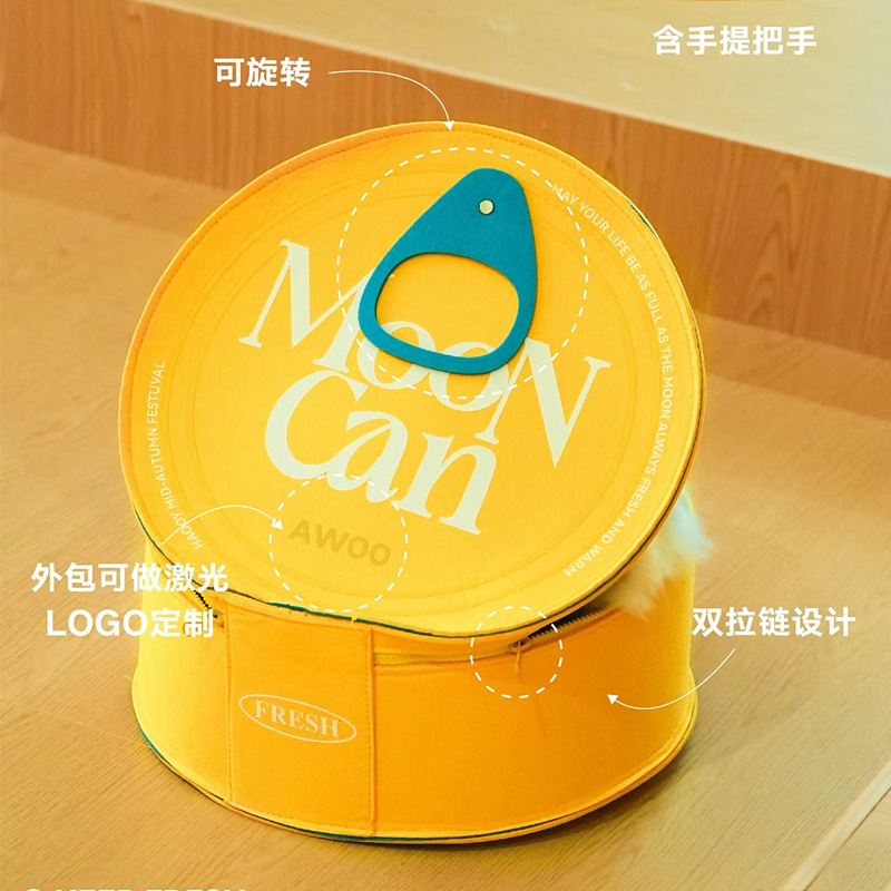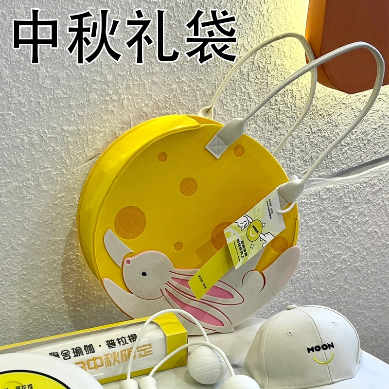 2024新款圆形中秋毛毡包伴手礼礼品袋毛毡手提袋中秋月饼礼盒可定