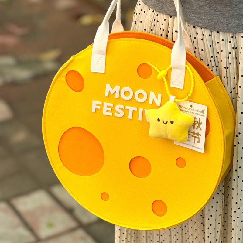 新品中秋圆形毛毡包手提袋伴手礼包月饼礼盒礼品袋中秋毛毡收纳袋