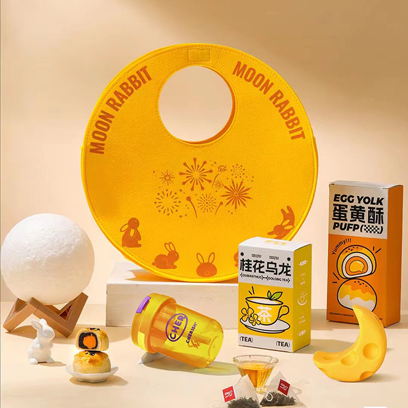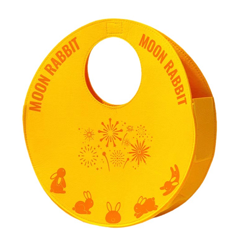 新款圆饼中秋圆形毛毡包中秋礼盒伴手礼品袋圆形手提包毛毡手提袋