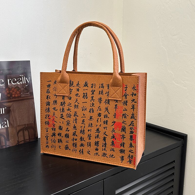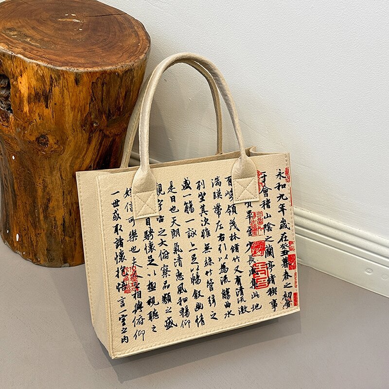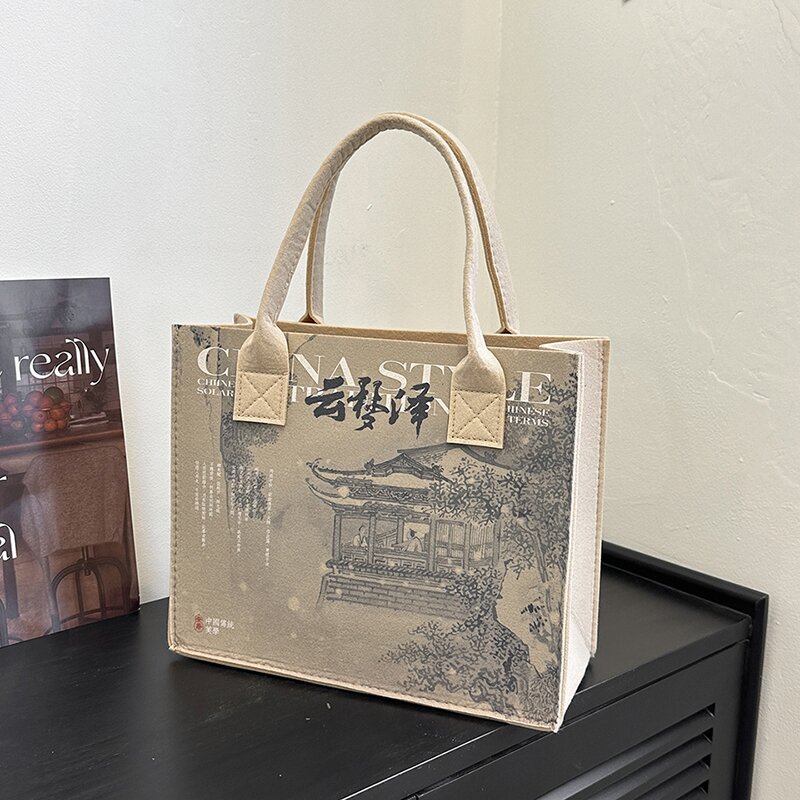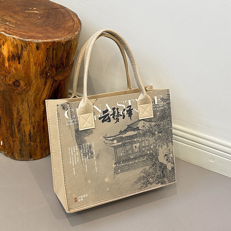 新款网红毛毡包国风毛毡伴手礼手提礼品袋大容量购物袋手提收纳包
