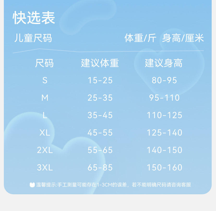 | 110-size m (height 95-110cm weight 12.50 kg-17.50 kg(110-M码(身高95-110cm体重25-35斤)) | USD $0.0 | 5307 piece available |