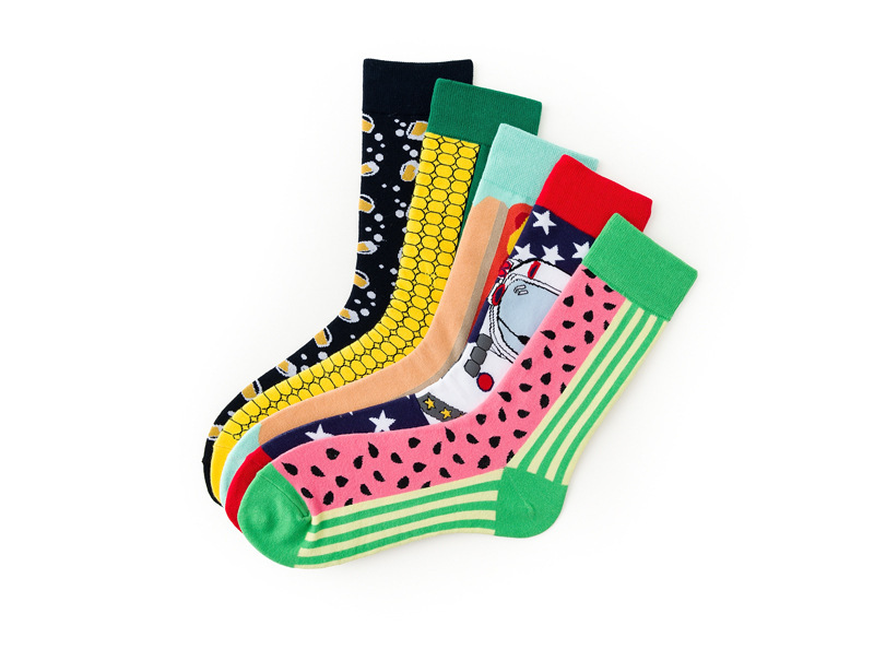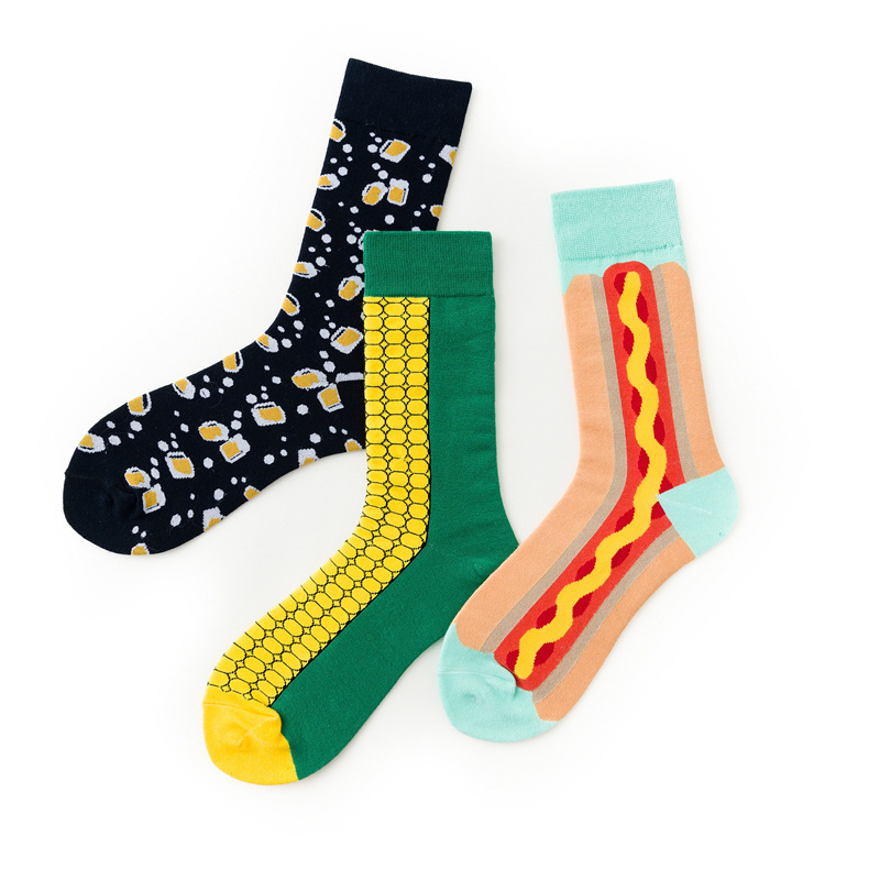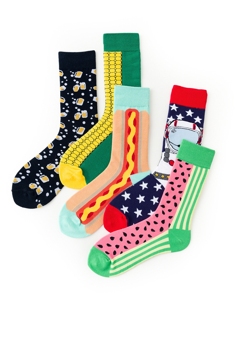 春秋男士新款潮牌袜子四季棉质跨境情侣西瓜玉米系列袜子批发