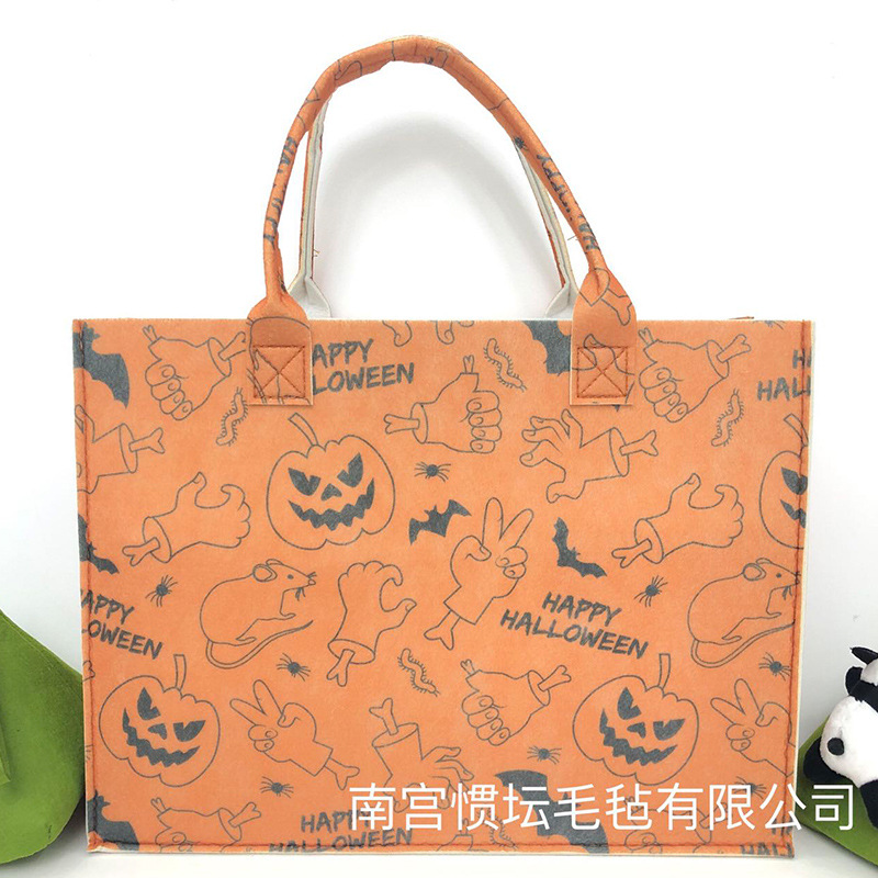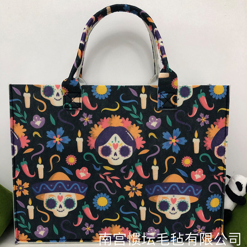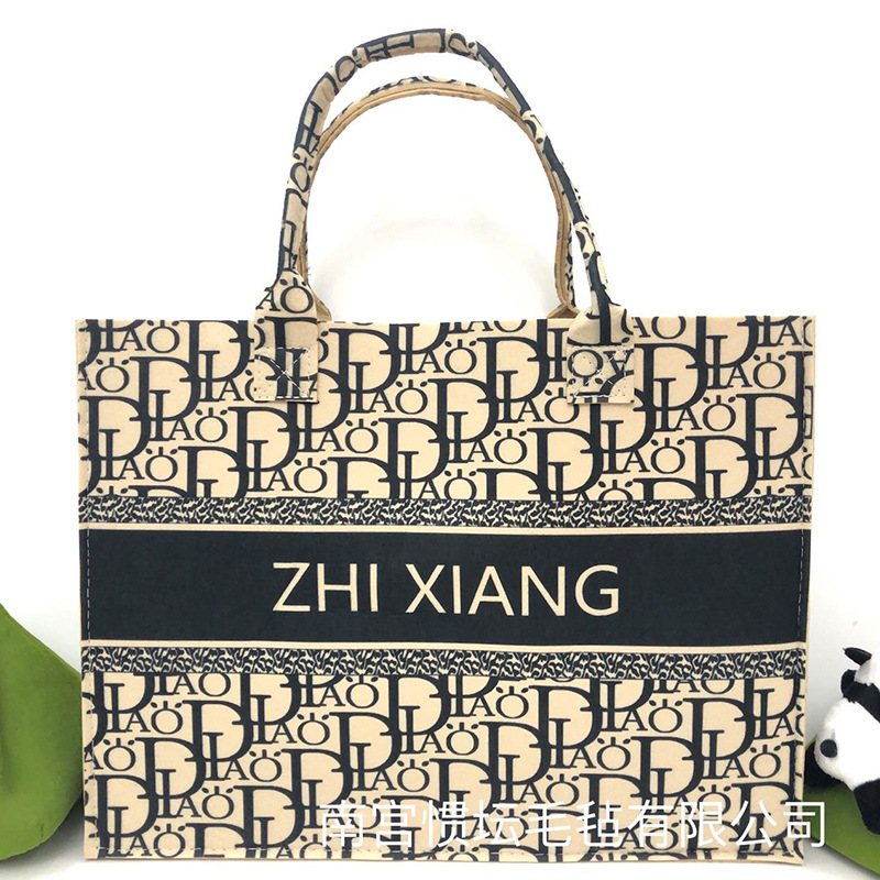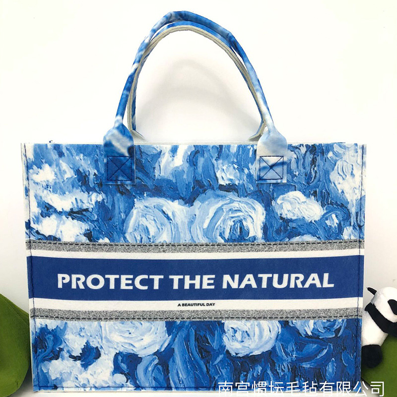 复古印花毛毡包 满印油画风毛毡托特包毛毡手提包时尚女士伴手礼