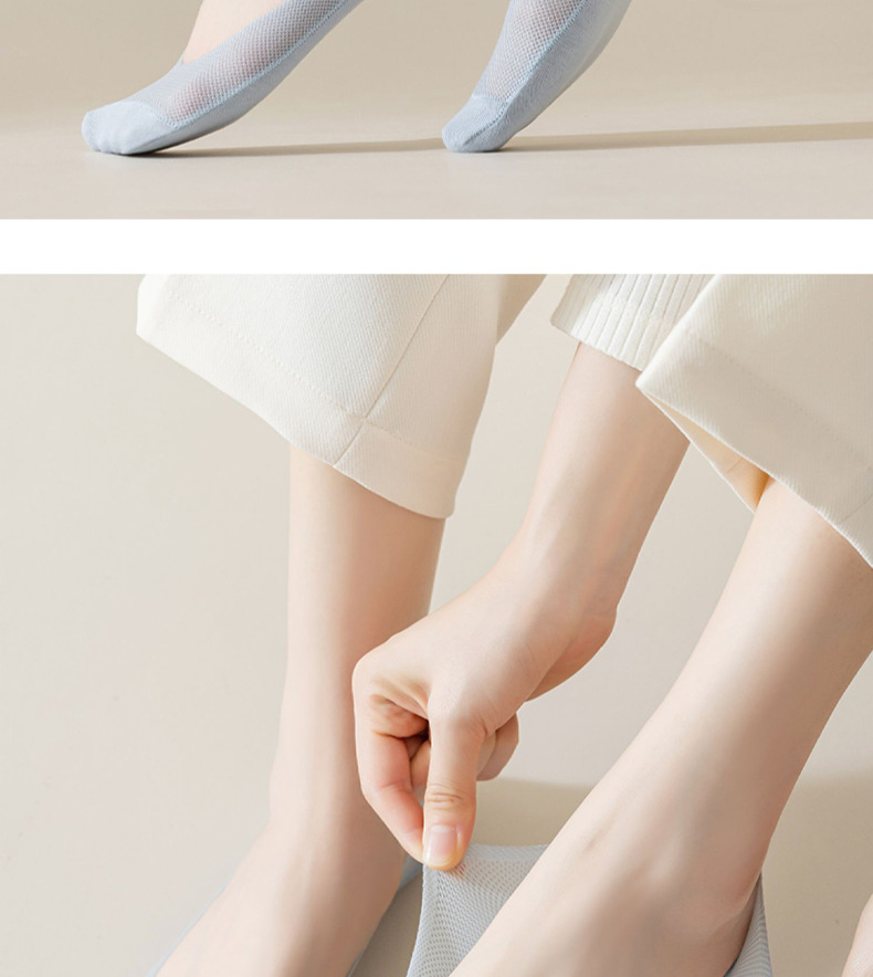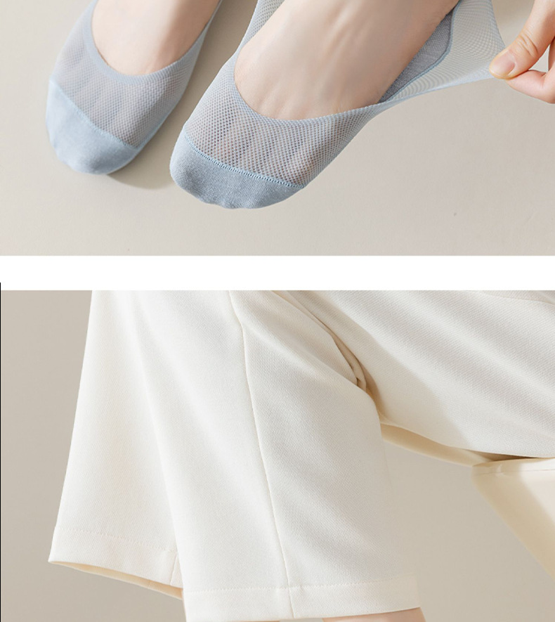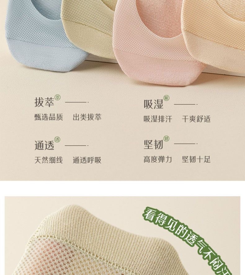 网眼防顶破冰丝女船袜夏薄隐形不掉跟纯色棉底短袜套防滑透气女袜