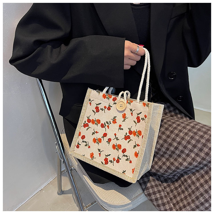 帆布手提包包2023新款学生百搭ins时尚小挎包日系少女手拎麻布袋