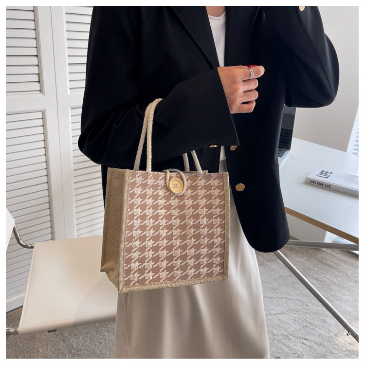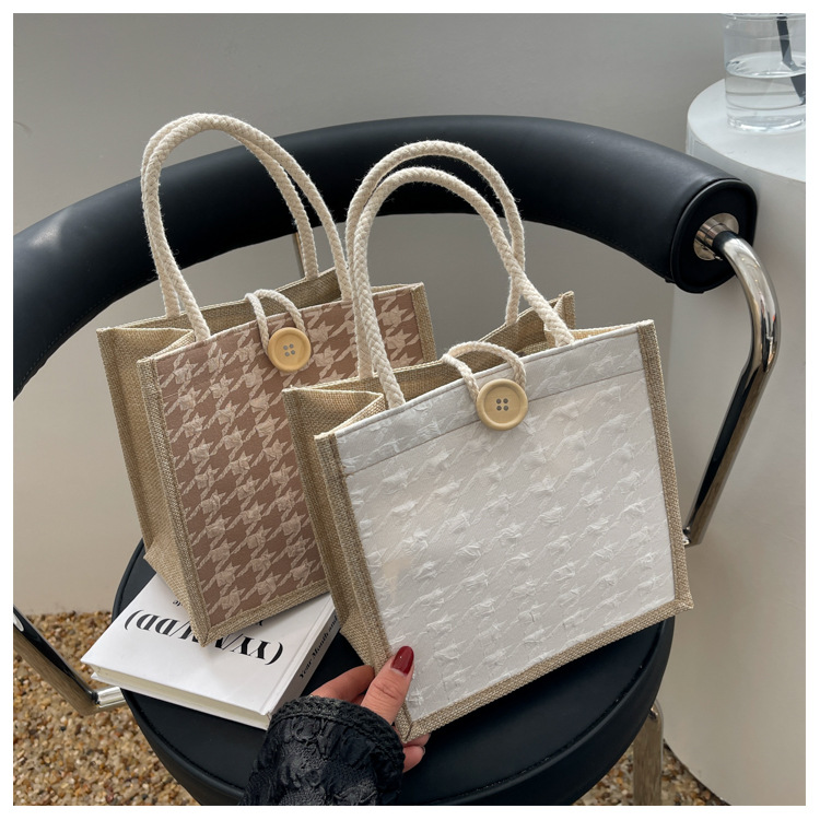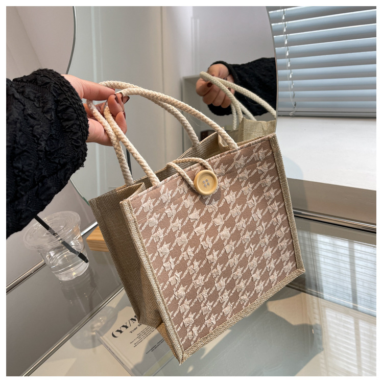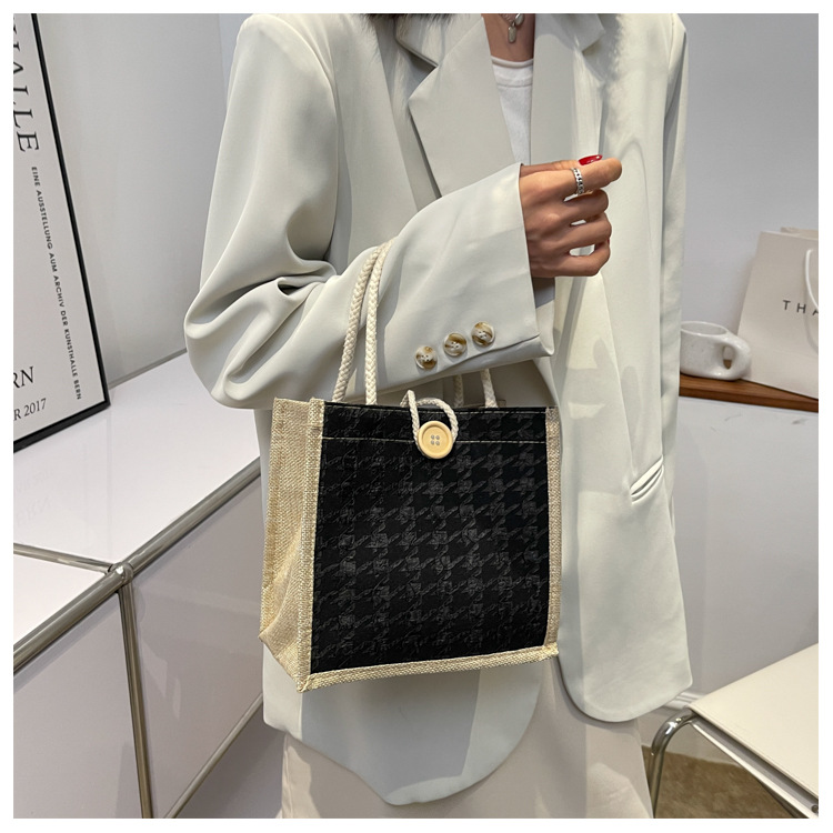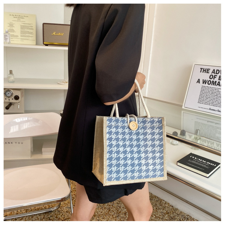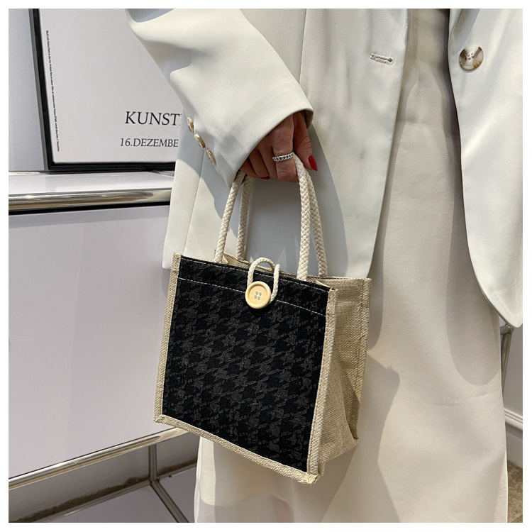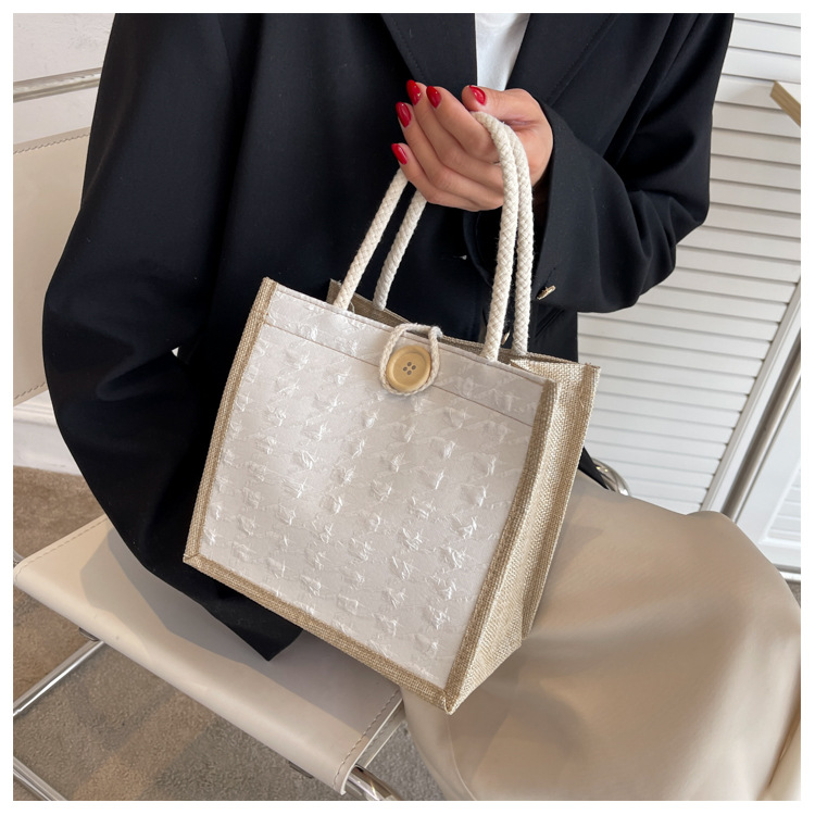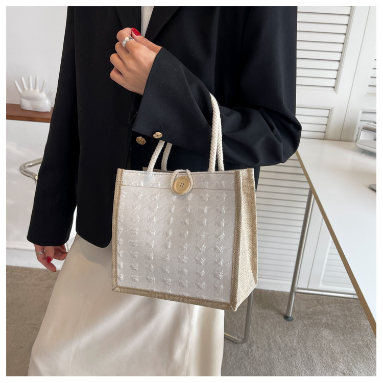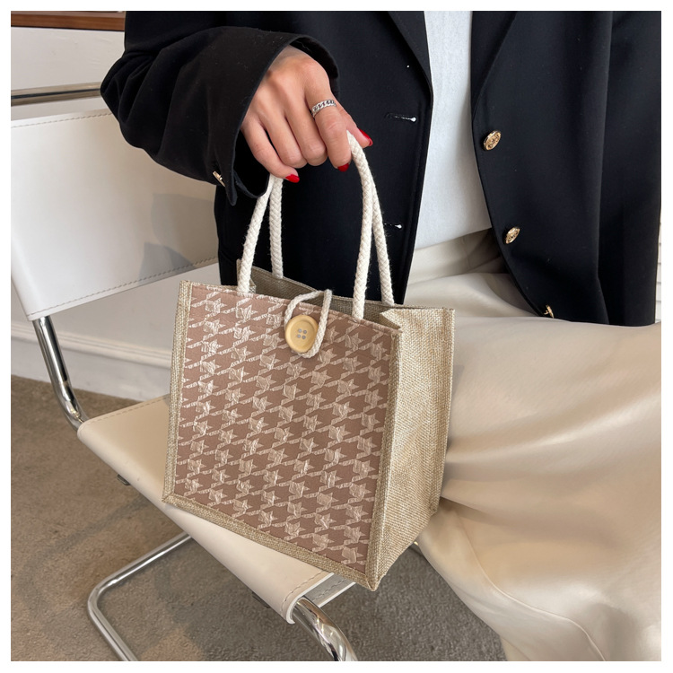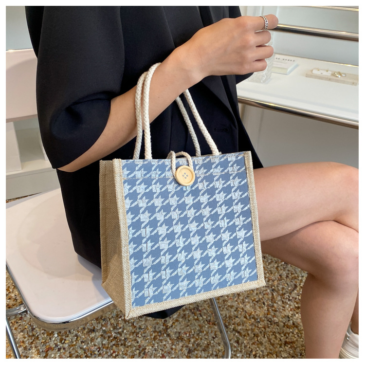 网红ins亚麻手提袋子包2023新款时尚外出帆布便当袋上班族提饭包