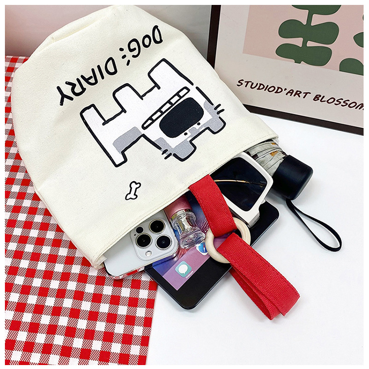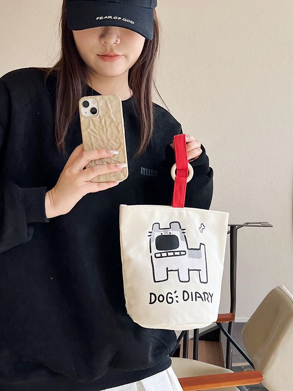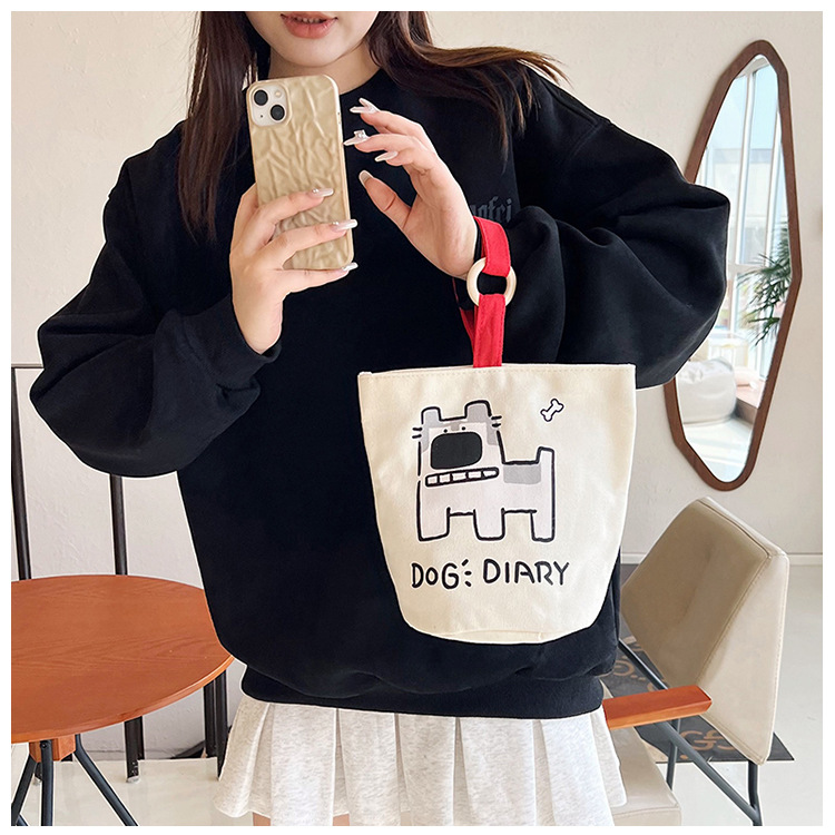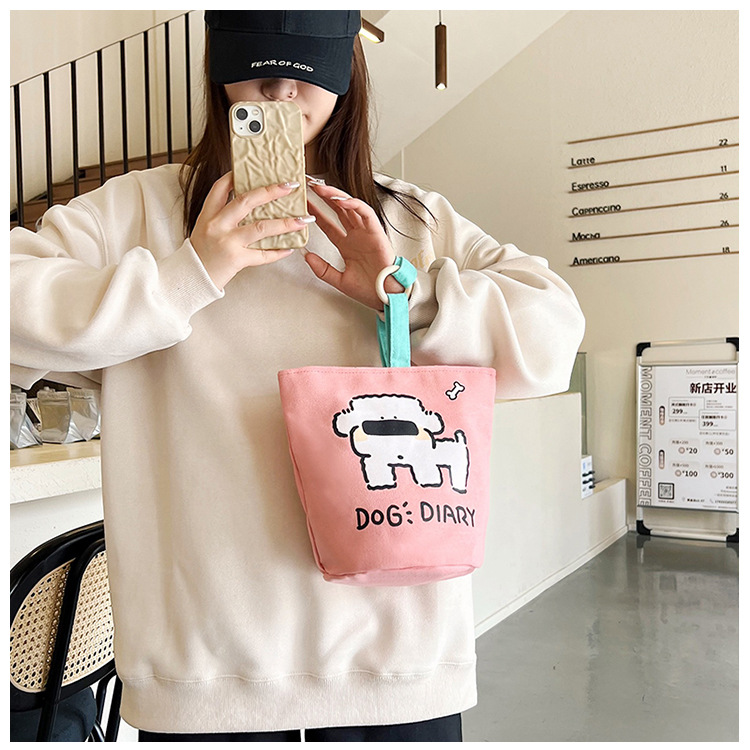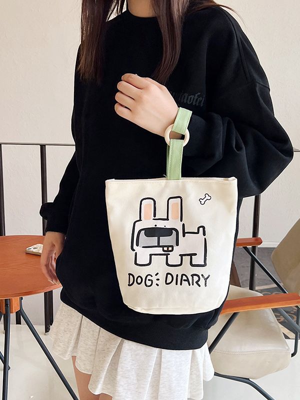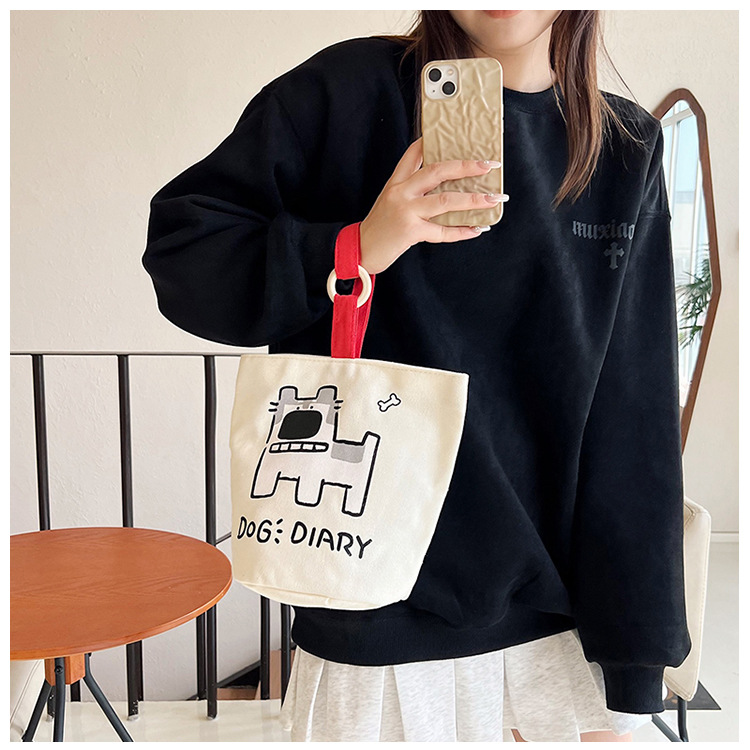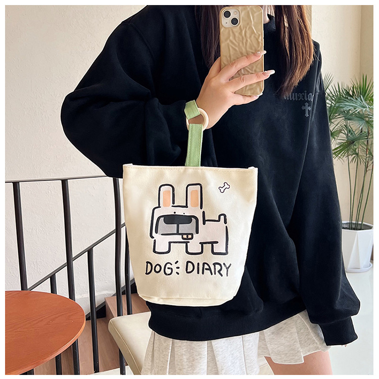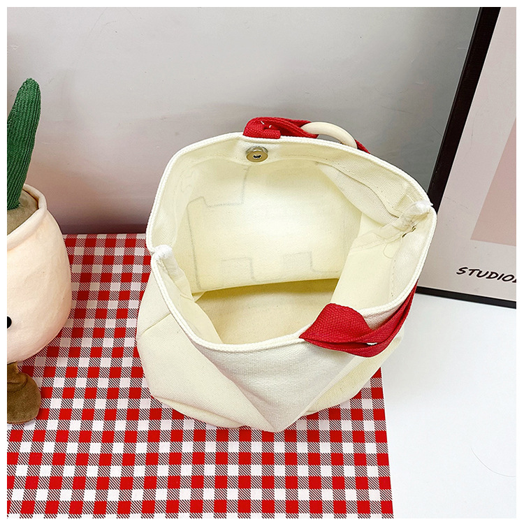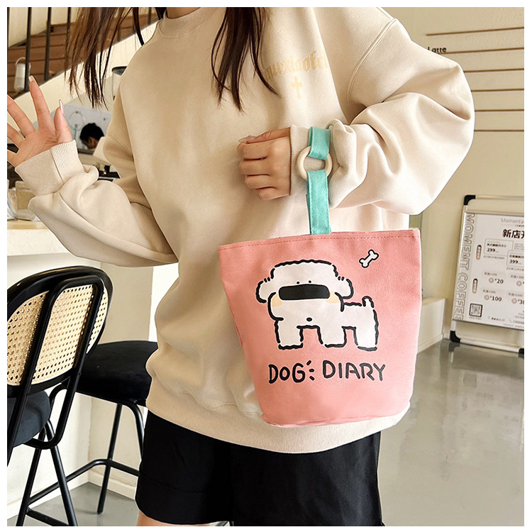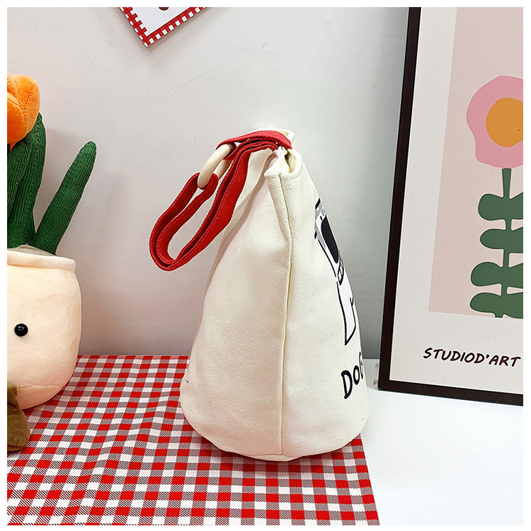 上班族便携妈咪帆布包购物学生可爱水桶型手拎便当带饭盒手提包女