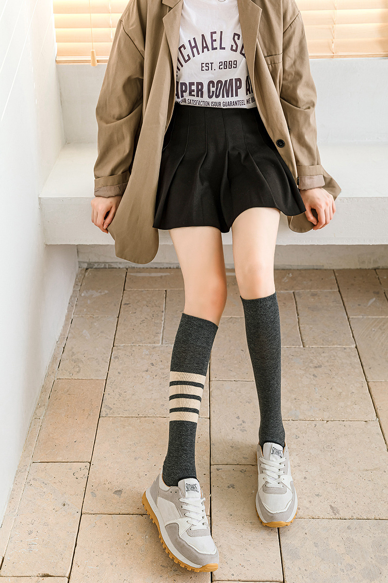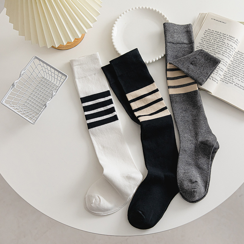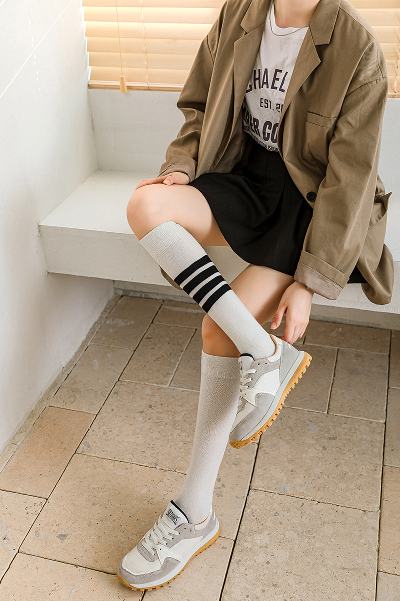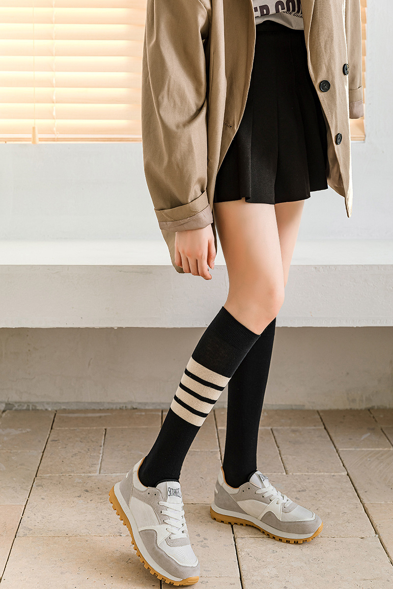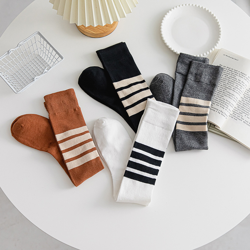 个性INS街头潮袜不对称小腿袜条纹四杠棉中筒袜网红同款中长棉袜