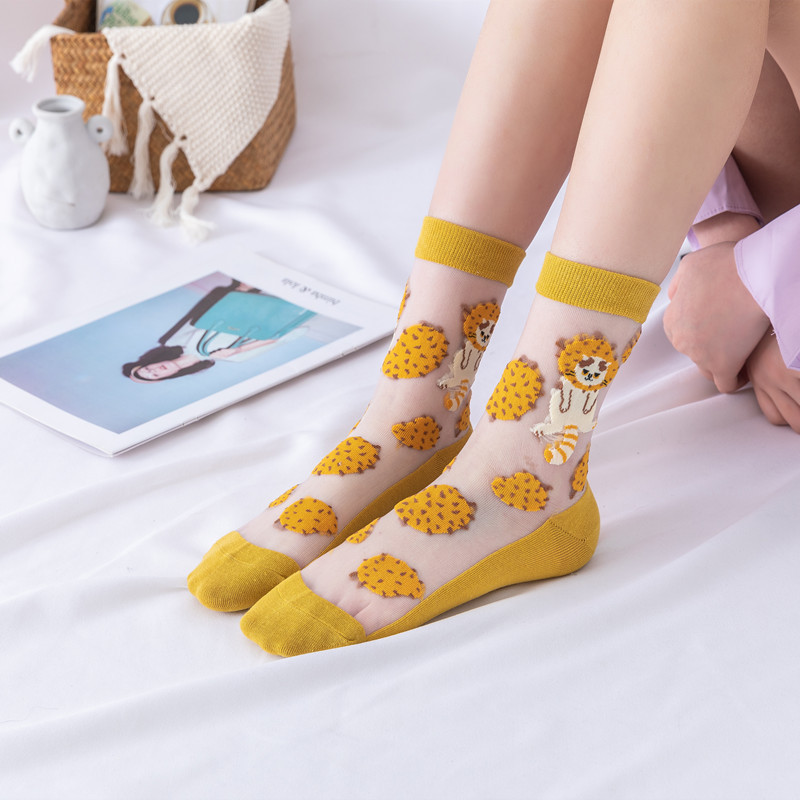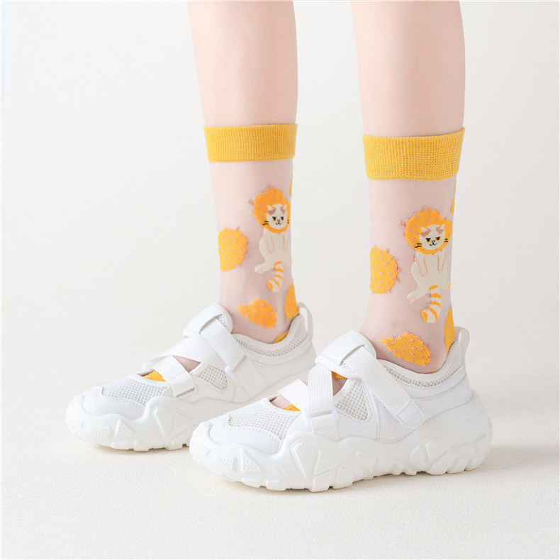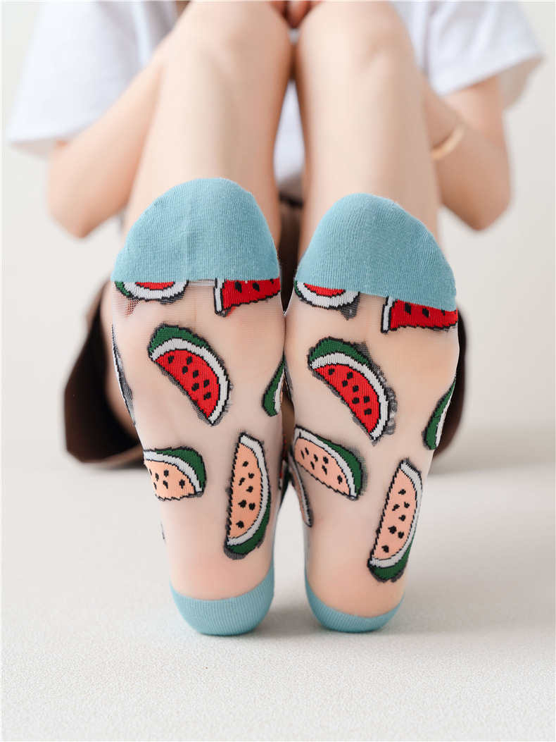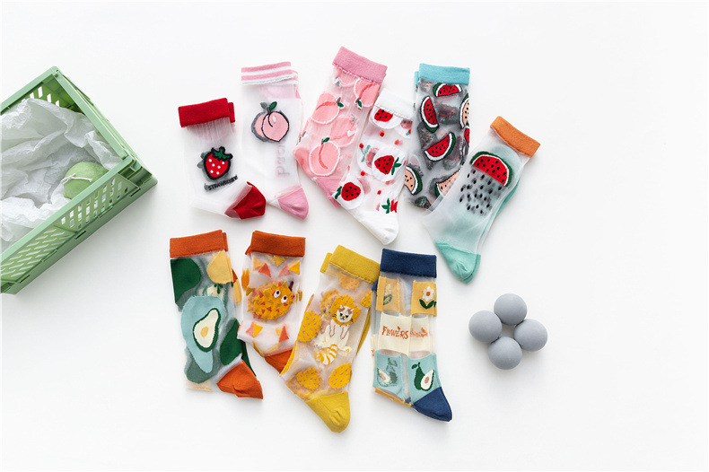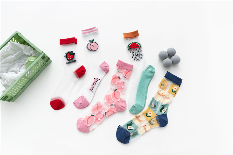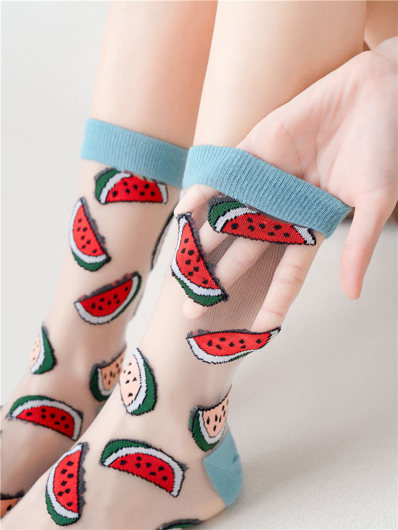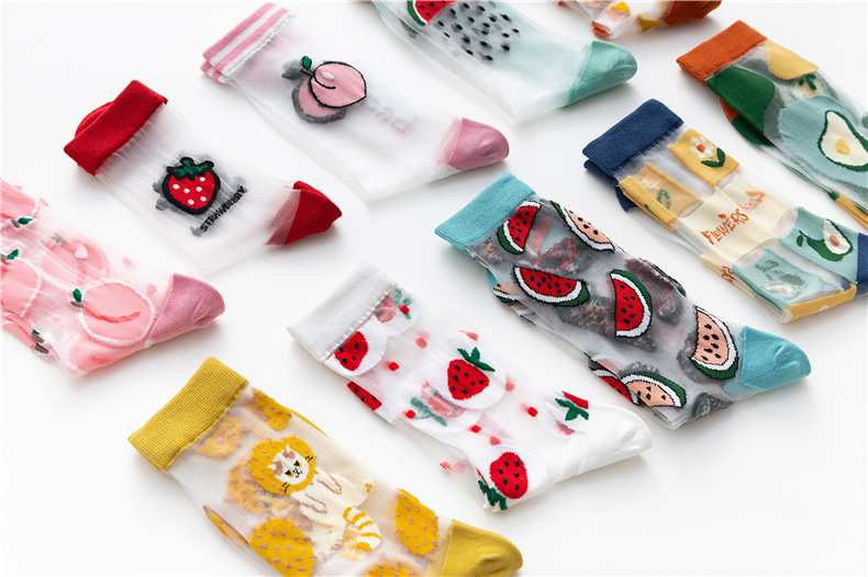 春夏新品女袜日系水果卡丝超薄袜子透气中高筒袜Lolita玻璃丝袜
