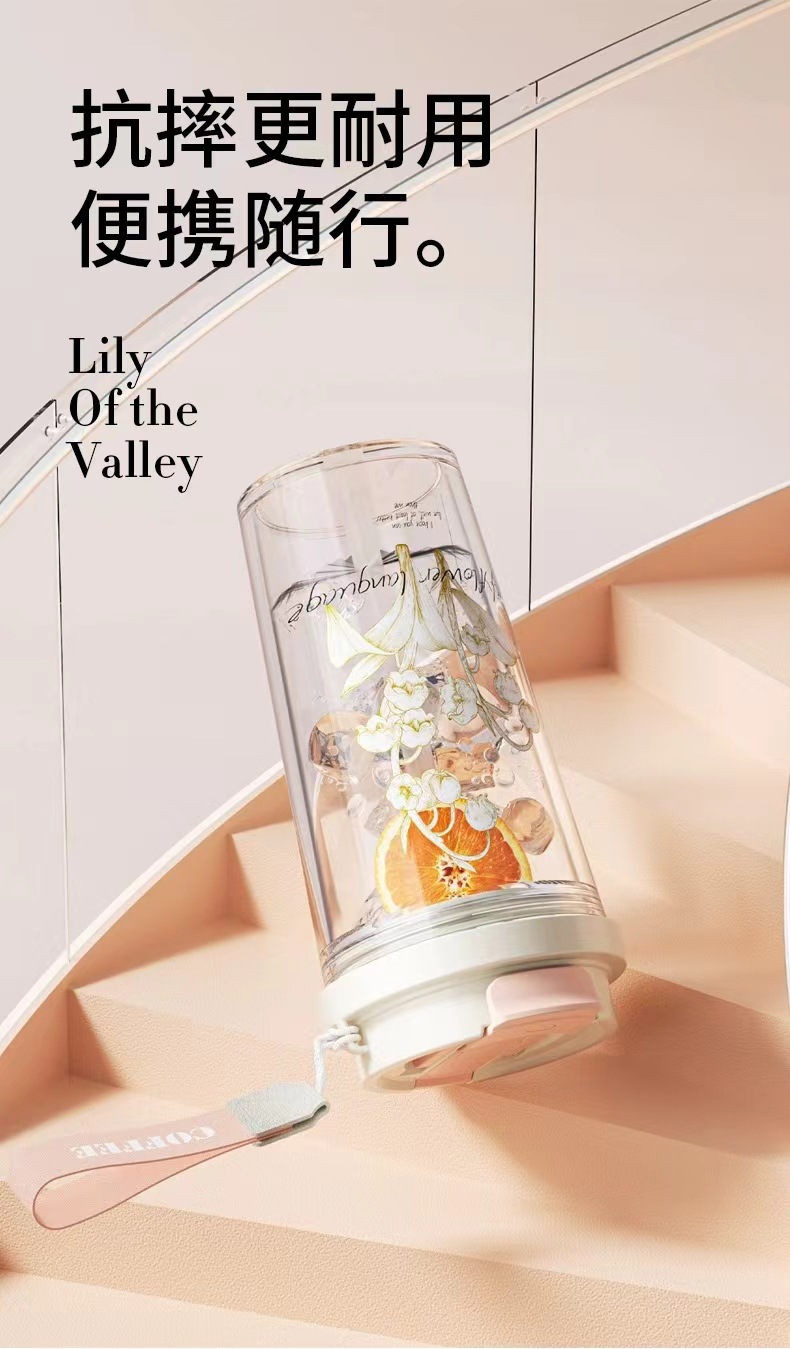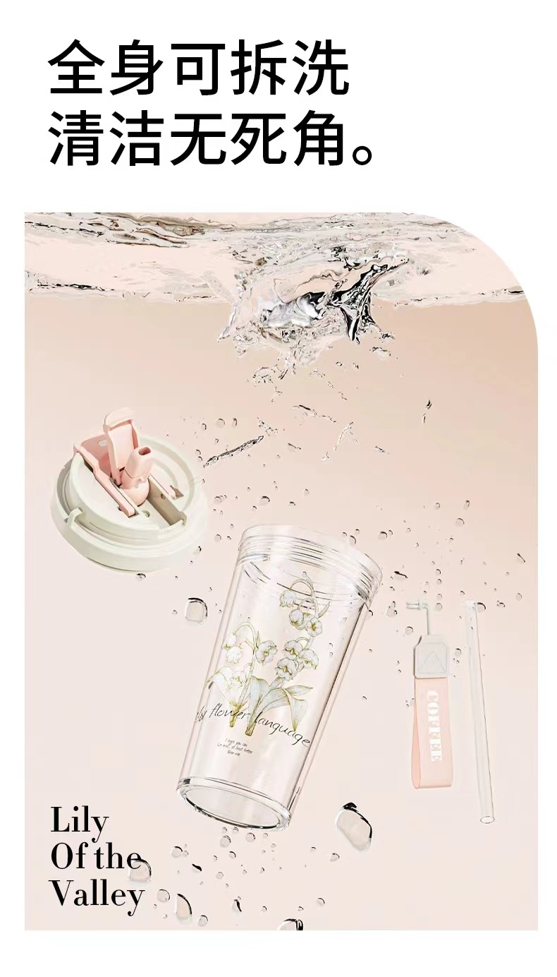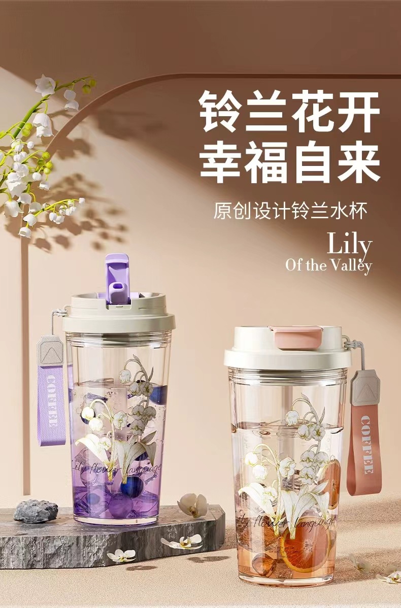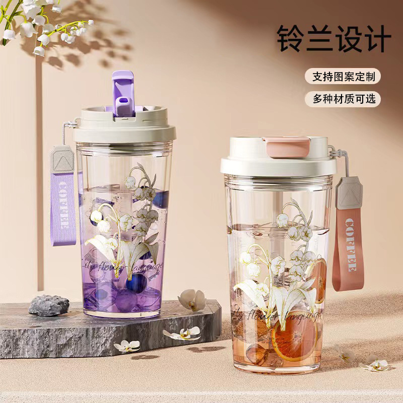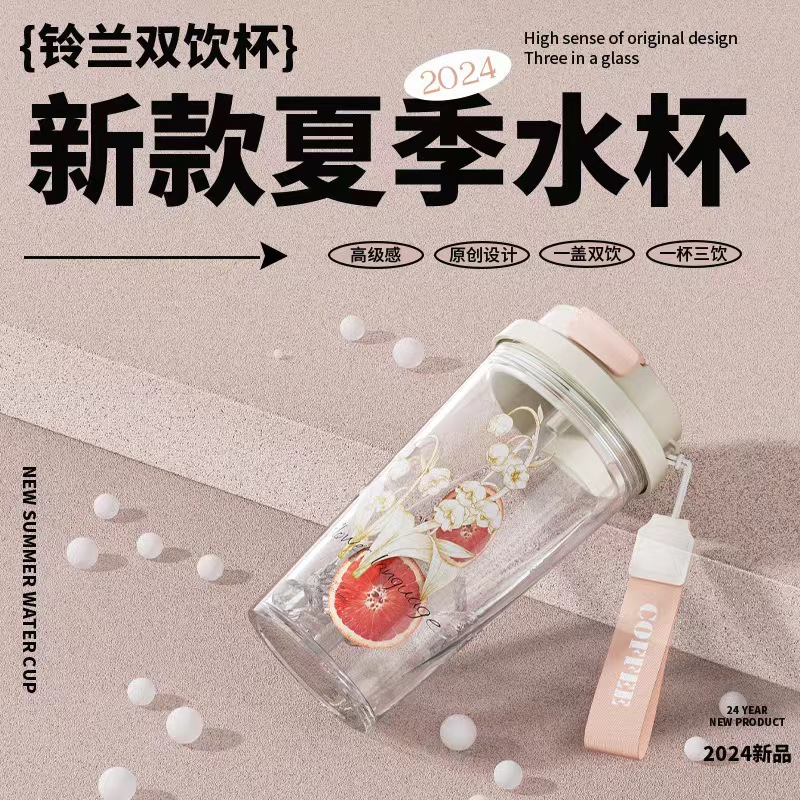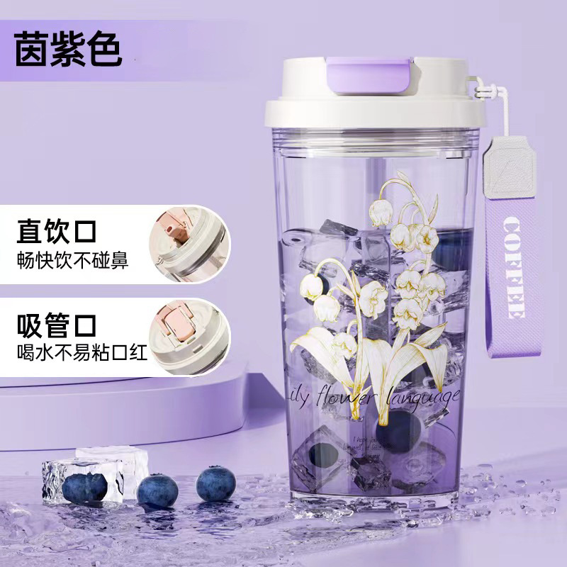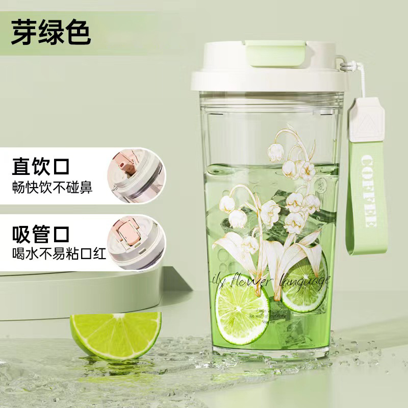 外贸新款定制杯子夏季高颜值提手便携随手吸管双饮水杯家用塑料杯