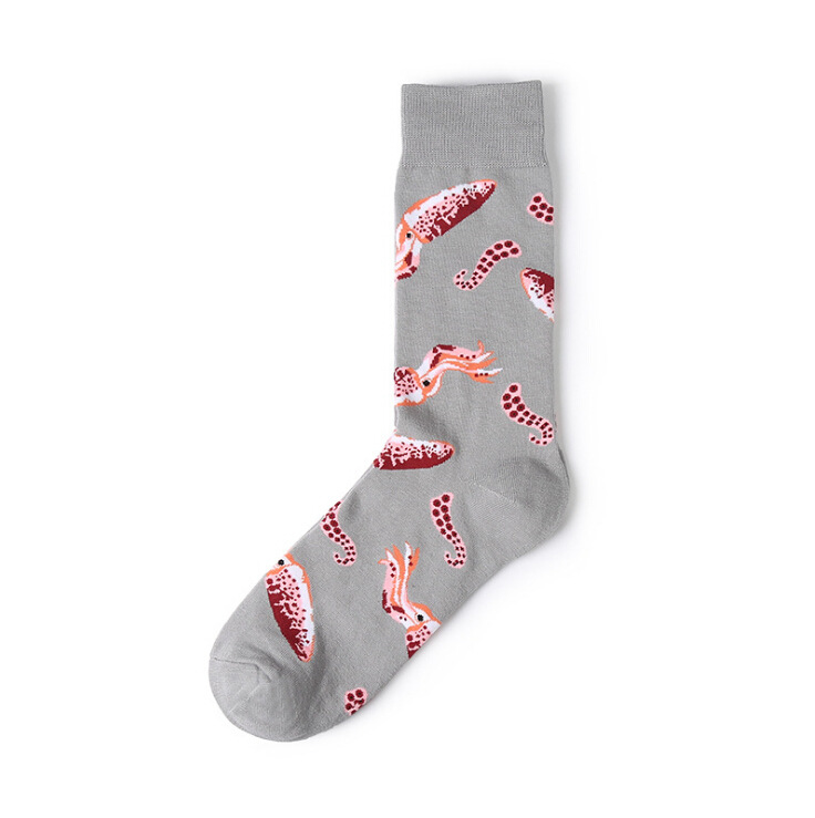 秋冬欧美新品袜子批发 个性海鲜北极虾纯棉袜男士女士长筒袜