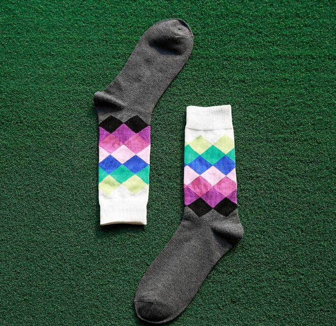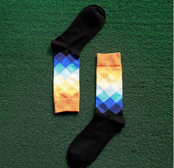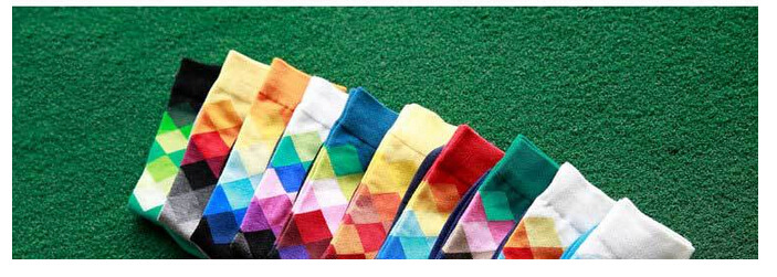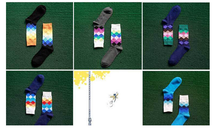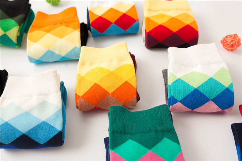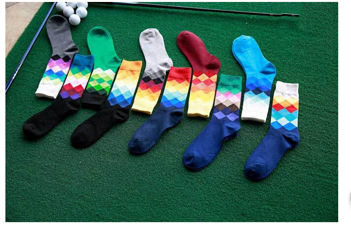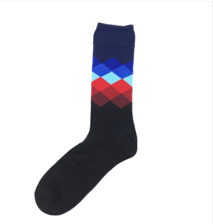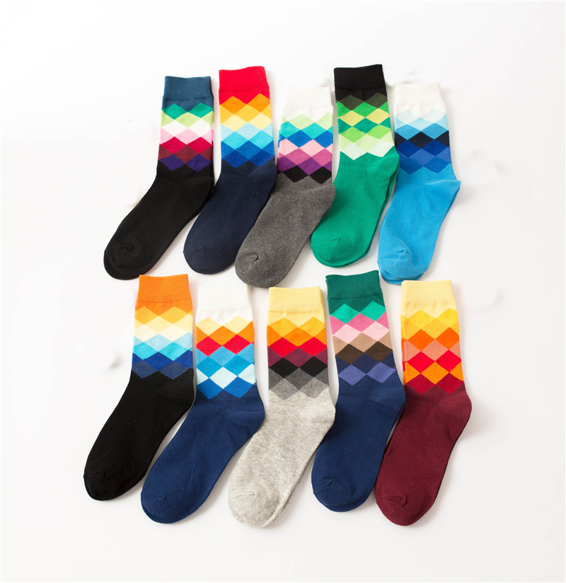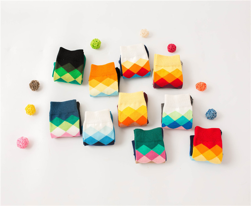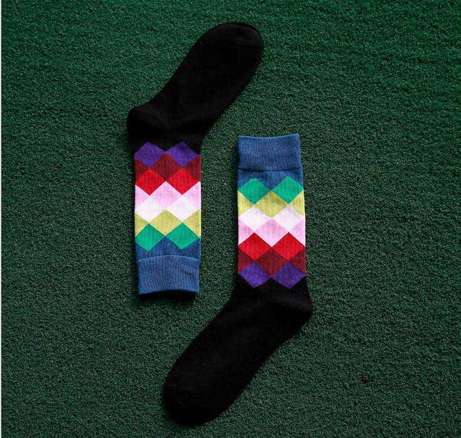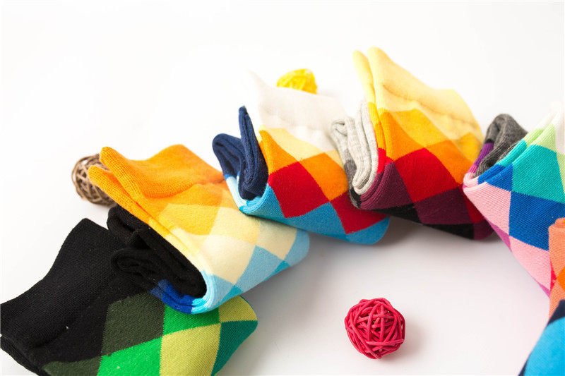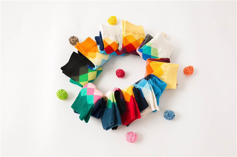 海湾情 跨境专供 彩色菱形袜 英伦风格子袜子 男士中筒袜子批发
