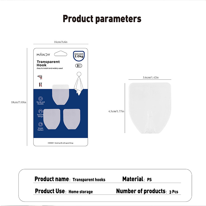 transparent hook kitchen multi-functional storage plastic sticky hook seamless wall hanging punch-free strong adhesive hook