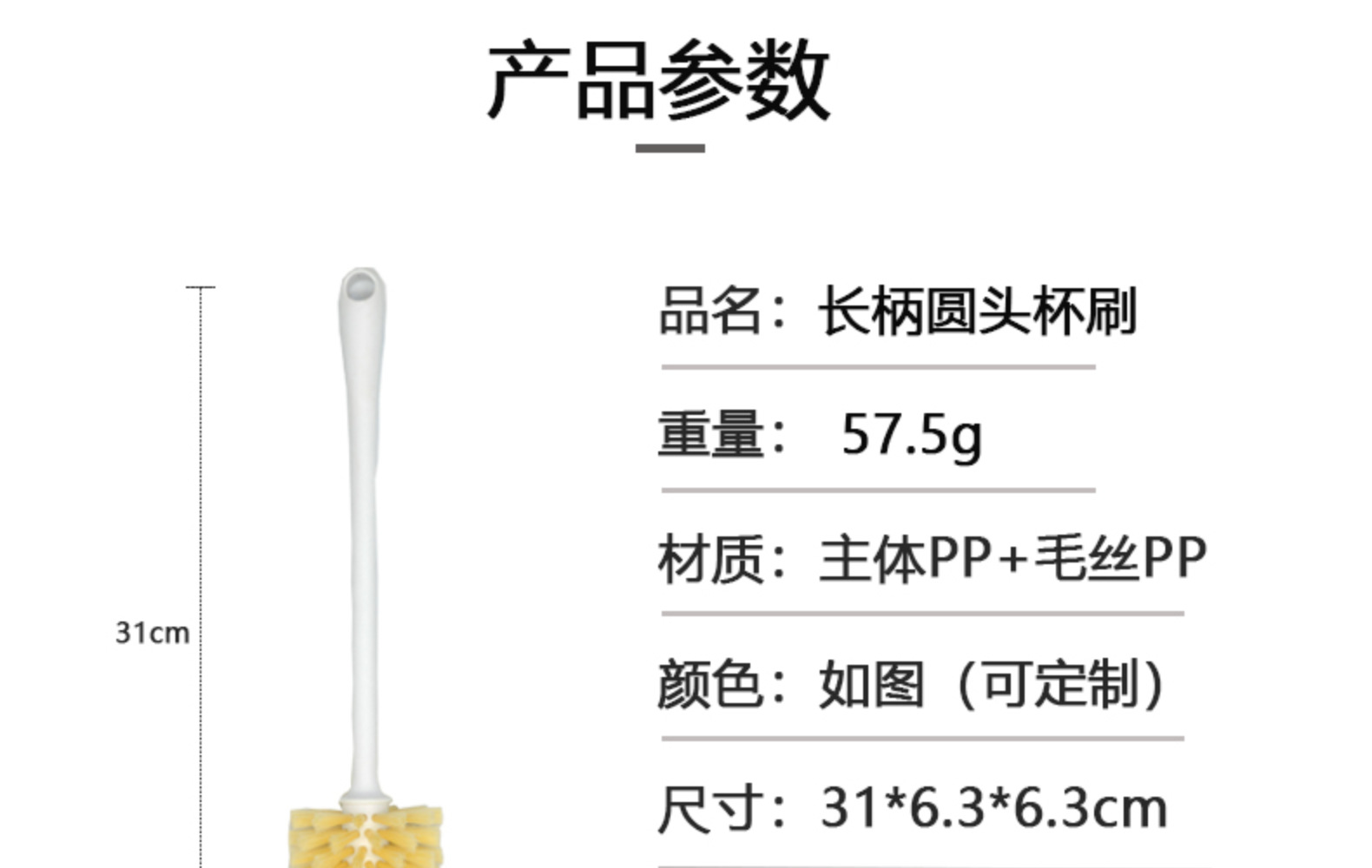 可悬挂长柄圆头杯刷厨房塑料清洁杯刷白色长柄杯刷促销