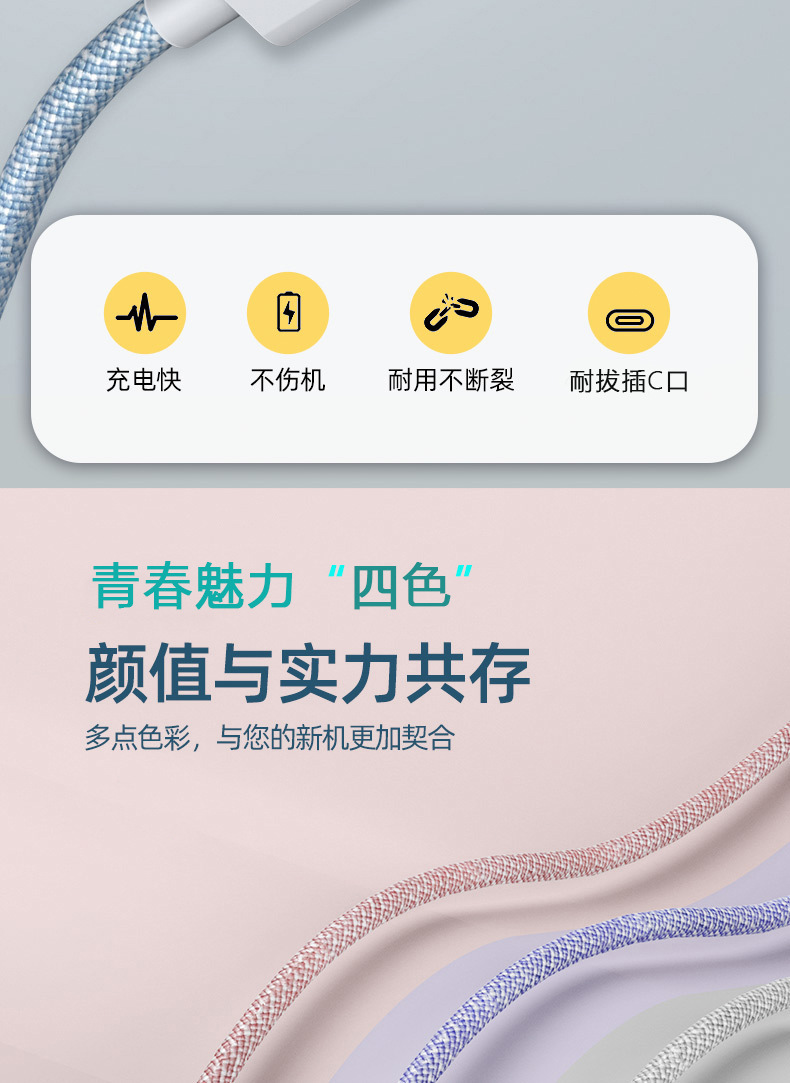 60W双TYPE-C线3A适用于华为苹果15充电线PD快充线typec数据线双头