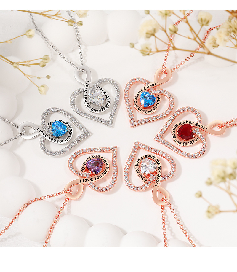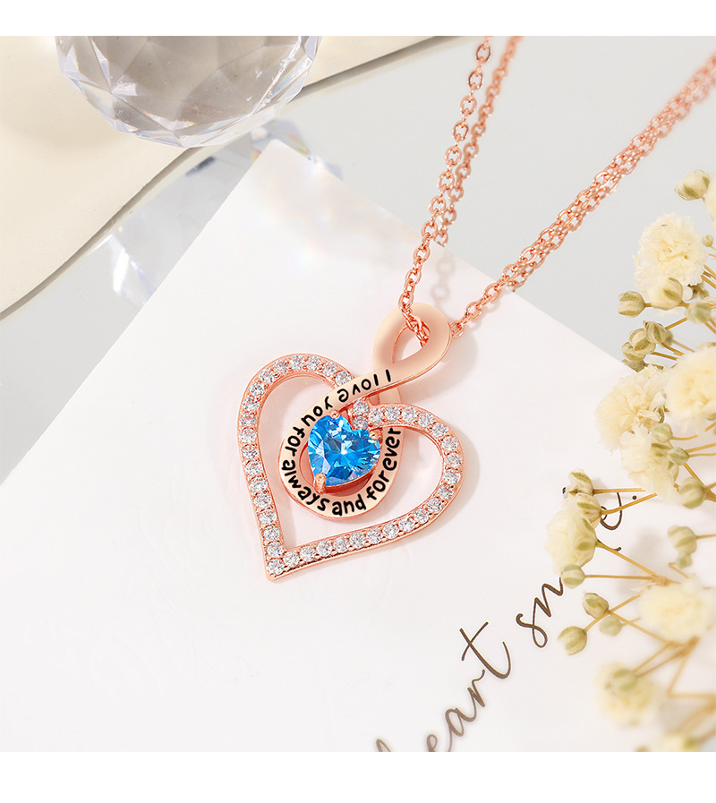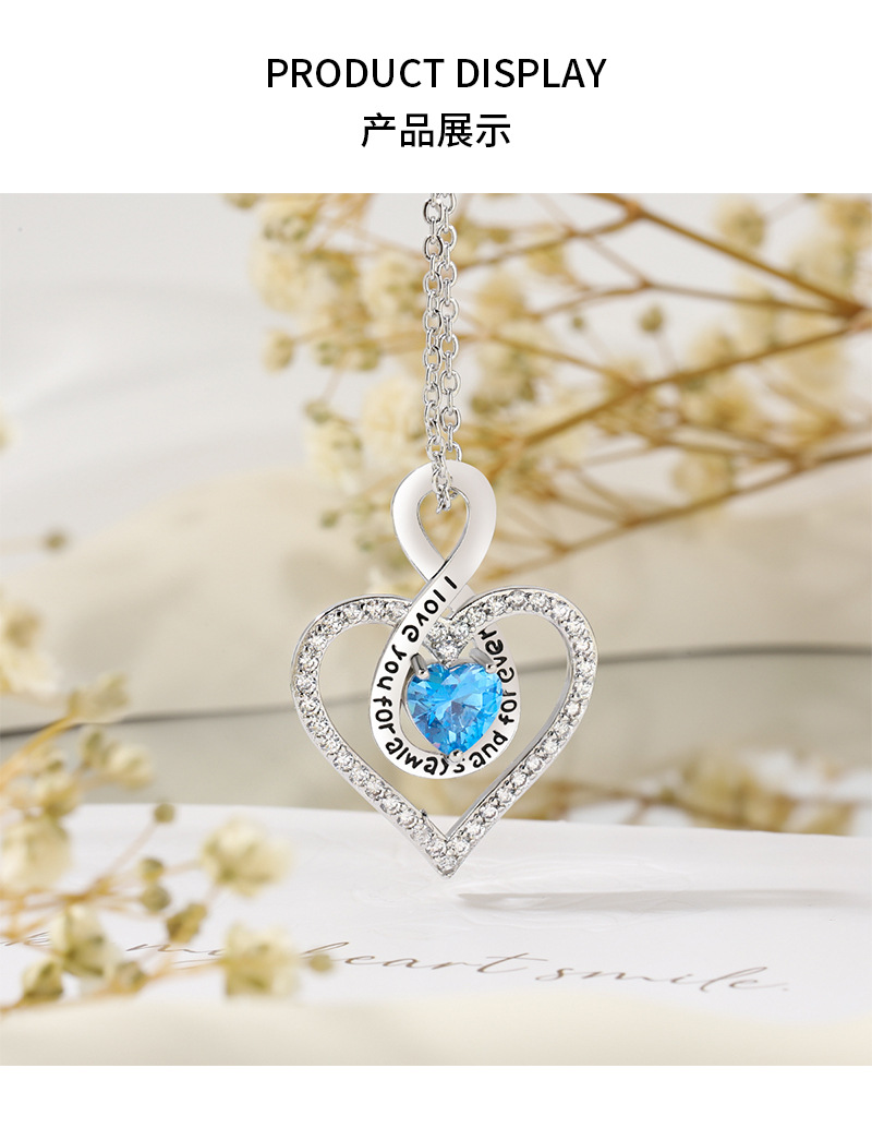 亚马逊新款爱无限吊坠项链 欧美复古染黑英文十二星辰石爱心项链