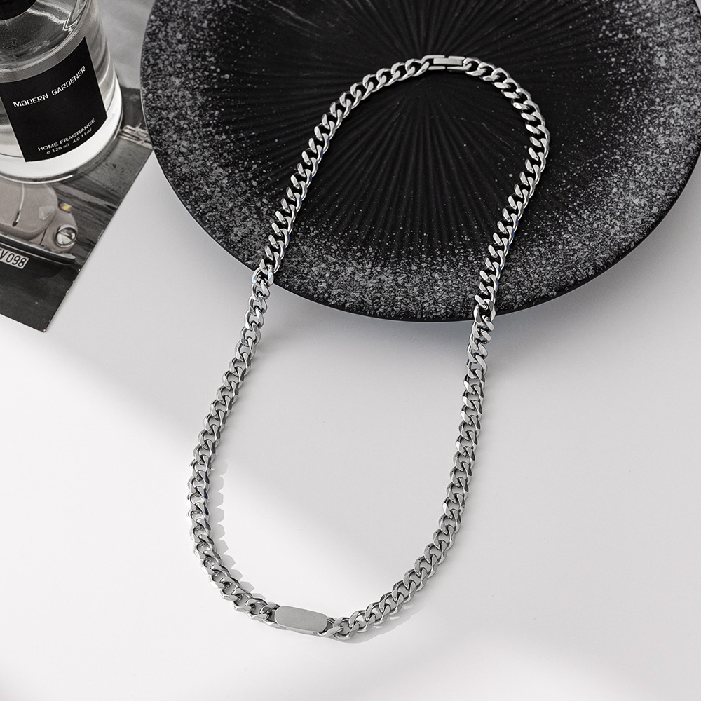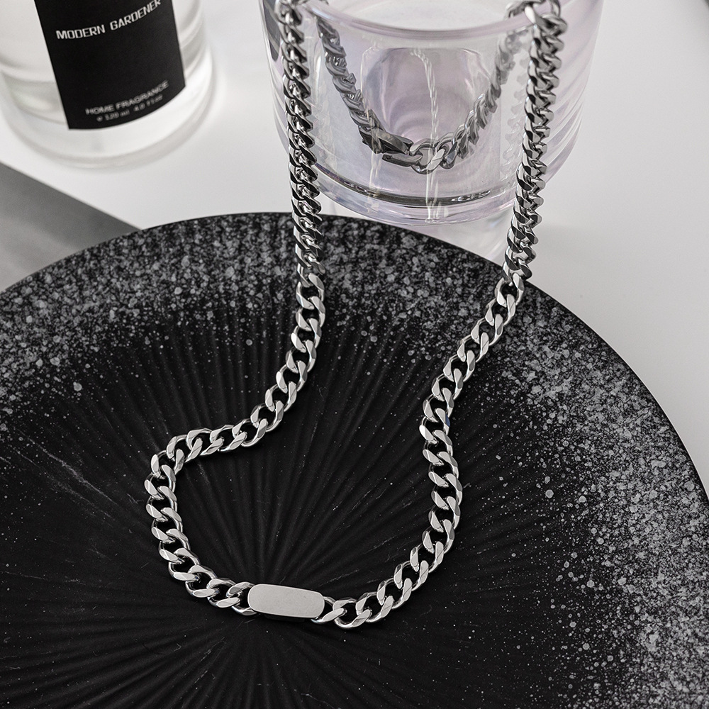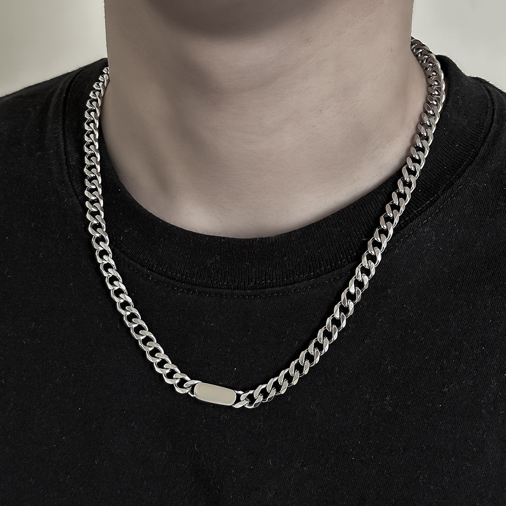 男女时尚潮流钛钢平扣圆方块古巴项链 ins风美式嘻哈高街炫酷配饰
