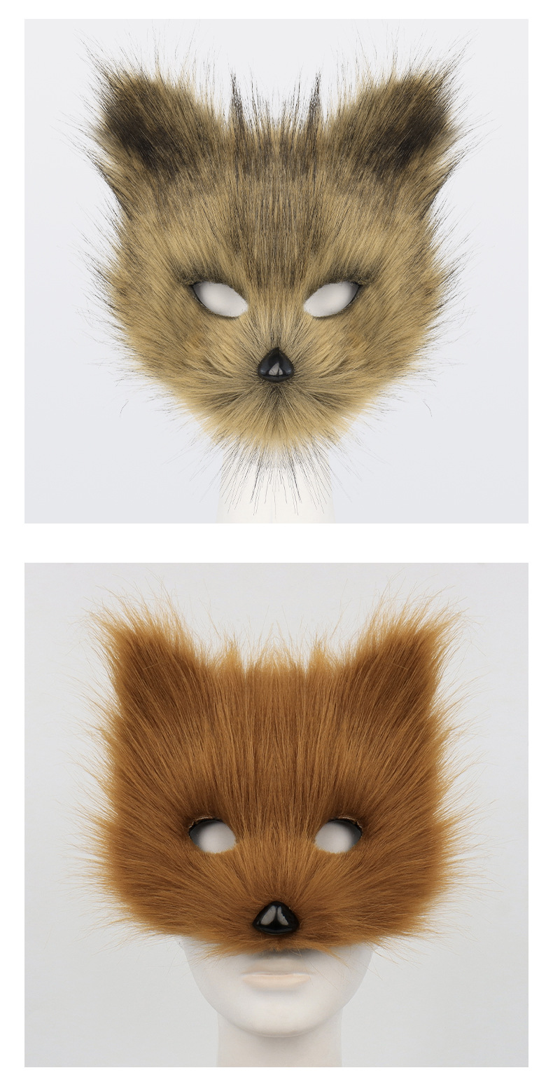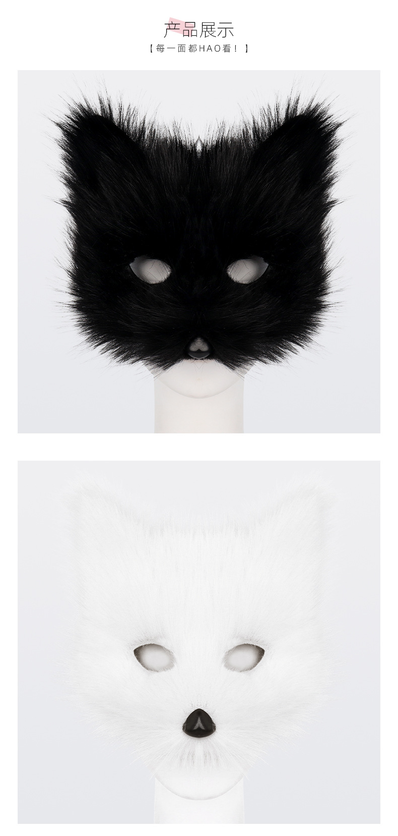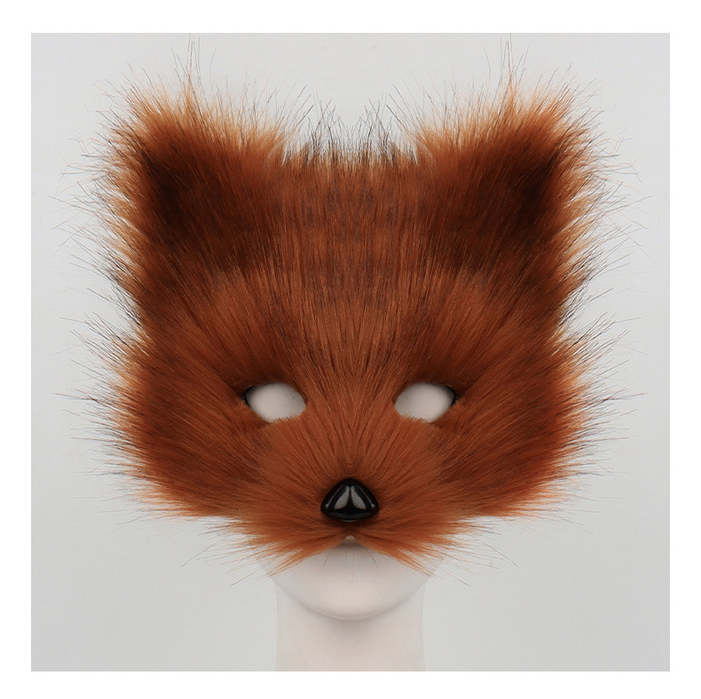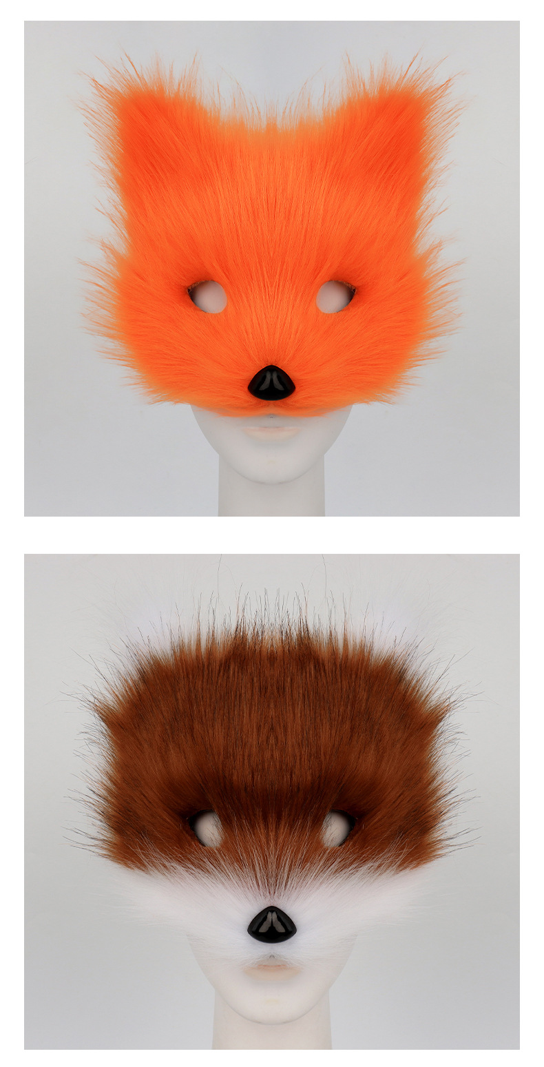 仿真狐狸面具毛绒仿真成人面具cosplay万圣节舞会配饰表演道具