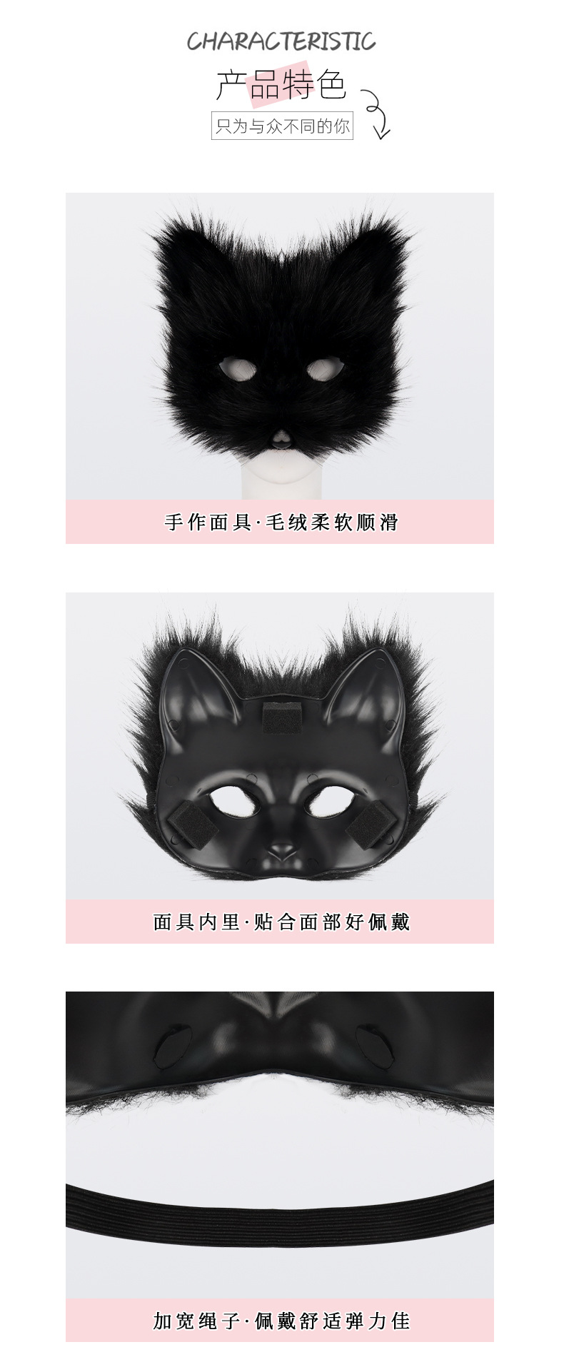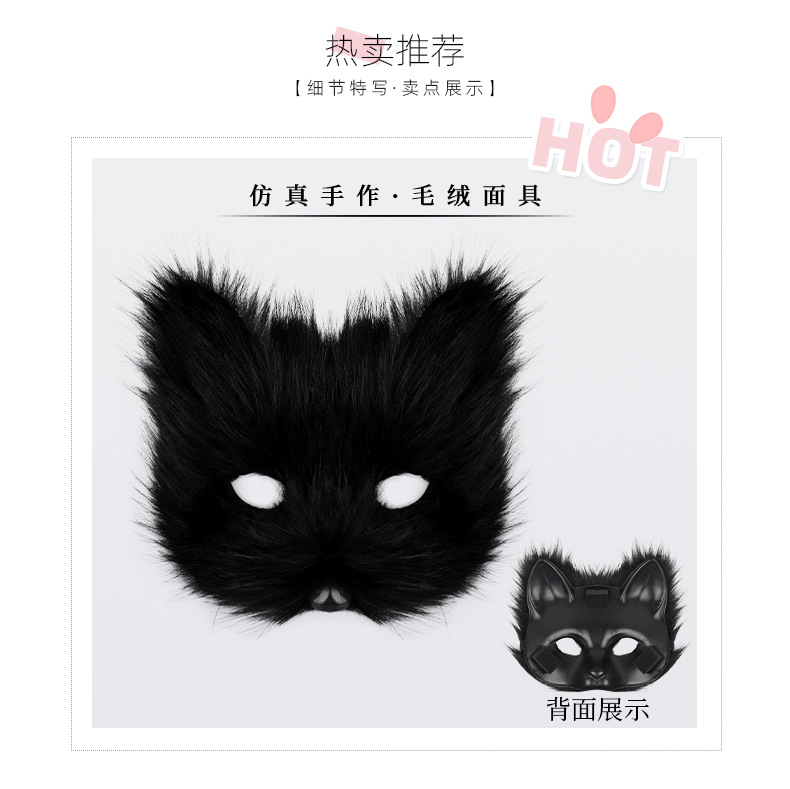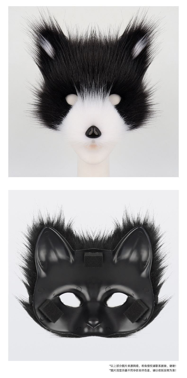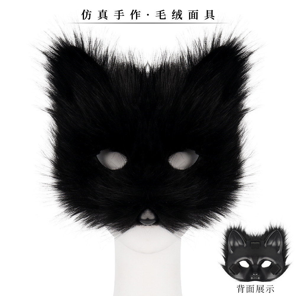 仿真狐狸面具毛绒仿真成人面具cosplay万圣节舞会配饰表演道具