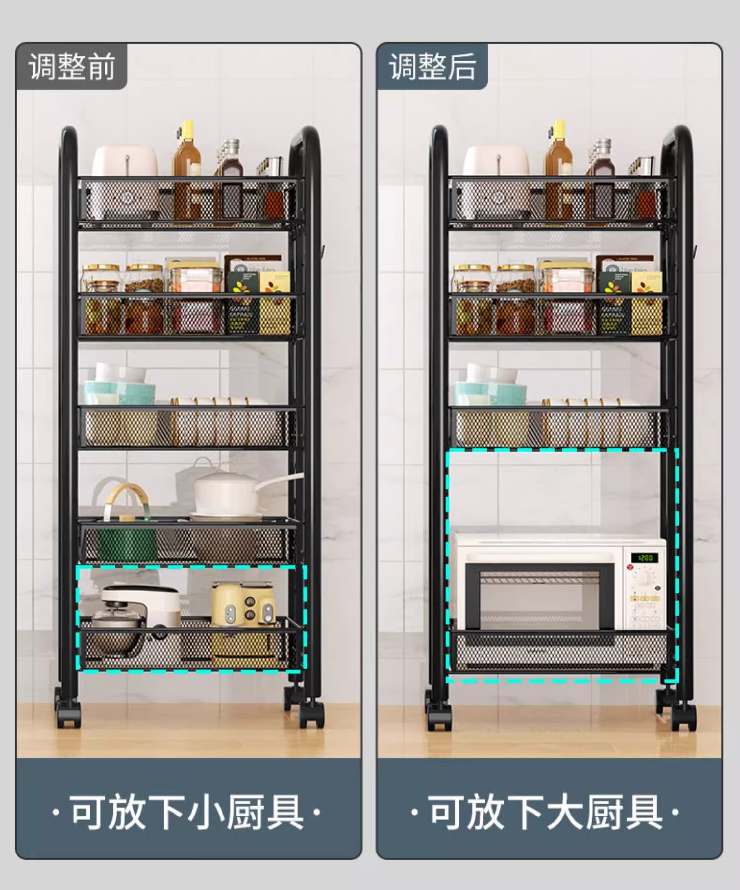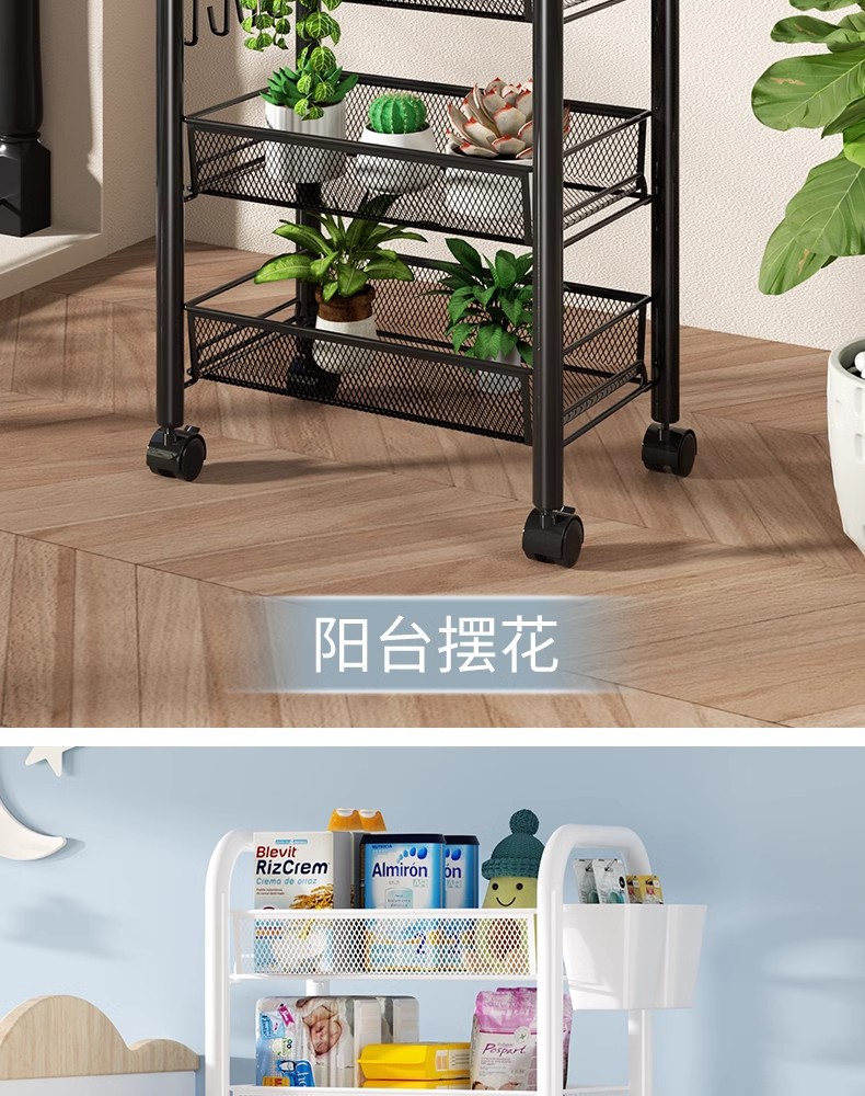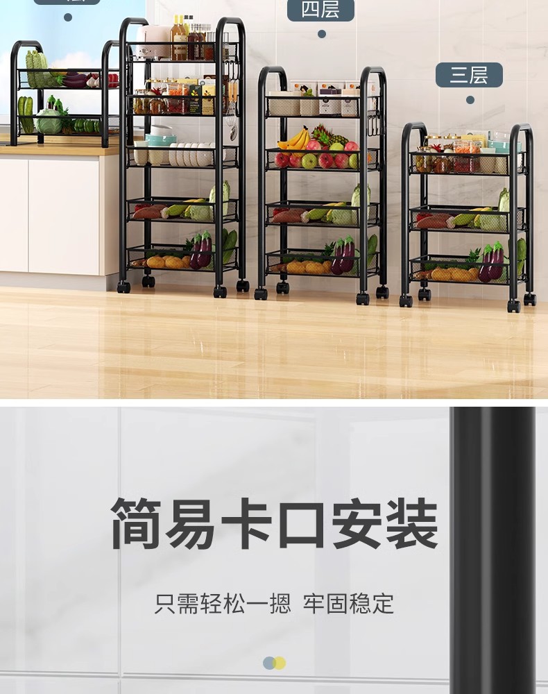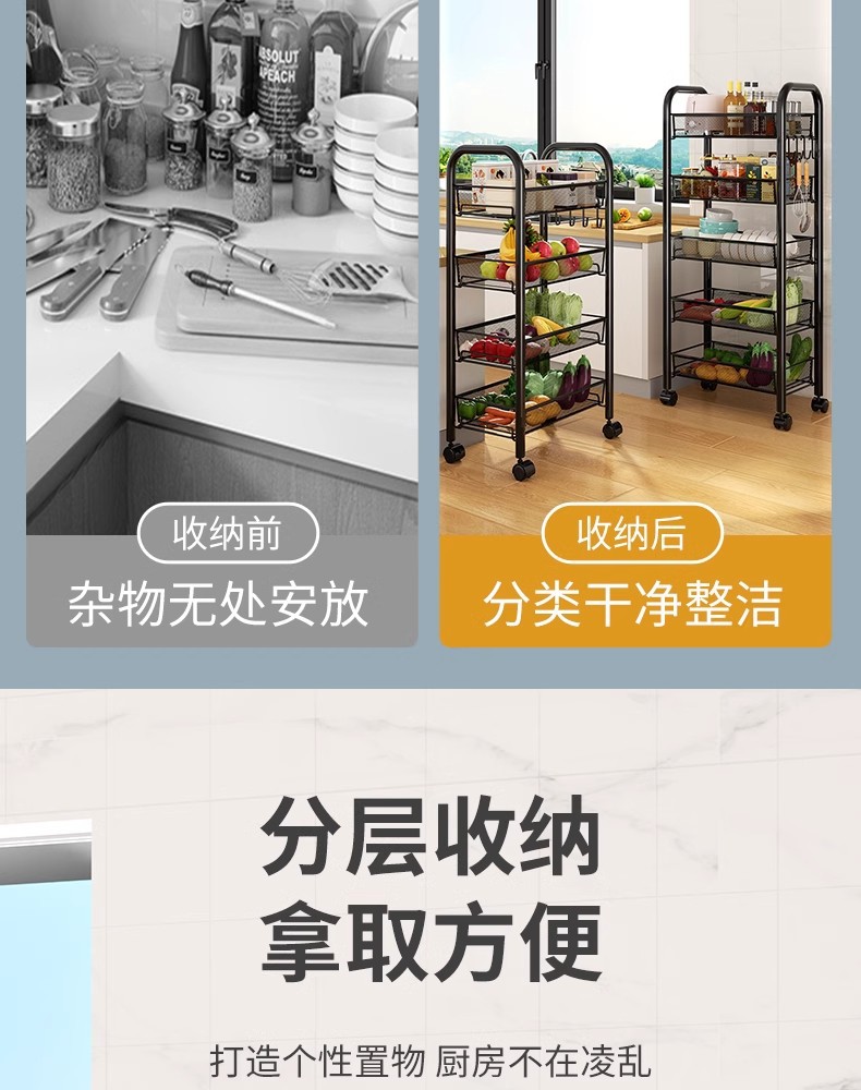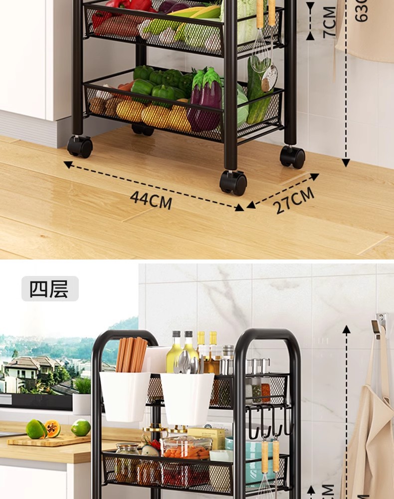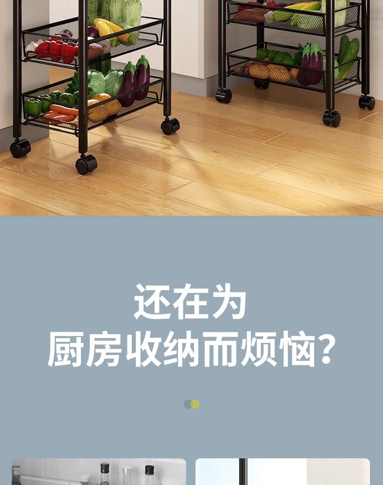 厨房置物架家用收纳储物架子落地多层用品大全小推车多功能蔬菜篮