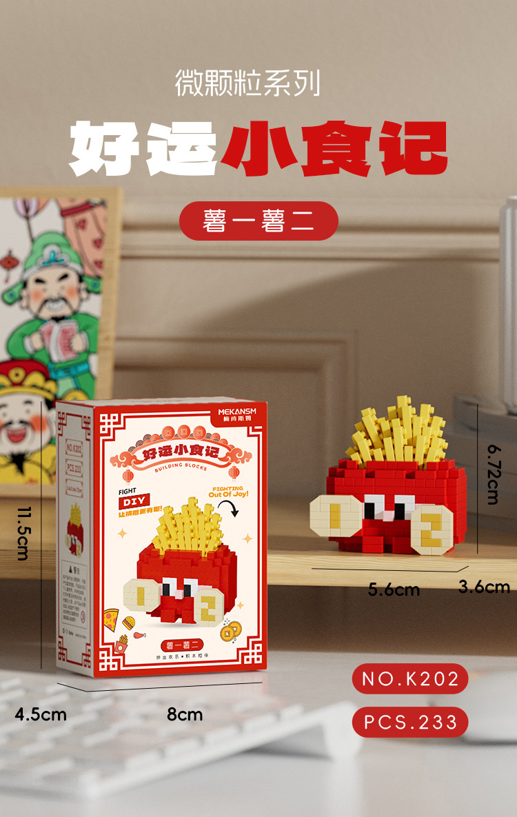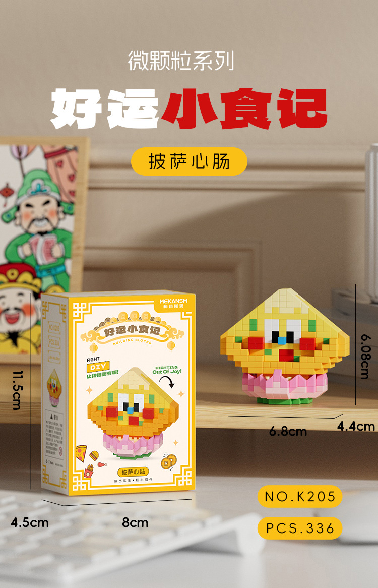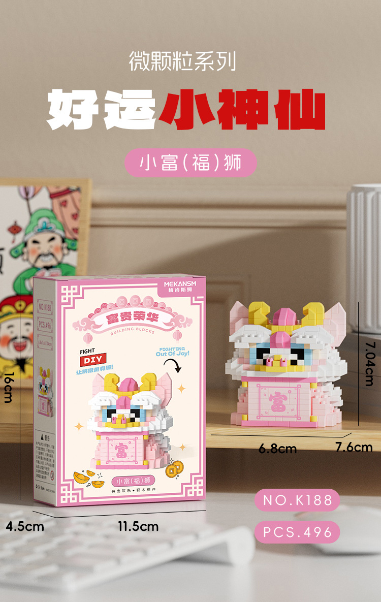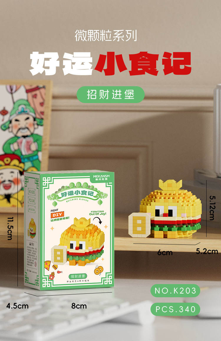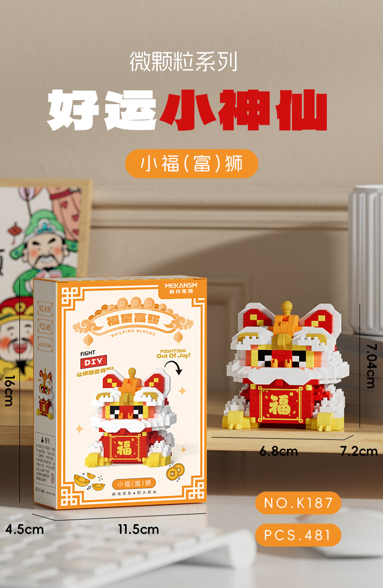 兼容国潮积木微颗粒财神爷月老小神仙系列小食记益智拼装玩具