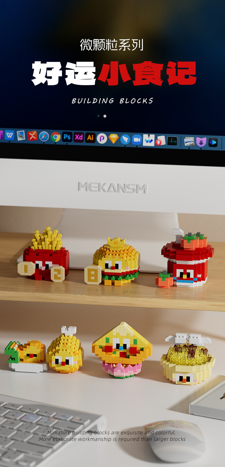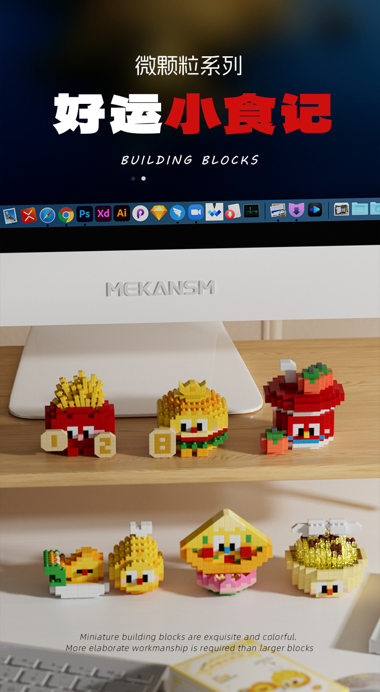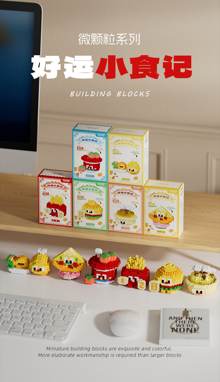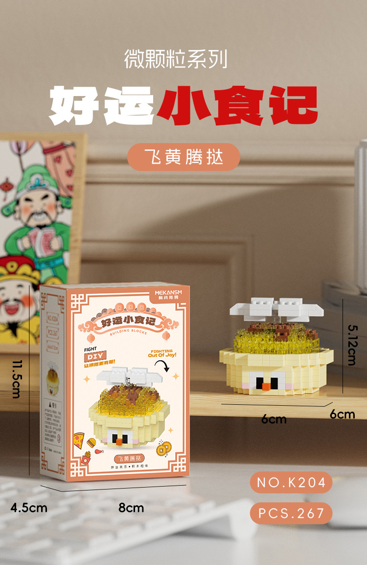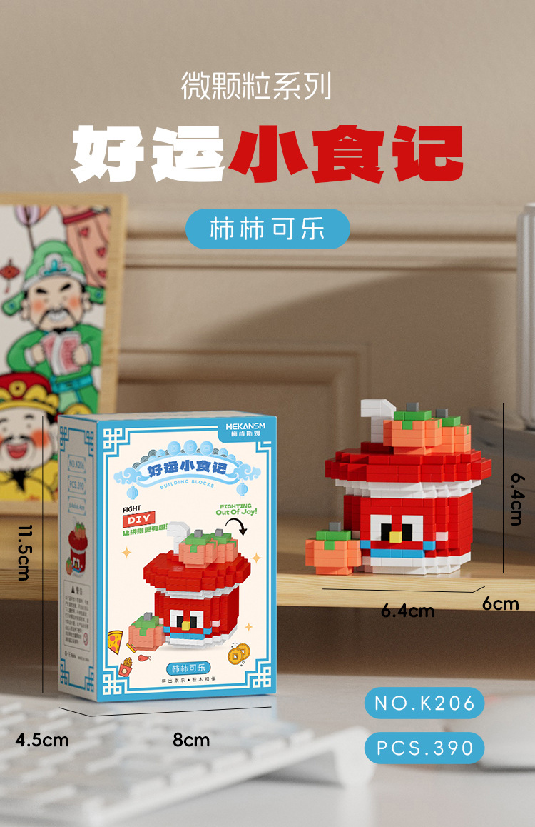 兼容国潮积木微颗粒财神爷月老小神仙系列小食记益智拼装玩具