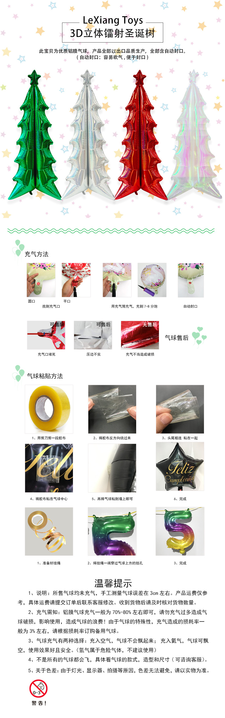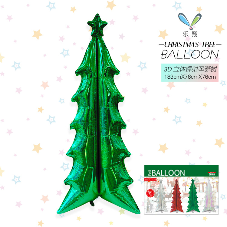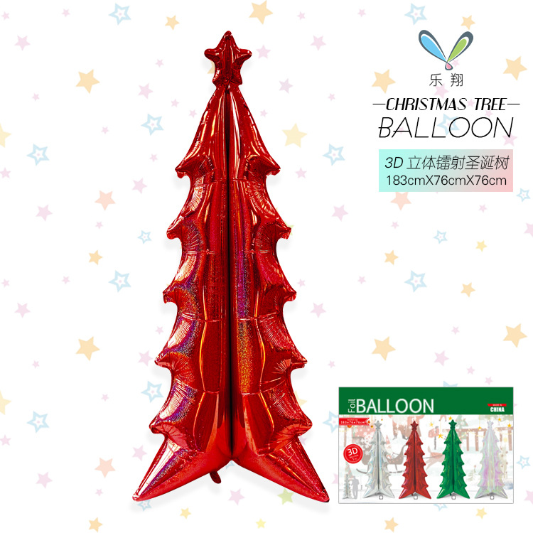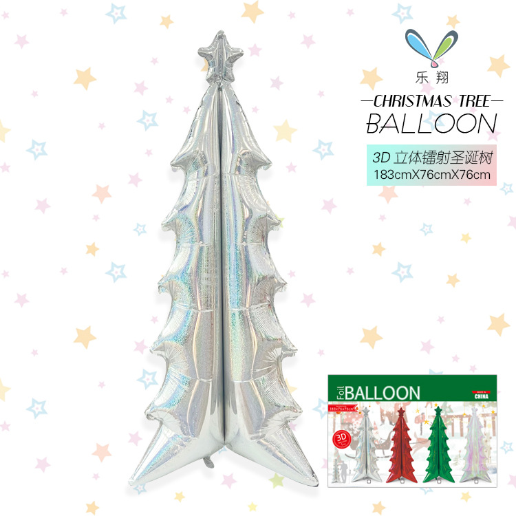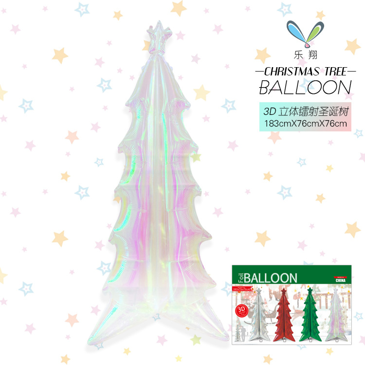 新款3D立体镭射幻彩圣诞树铝膜气球平安夜圣诞节装饰布景拍照道具