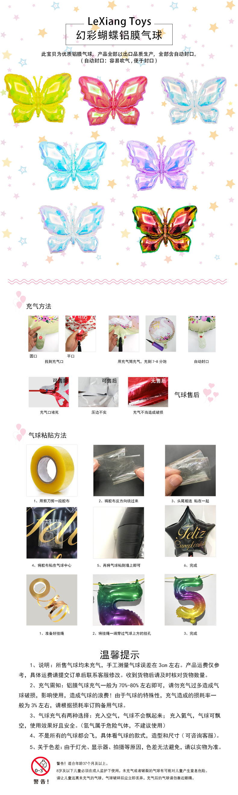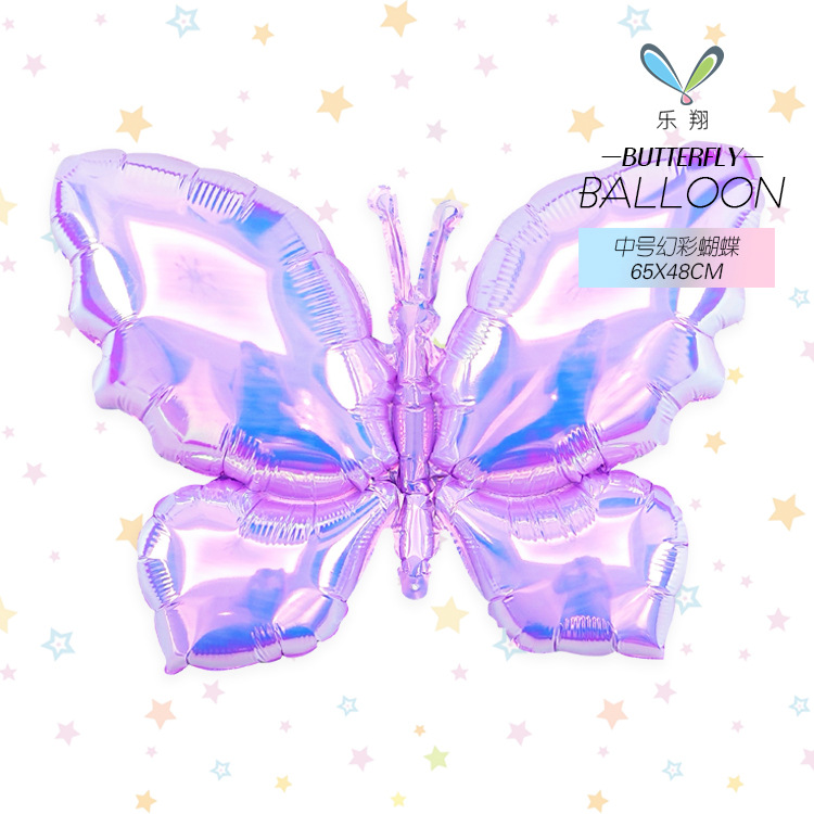 新款透明幻彩蝴蝶造型铝膜气球生日派对主题装饰店铺布置拍照道具