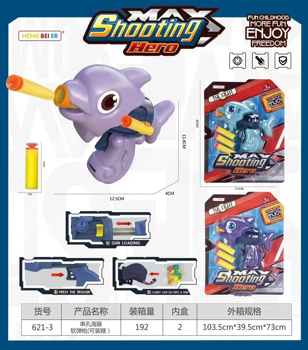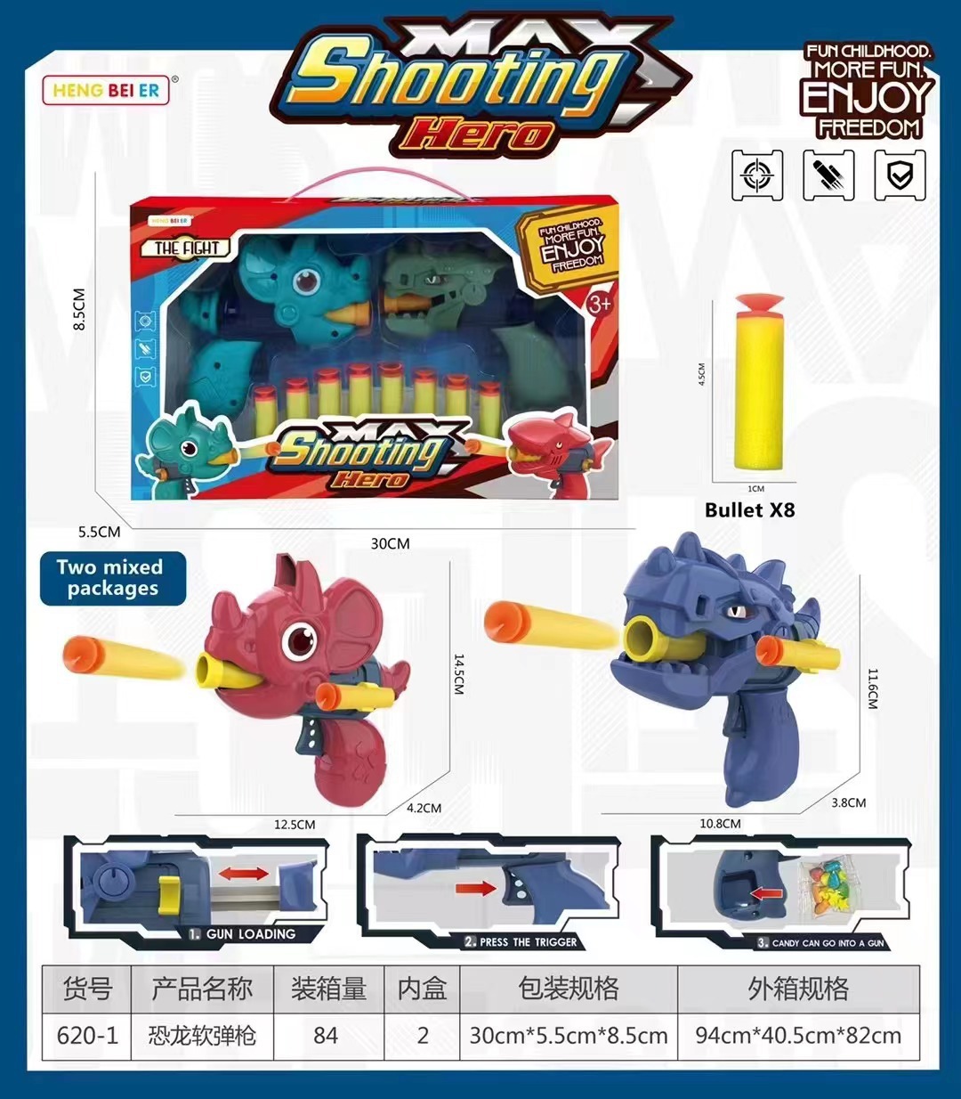 跨境软弹枪玩具萌趣造型卡通恐龙鲨鱼手动发射软弹枪3-6岁男女孩