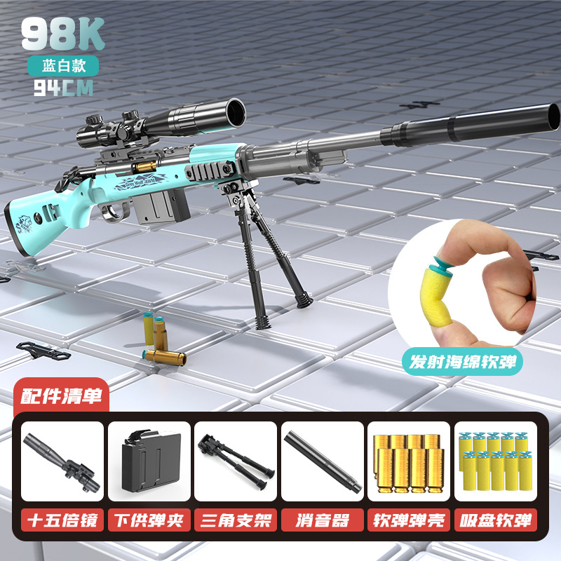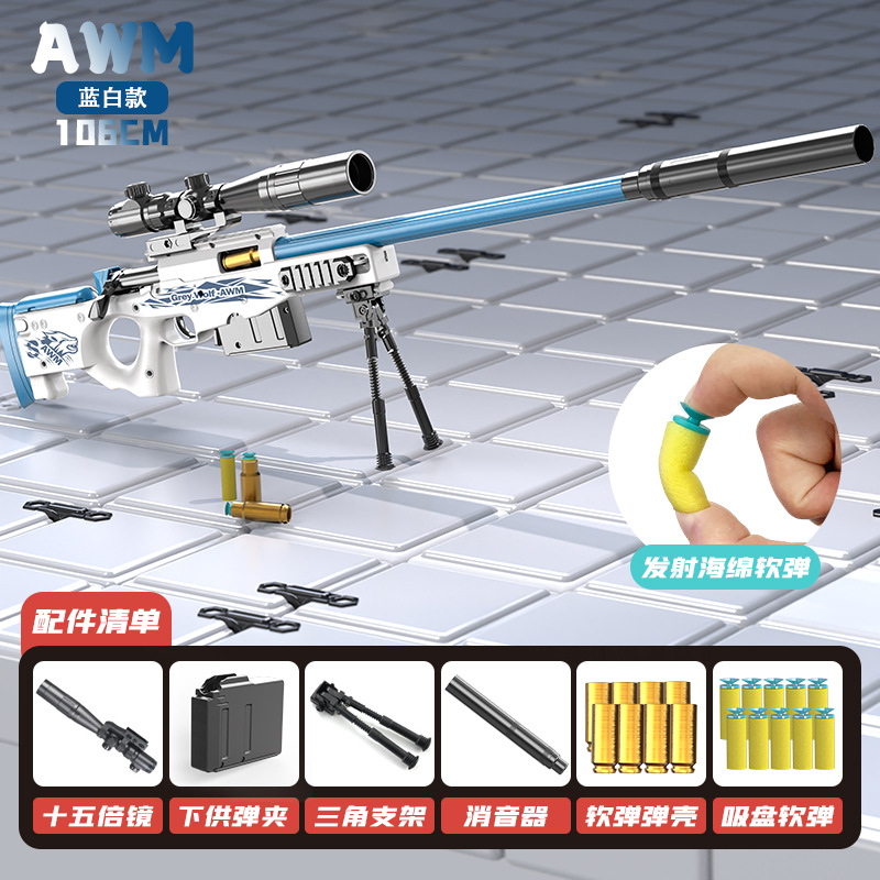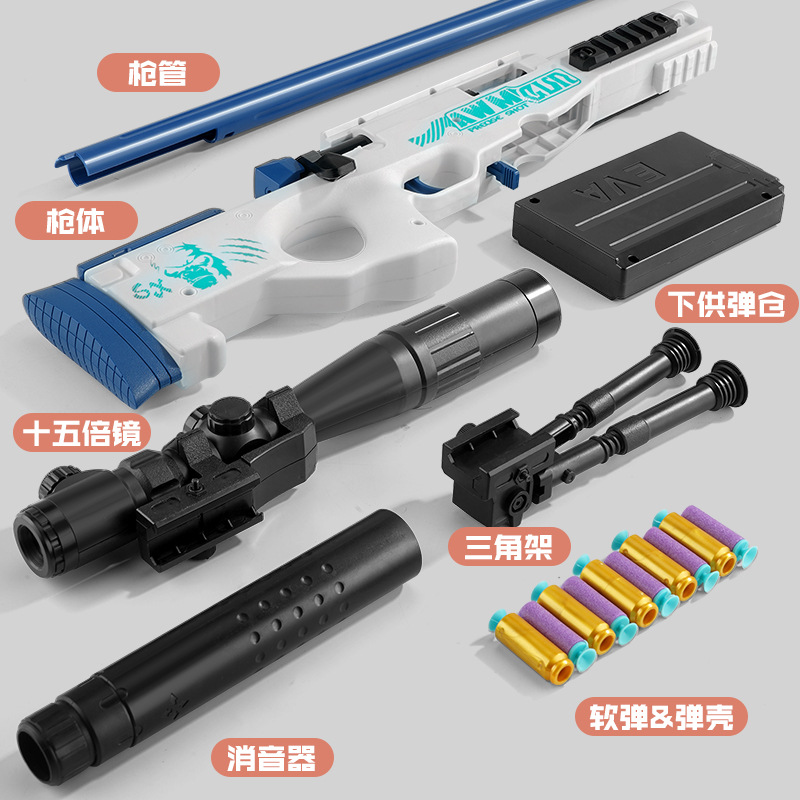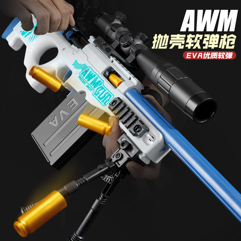 儿童手动抛壳软弹枪下供弹AWM吃鸡玩具枪模型EVA吸盘软弹对战玩具